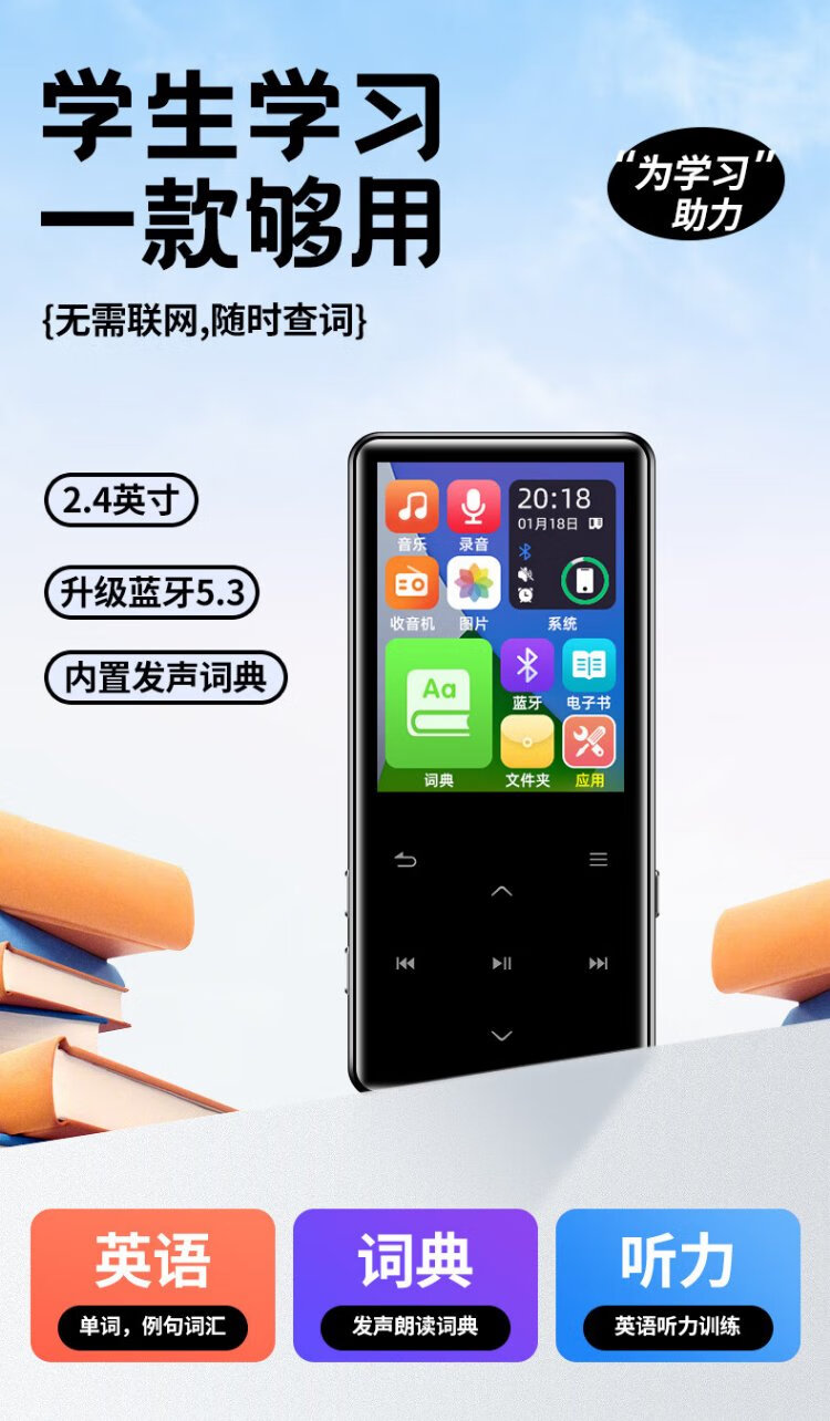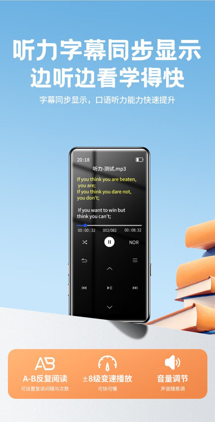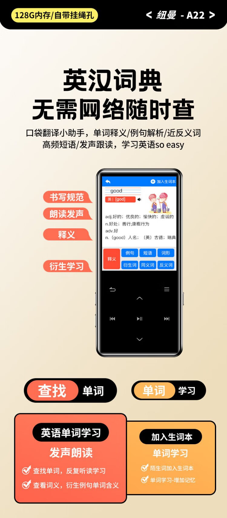 Newman A22 128G mp3/mp4 Bluetooth lossless player 2.4-inch junior high school student walkman Bluetooth 5.3 audio and video external e-book touch black