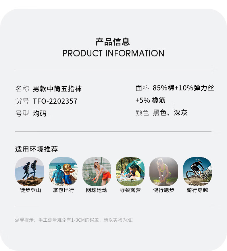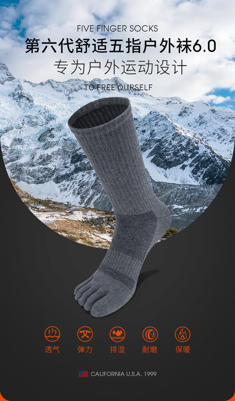 TFO event-grade outdoor toe socks, wear-resistant and breathable hiking and mountaineering tabi socks 2202357, men's black