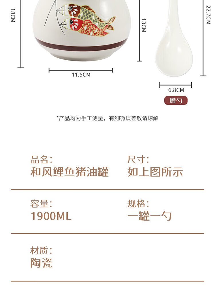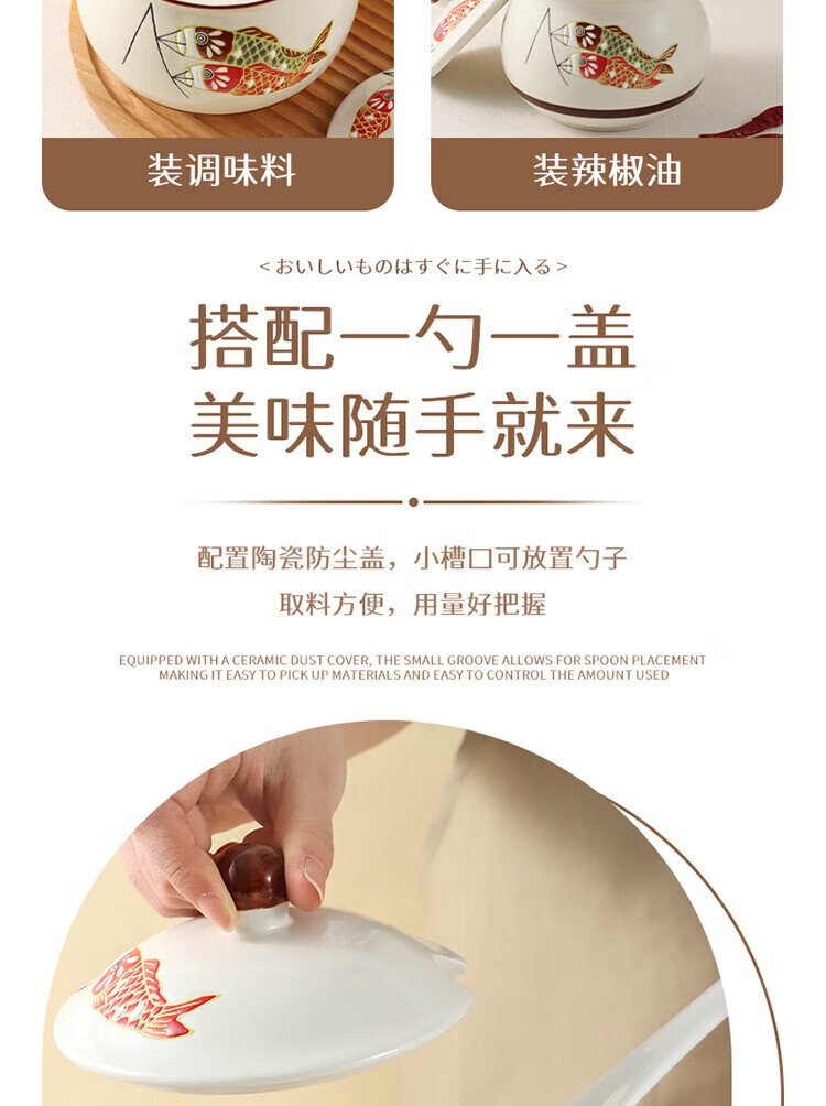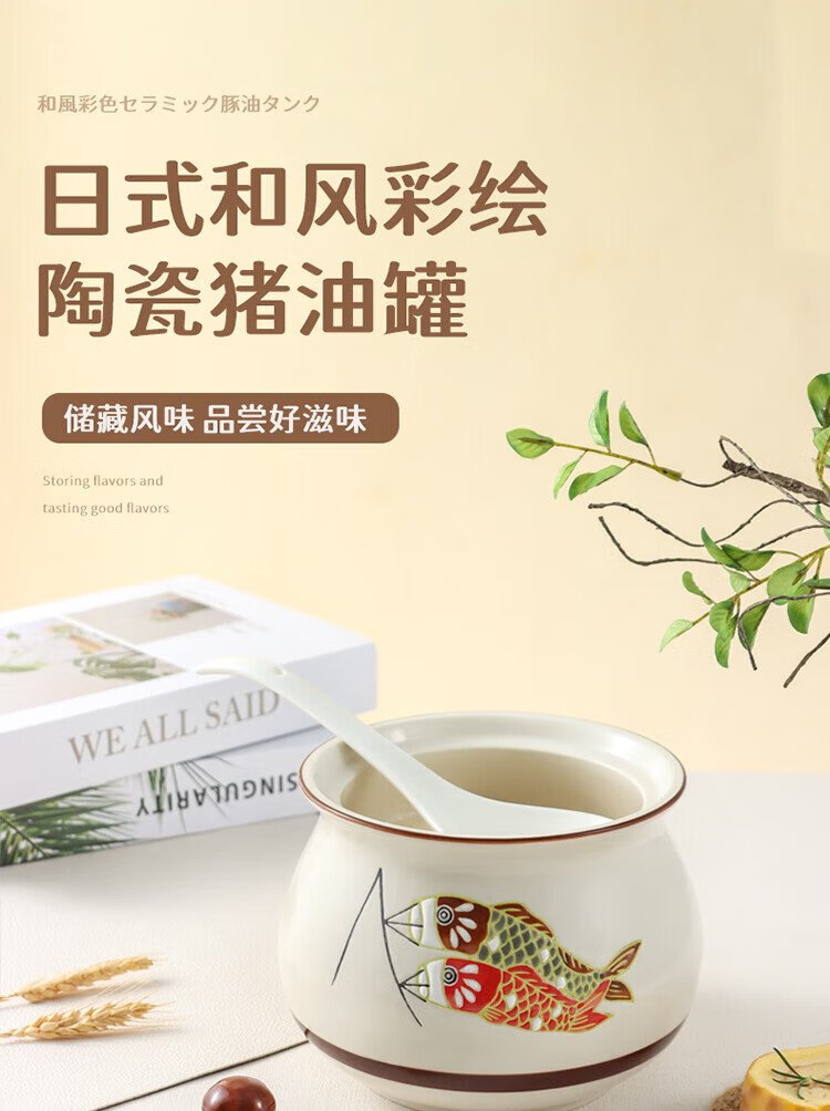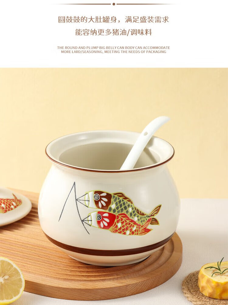Baijie Ceramic Lard Jar Seasoning Jar High Temperature Resistant Household Large Capacity Sugar Salt Chili Oil Jar Ceramic Jar Set Large