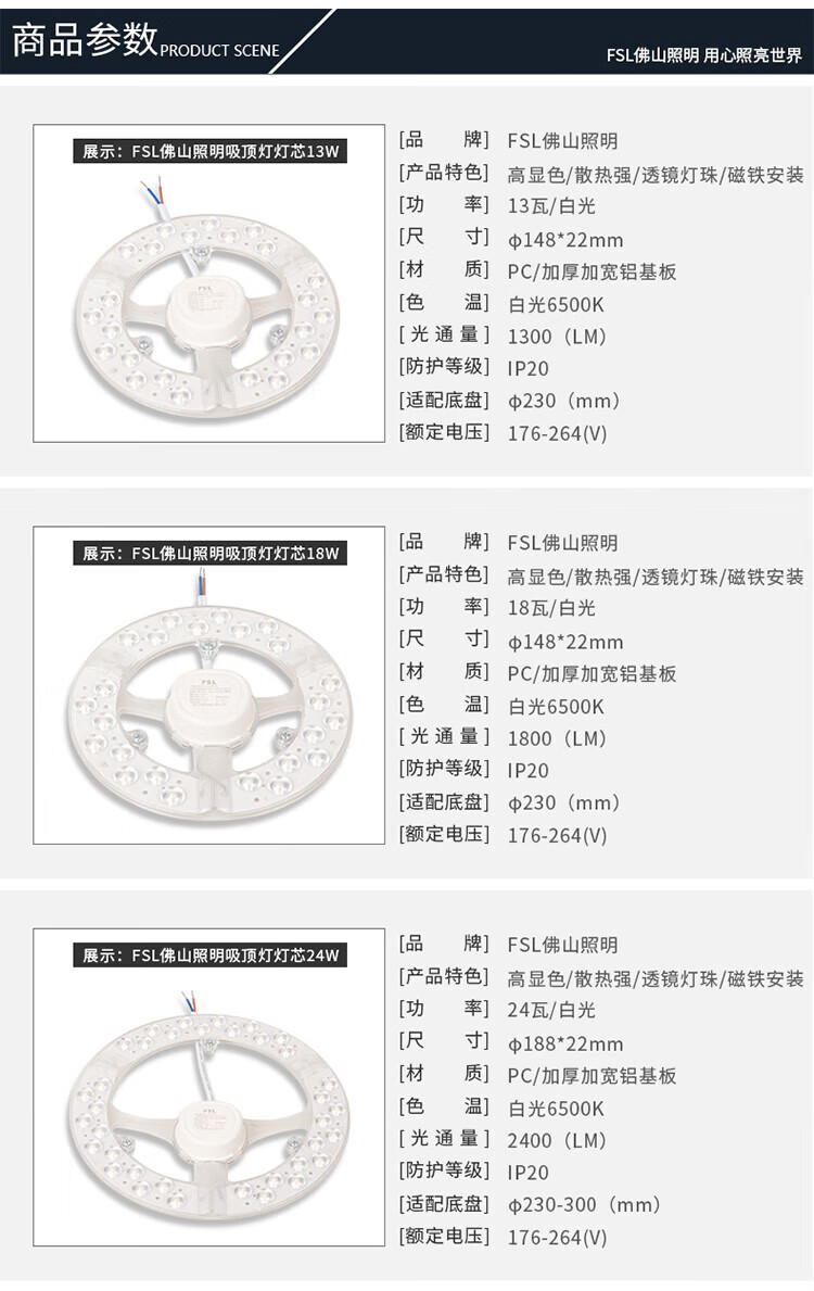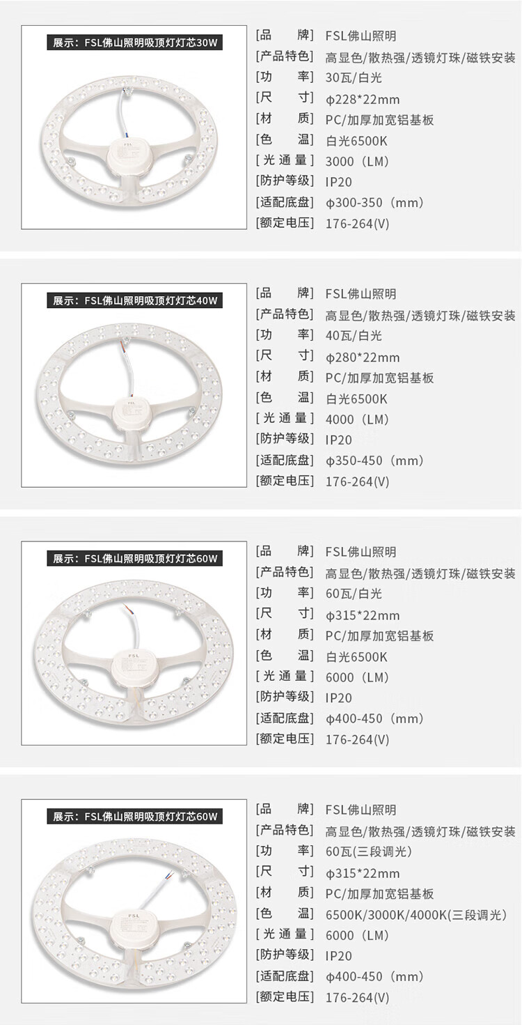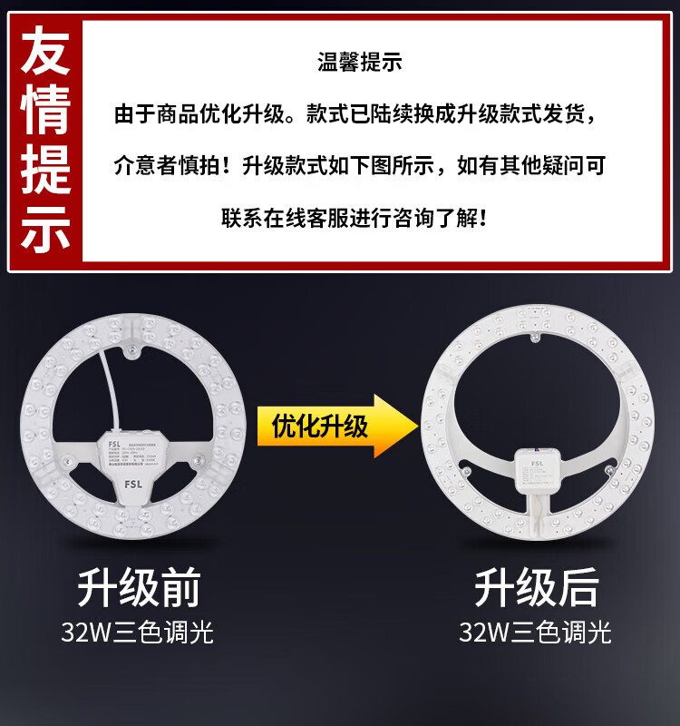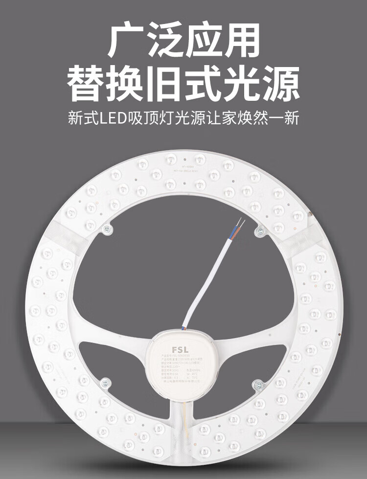 Foshan Lighting (FSL) LED lamp panel ceiling lamp wick round modified lamp panel modified three-color light source ring replacement LED light bar module 32W/three-speed dimming/upgraded model