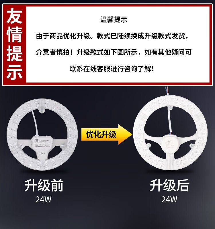 Foshan Lighting (FSL) LED lamp panel ceiling lamp wick round modified lamp panel modified light source ring replacement LED light bar module 24W/positive white light/high brightness model