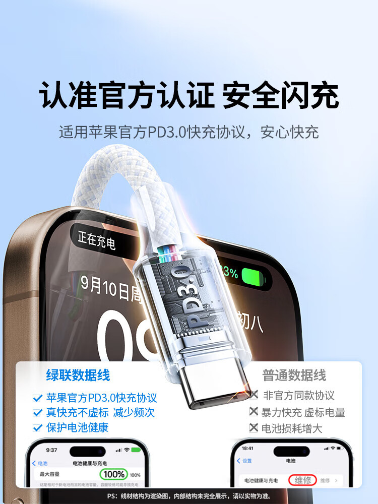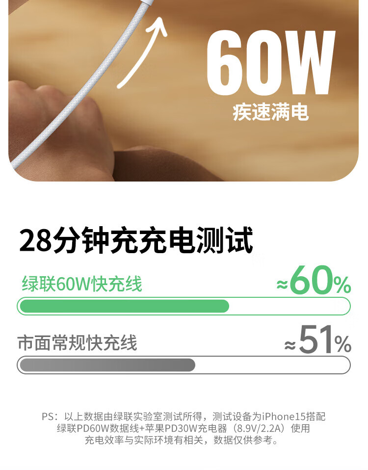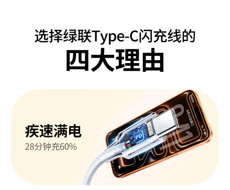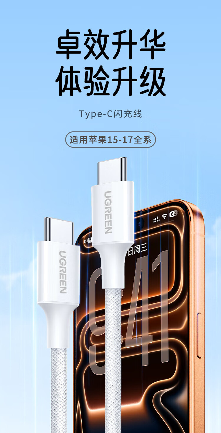 Greenlink is suitable for Apple 17/16/15 charging cable Type-C data cable double-ended PD60W fast charging ctoc car iPhone17/16e/15ProMax tablet iPad notebook