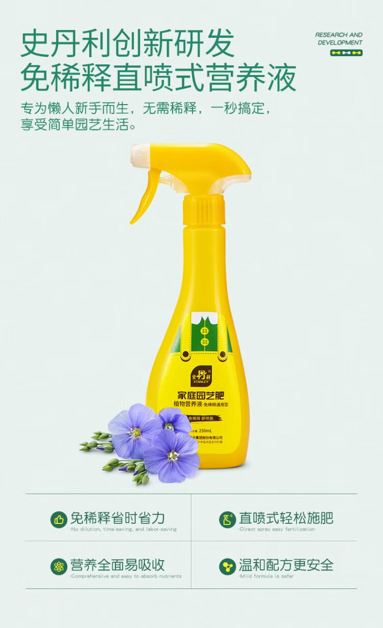 Stanley dilution-free nutrient solution for plants, general-purpose money tree, rich bamboo, flower and green plant fertilizer, special flower fertilizer 250ml