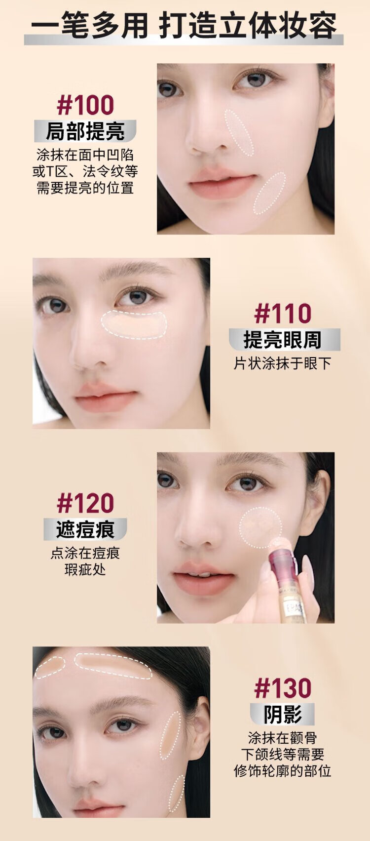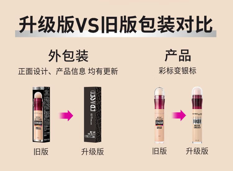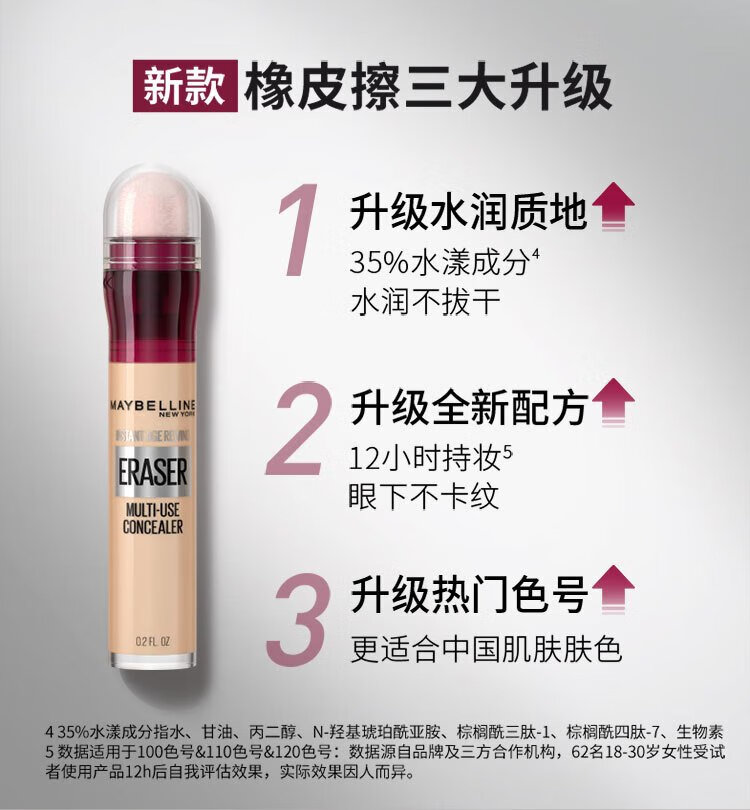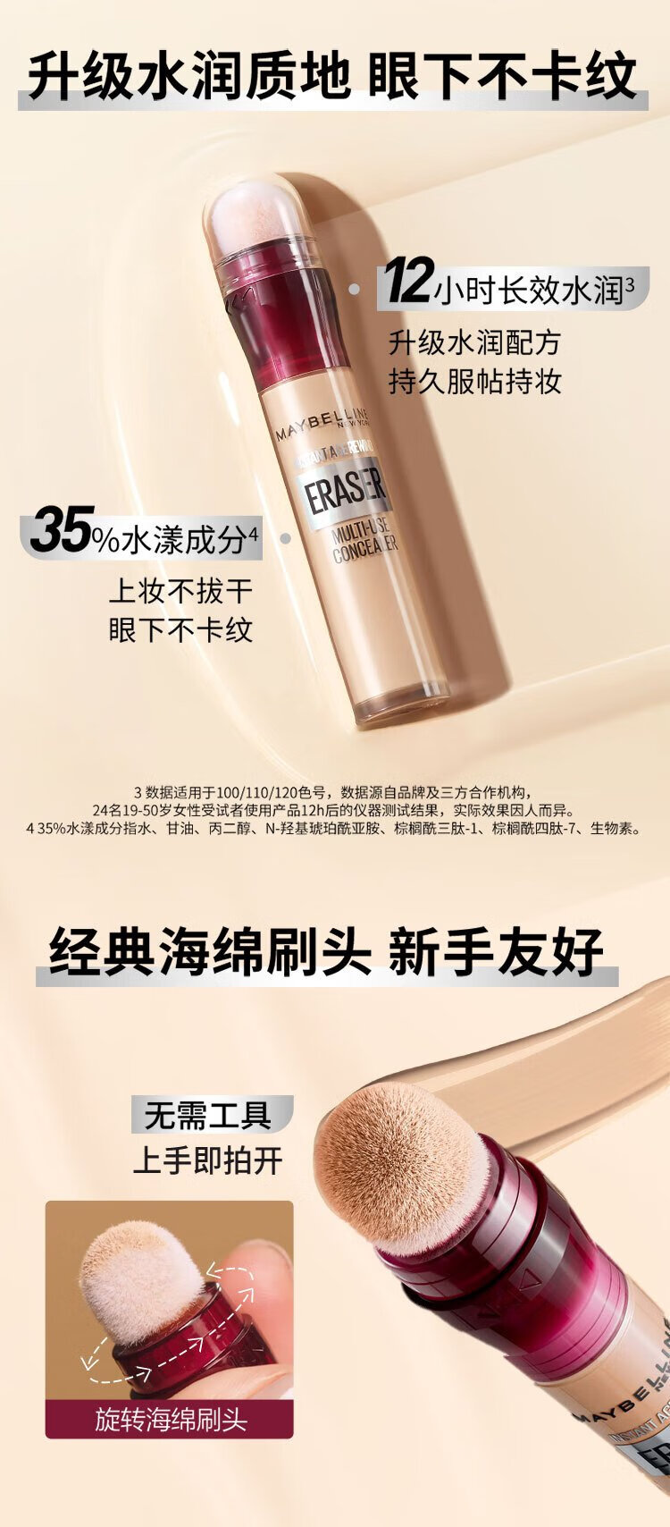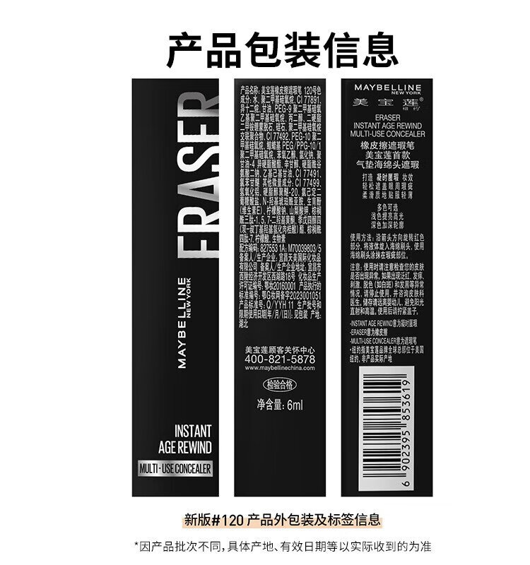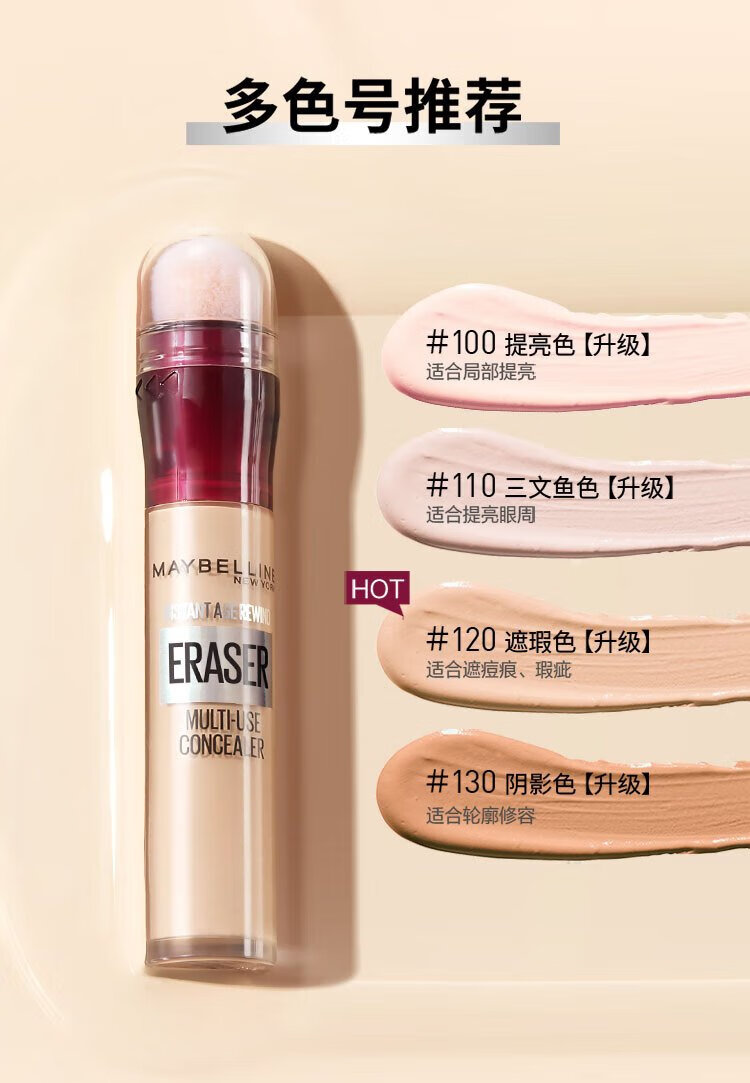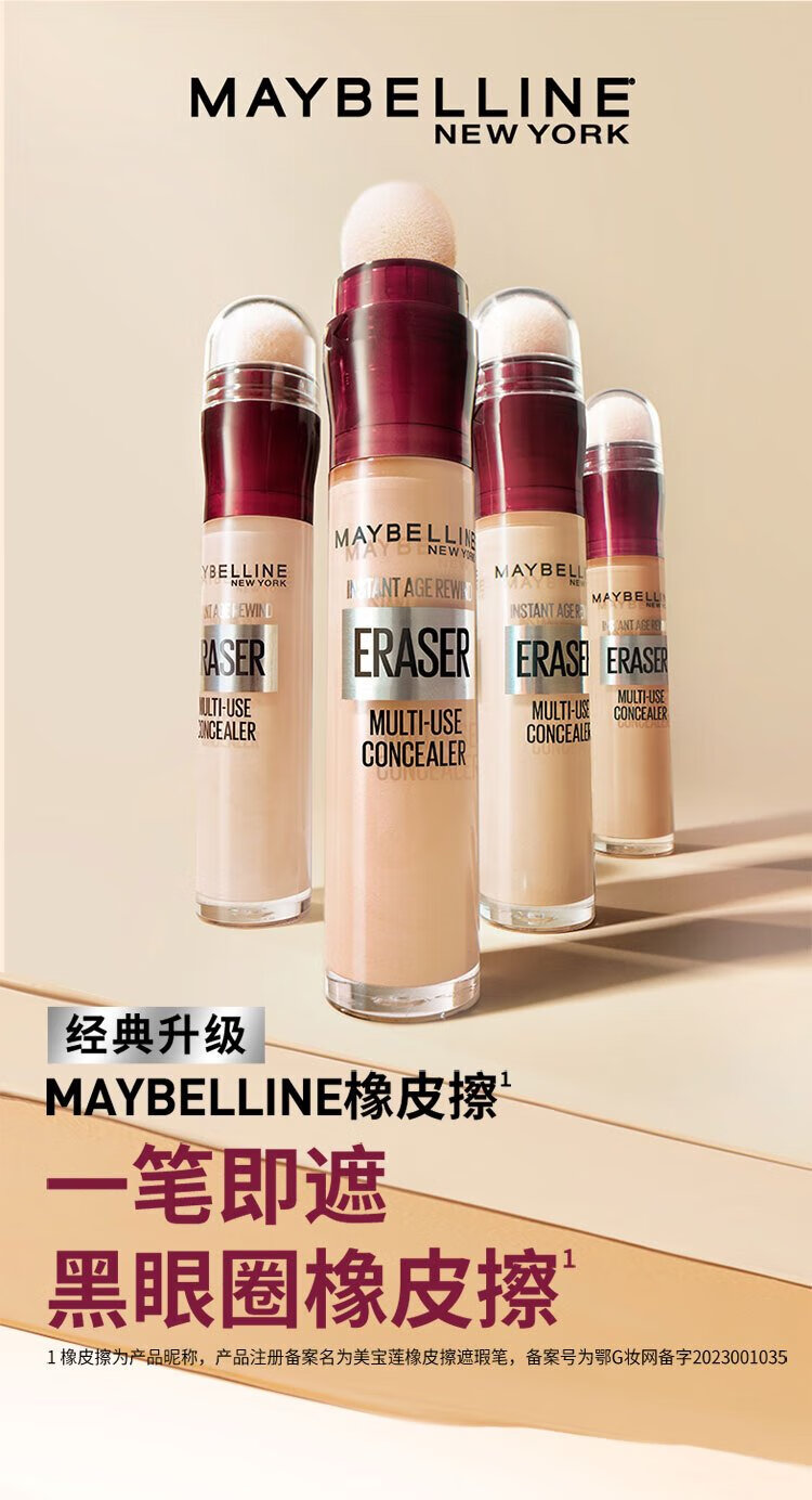 美宝莲橡皮擦遮瑕笔遮黑眼圈不易卡纹120遮瑕色6ML生日礼物女
