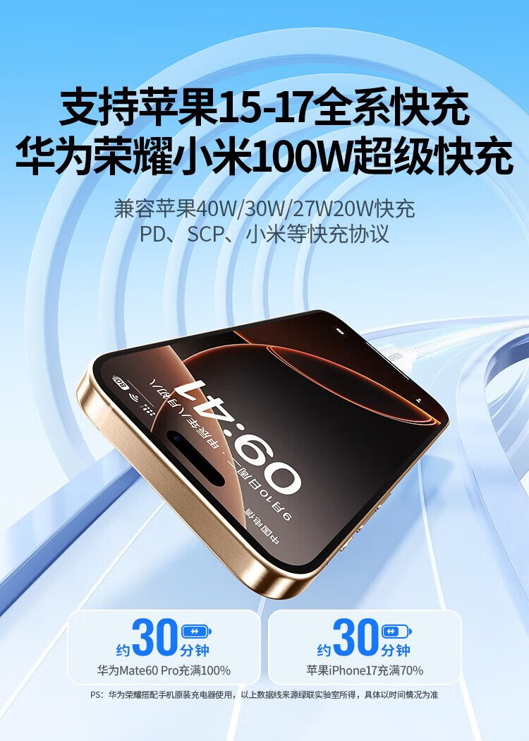Greenlink is suitable for Apple 17/16/15 charging cable type-c data cable double-ended PD100W fast charging ctoc car iPhone17/16/15ProMax tablet notebook 2 meters