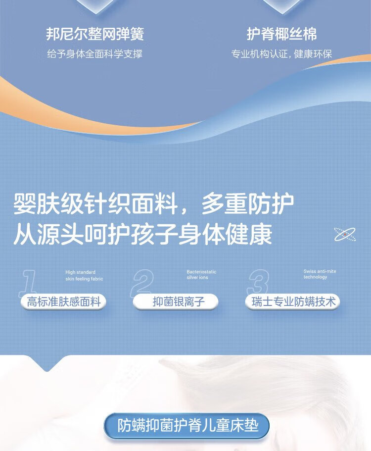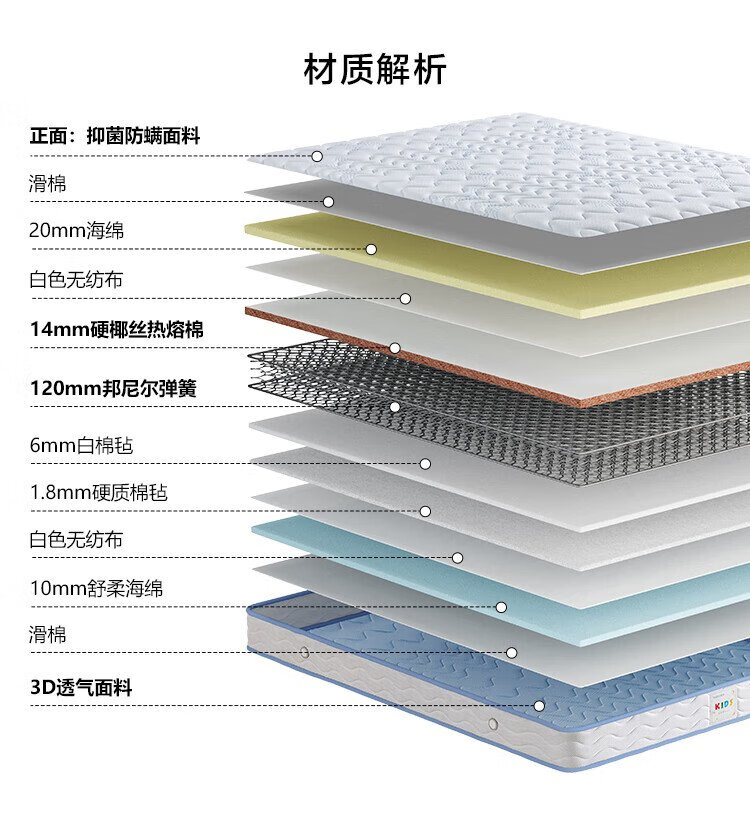 Quanyou Home Children's Mattress Anti-mite and Antibacterial Youth Spine Protector Bonnier Spring Mattress Boys and Girls Mattress
