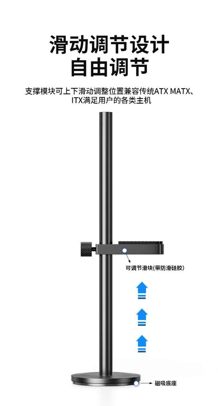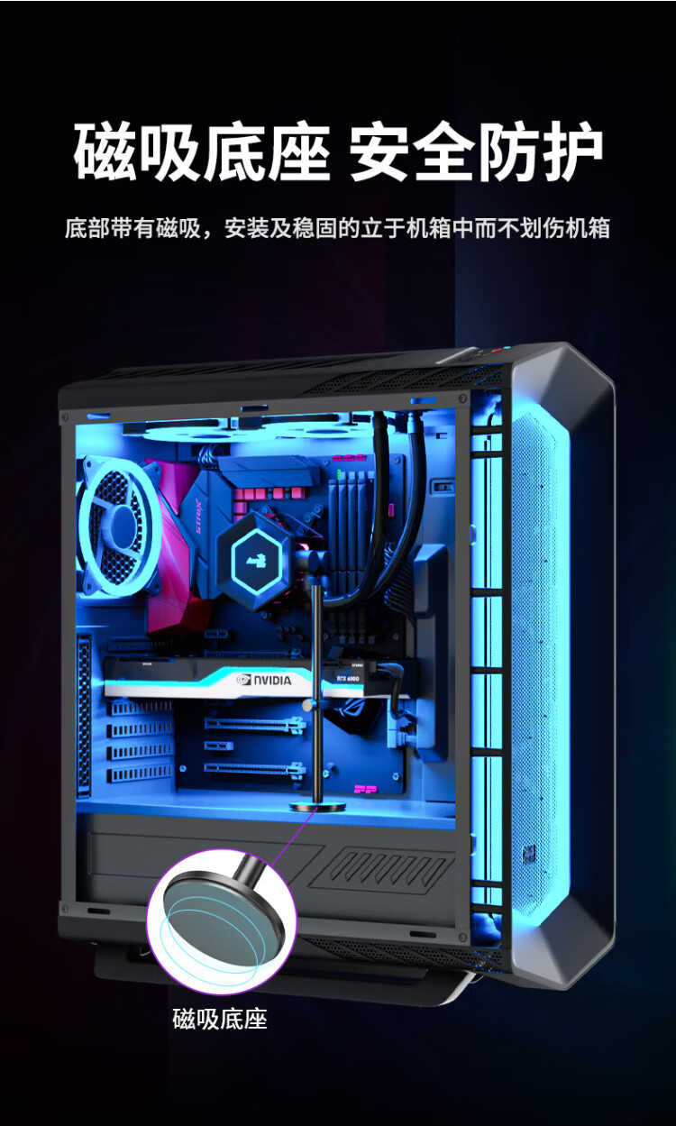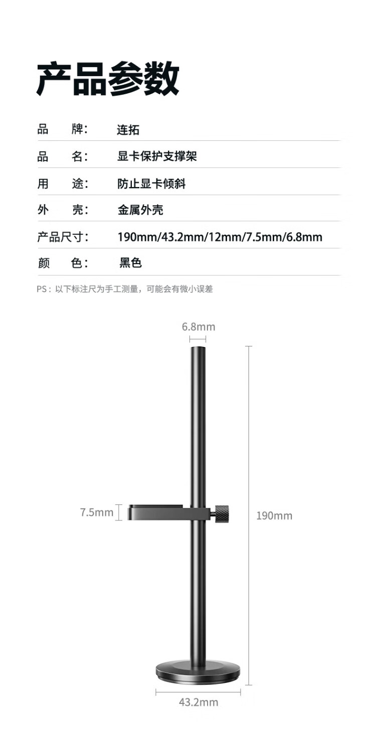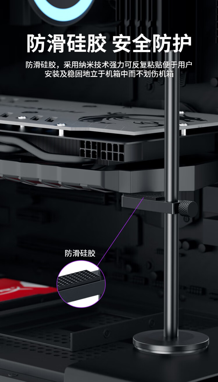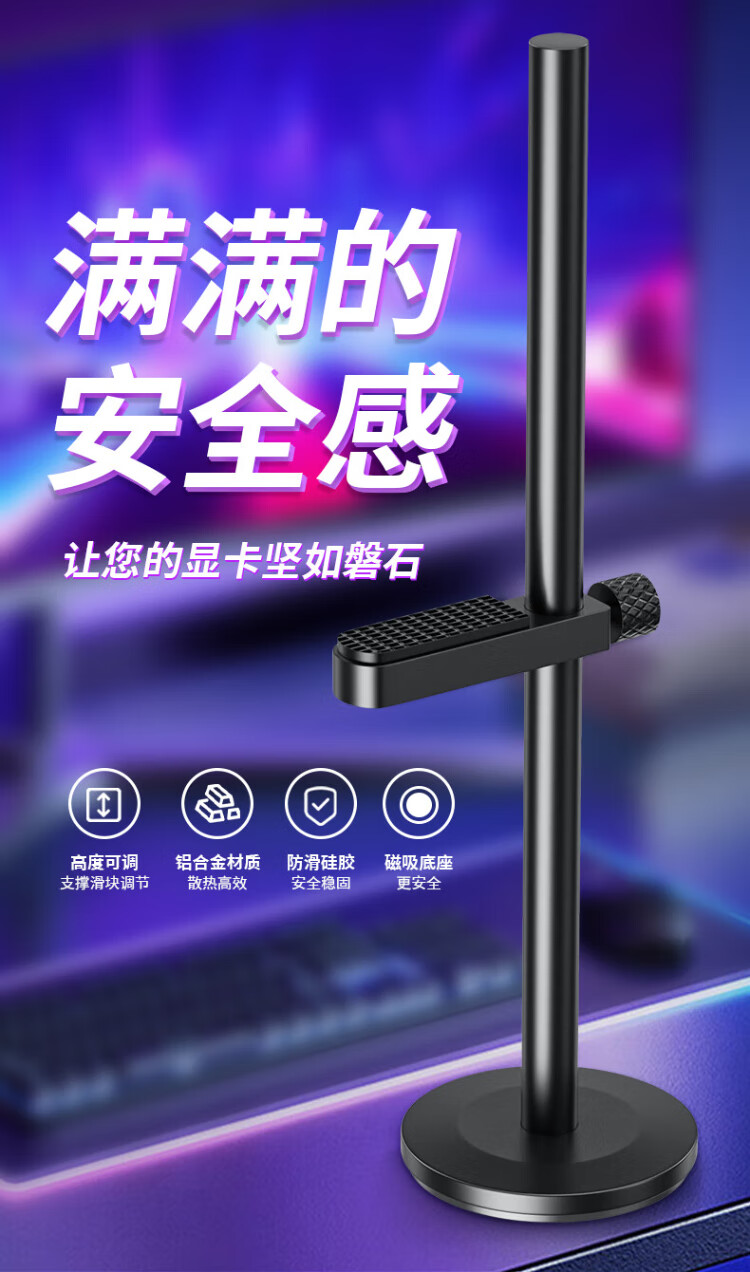 Liantuo graphics card bracket, one thousand Jin Jin is equal to 0.5 kg, top bracket graphics card support bracket, desktop computer independent graphics card support rod, single pole, bottom magnetic suction/height adjustable/aluminum alloy material