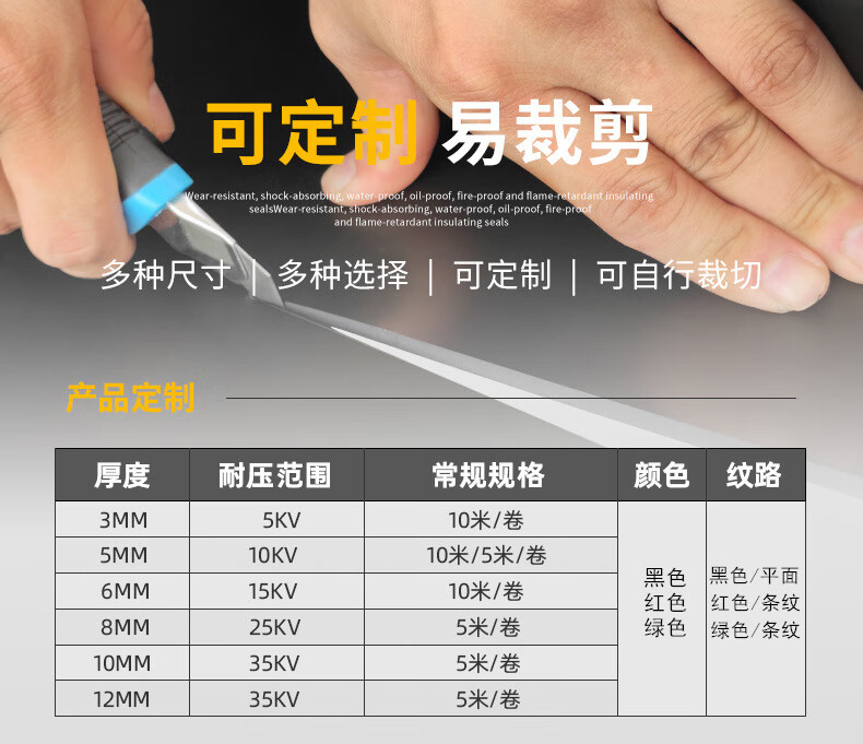 Andatong insulating rubber pad 6KV rubber plate power distribution room power plant rubber carpet insulating foot pad 1 meter * 1 meter 3mm thick black