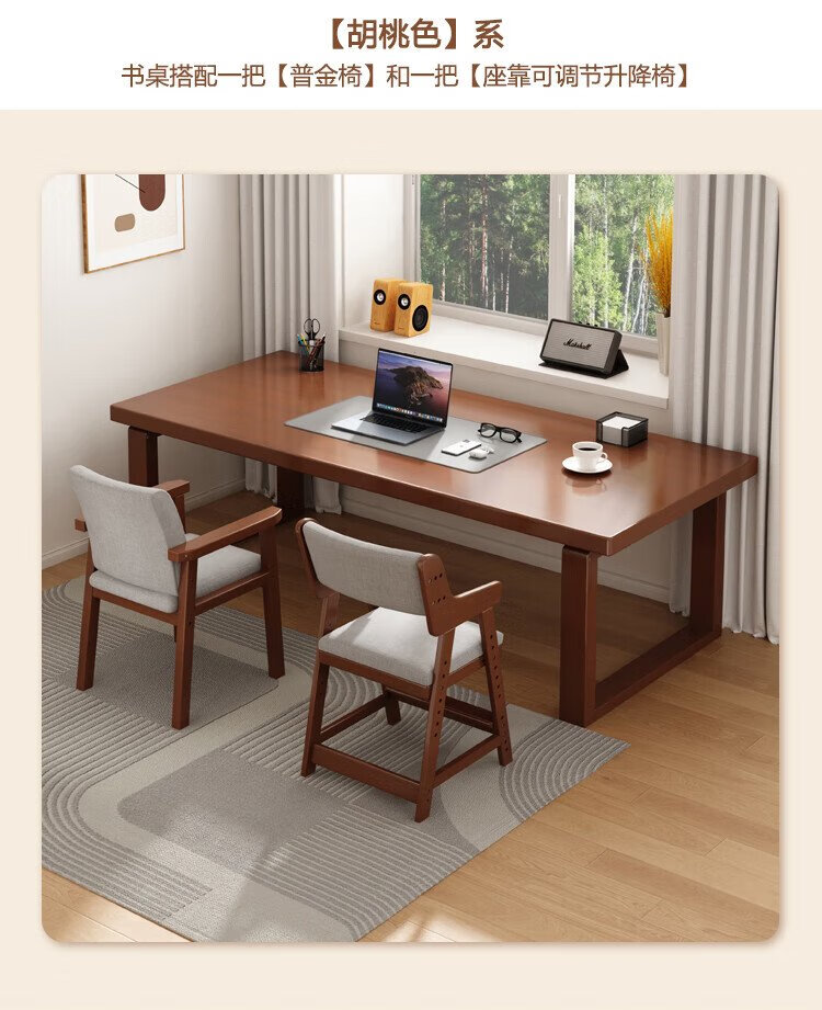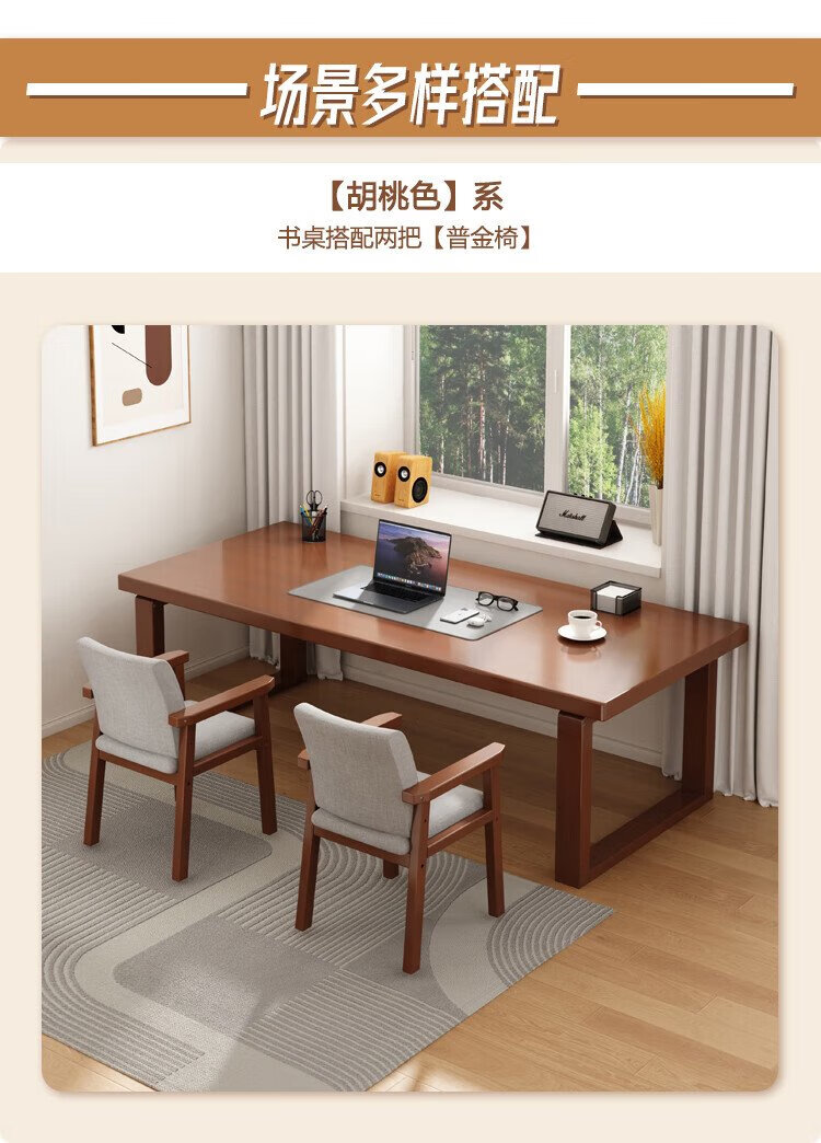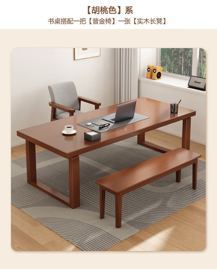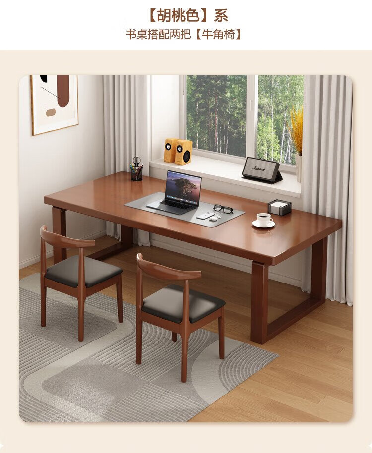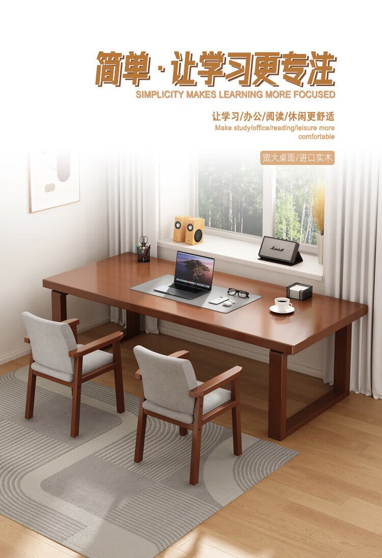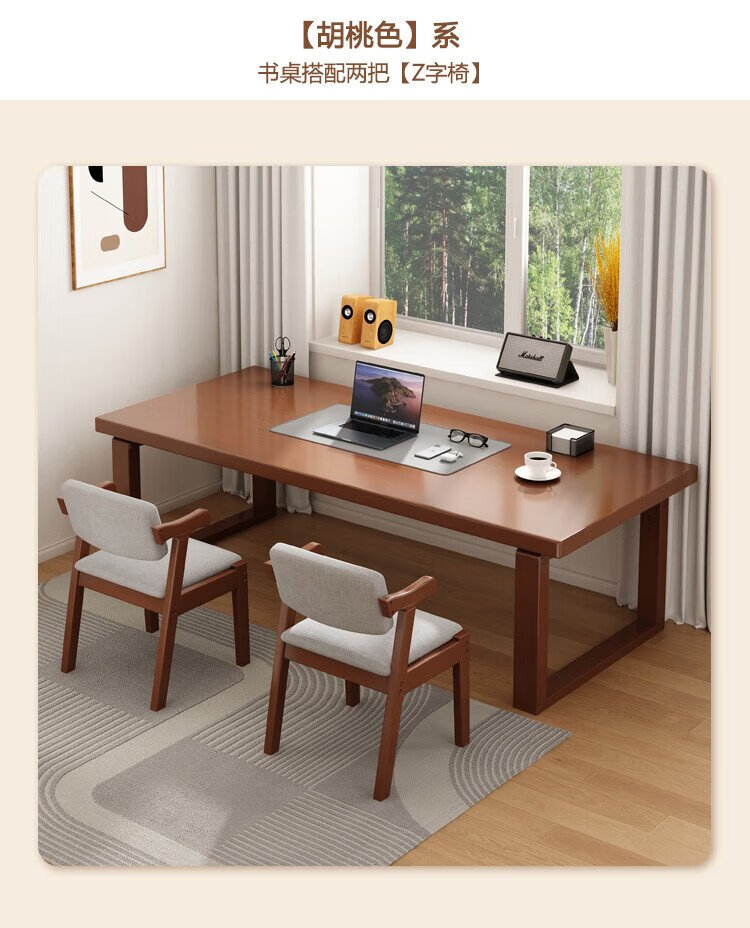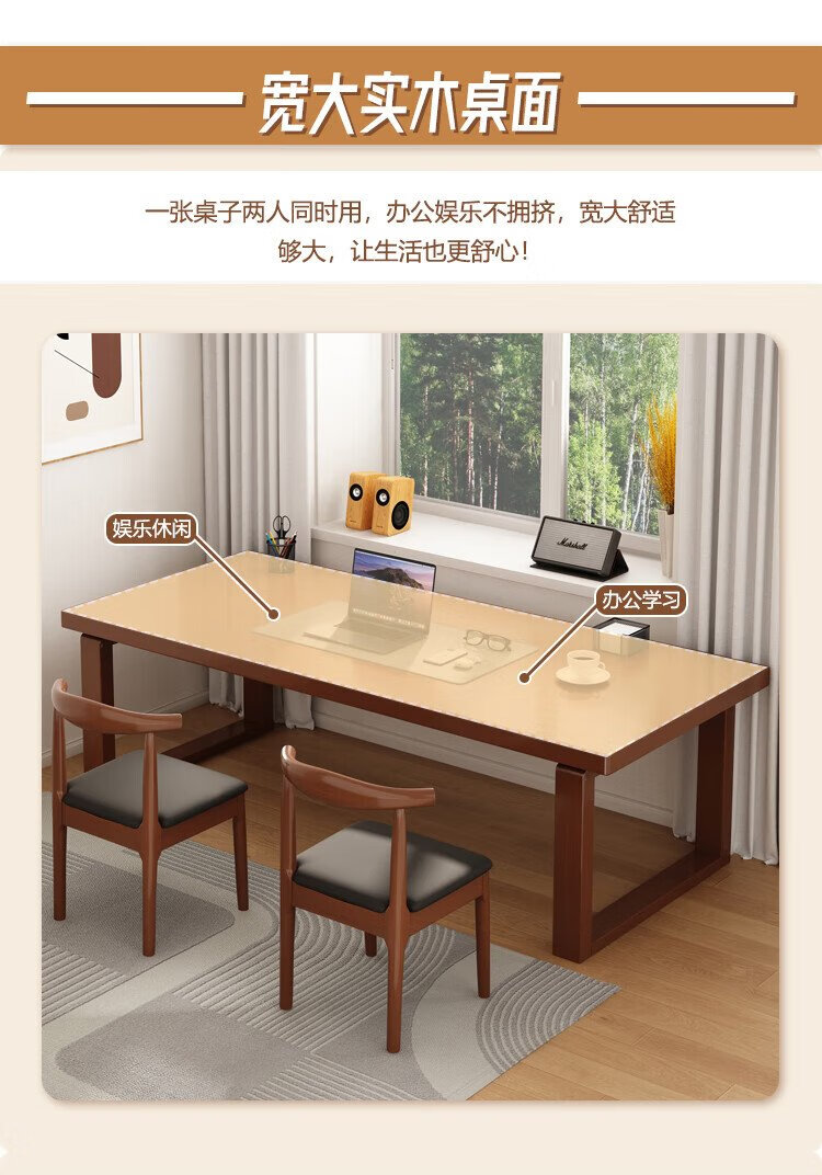 Huazhou solid wood desk home computer desk study table double desk simple living room large table 1.4 meters walnut color