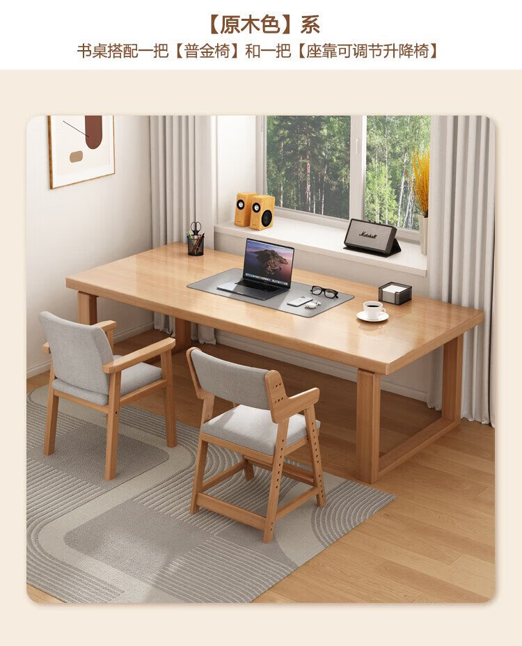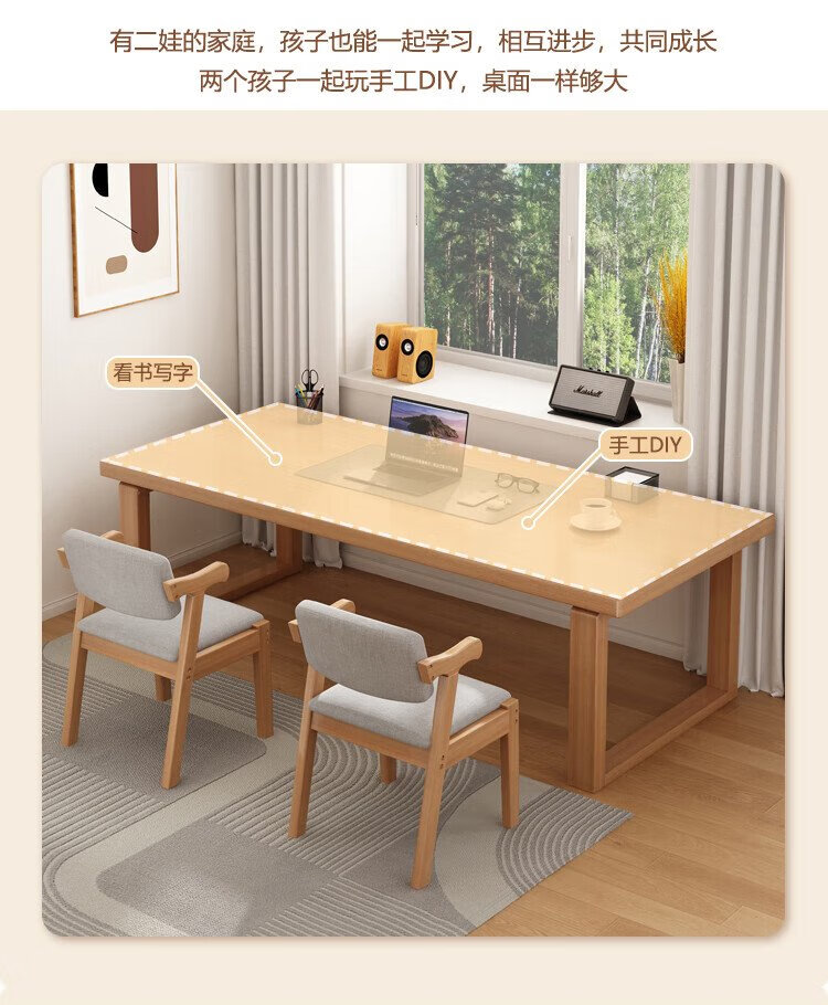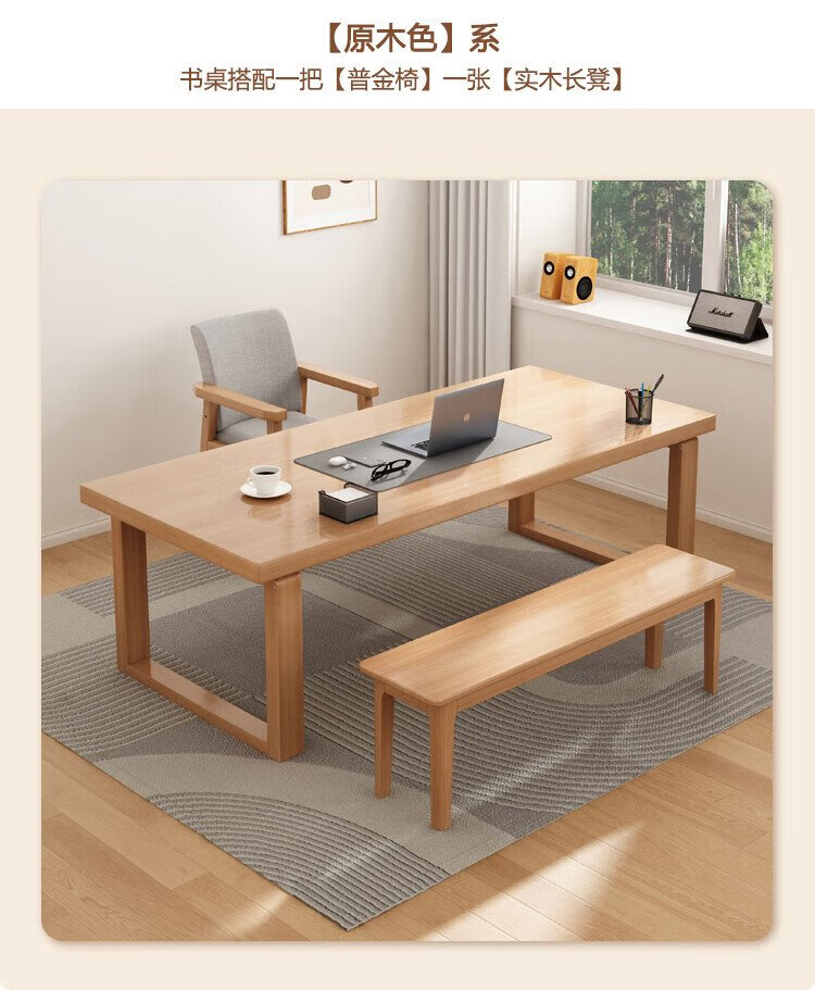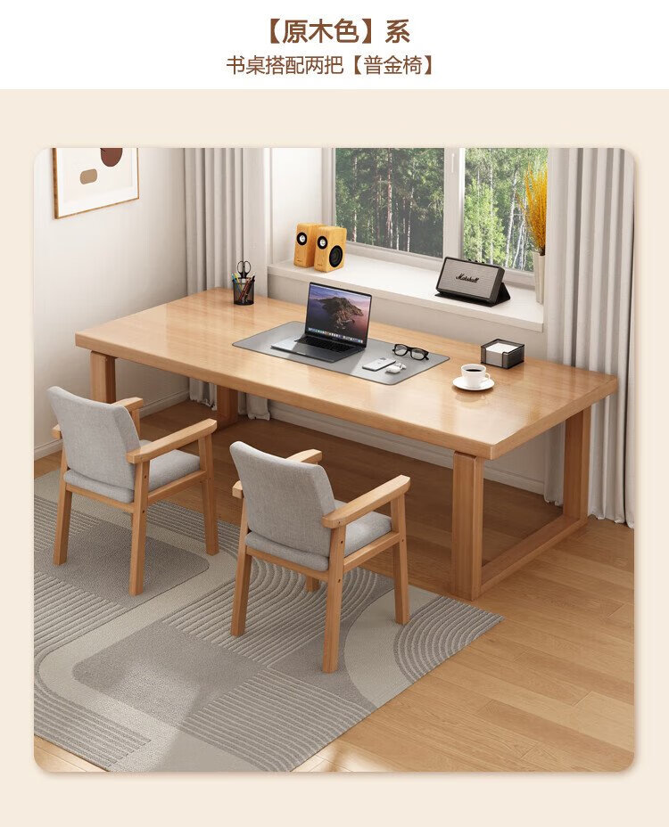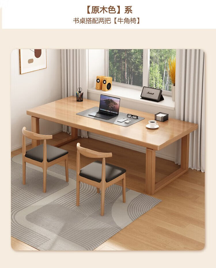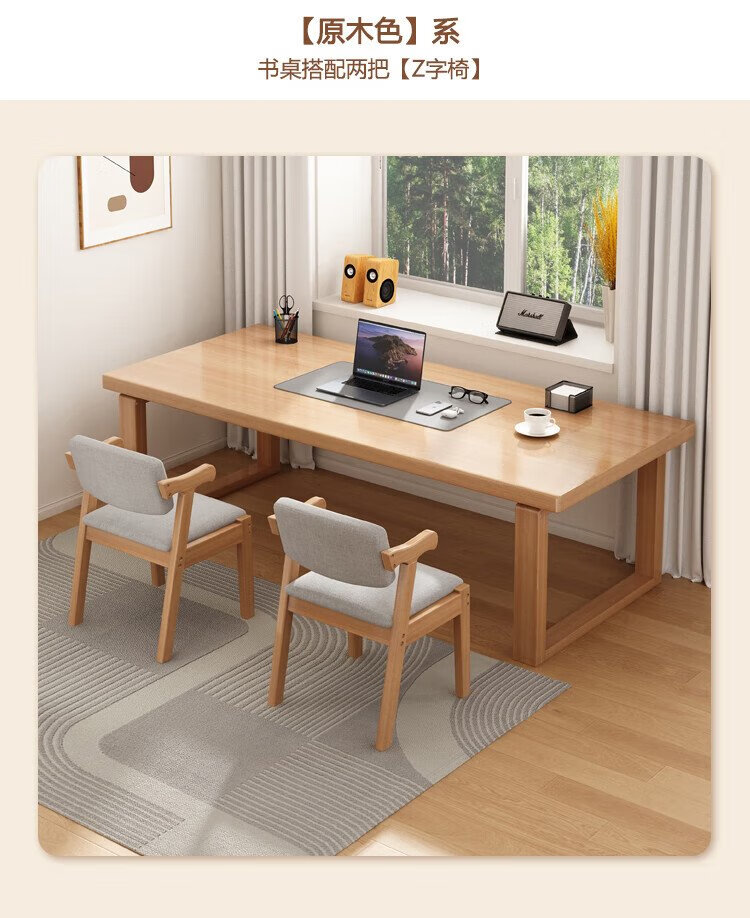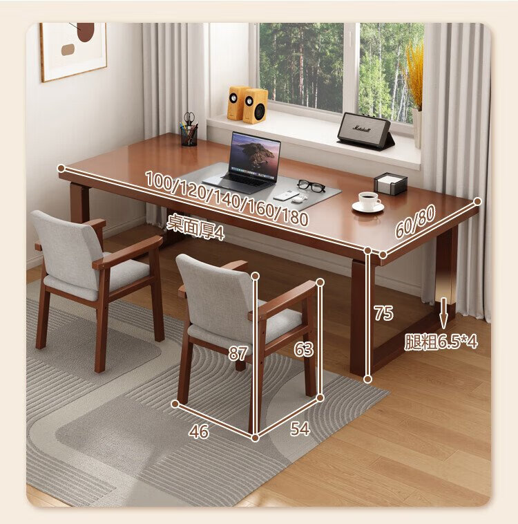 Huazhou solid wood desk home computer desk study table double desk simple living room large table 1.4 meters walnut color