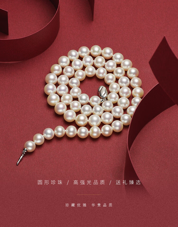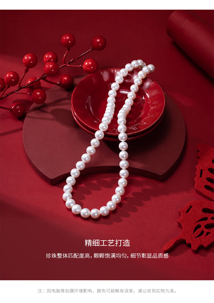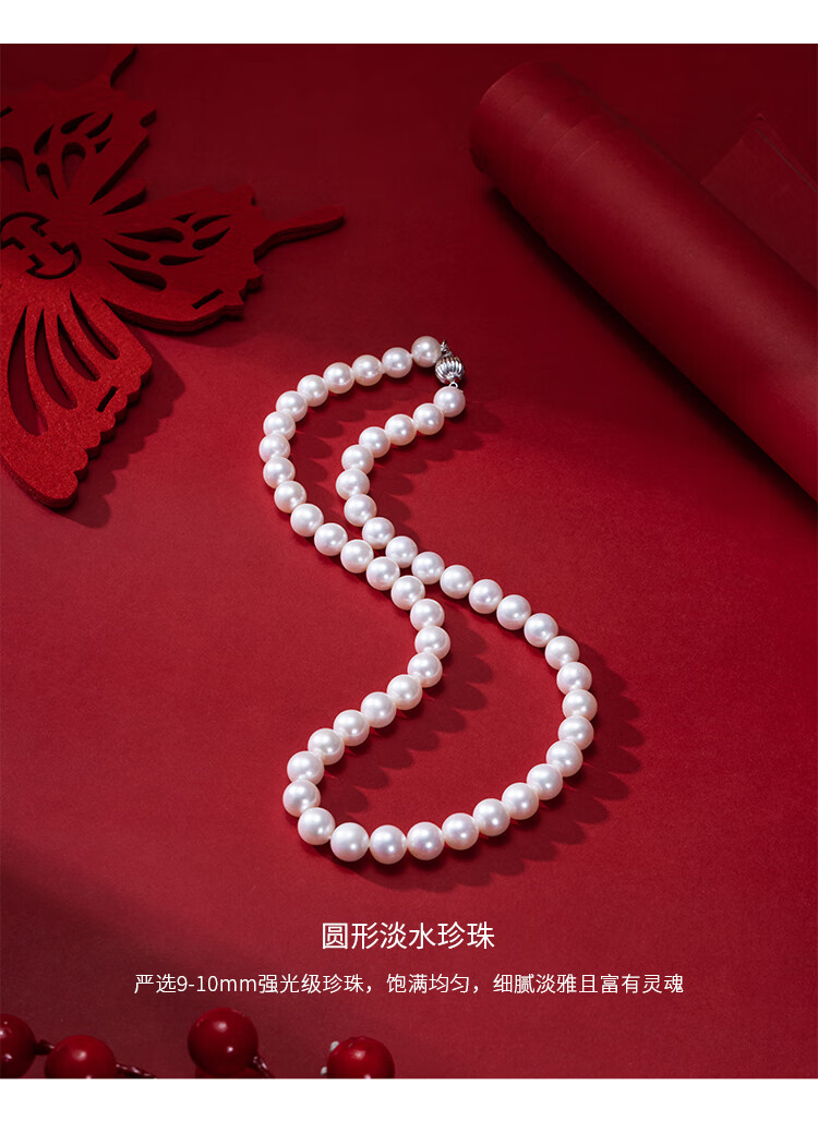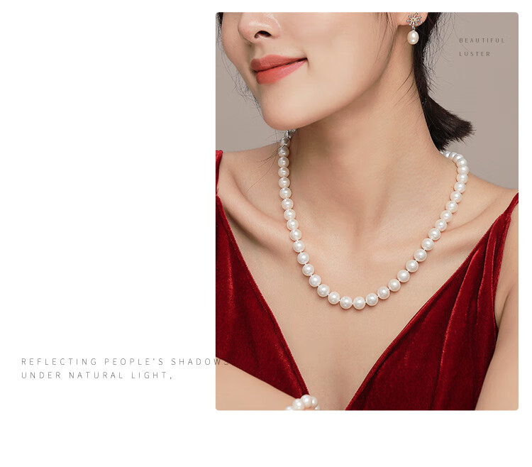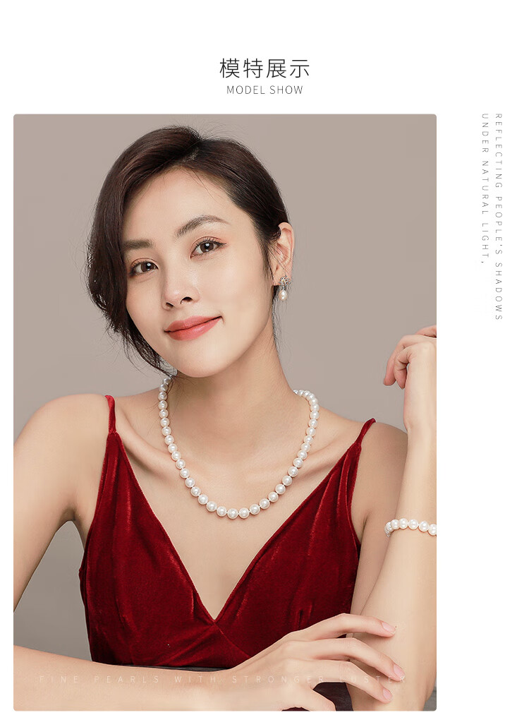 Jingrun Pearl Necklace Yazhen 925 Silver Freshwater Pearl Necklace Women's Round High-Light High-Quality Sensation as a Birthday Gift for Mom