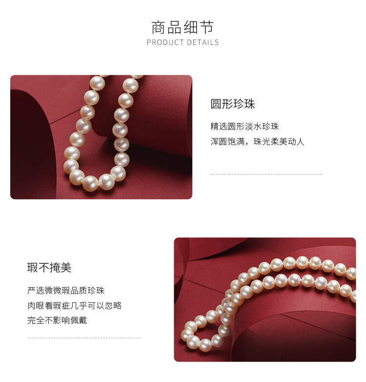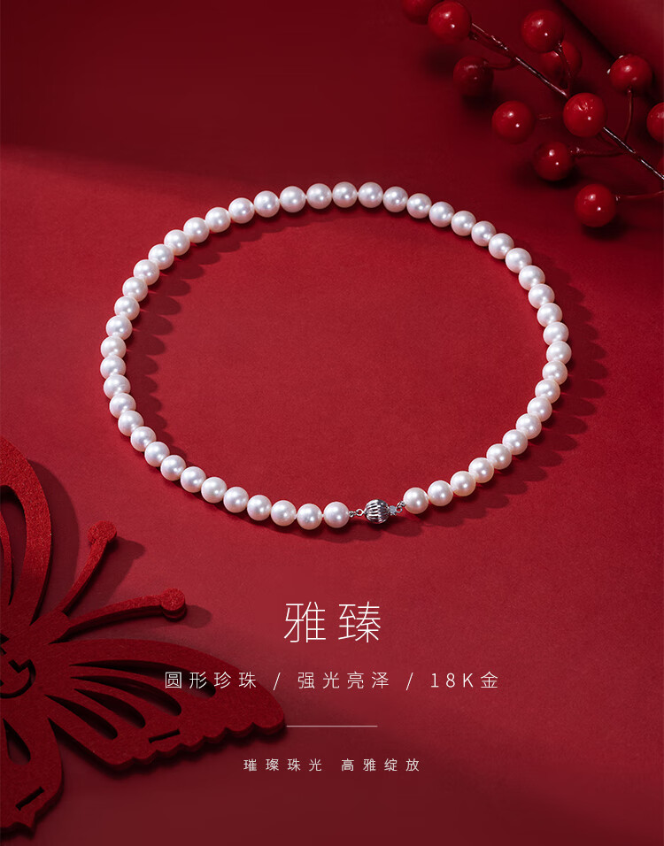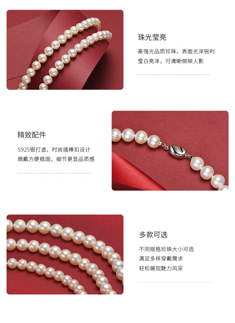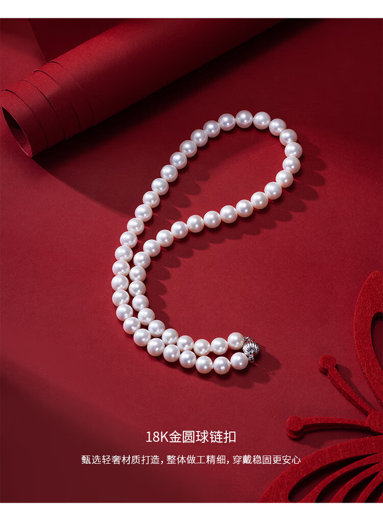 Jingrun Pearl Necklace Yazhen 925 Silver Freshwater Pearl Necklace Women's Round High-Light High-Quality Sensation as a Birthday Gift for Mom