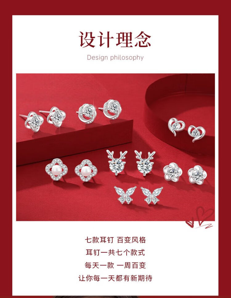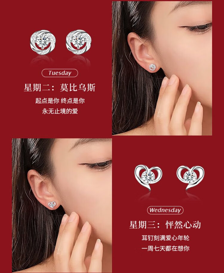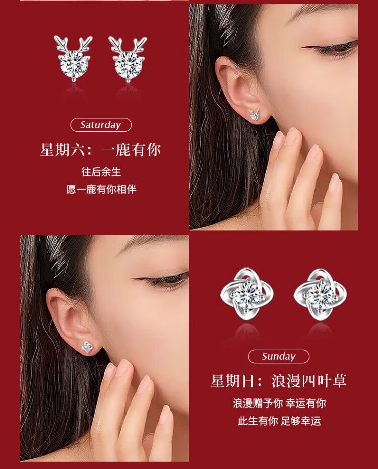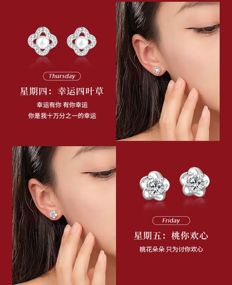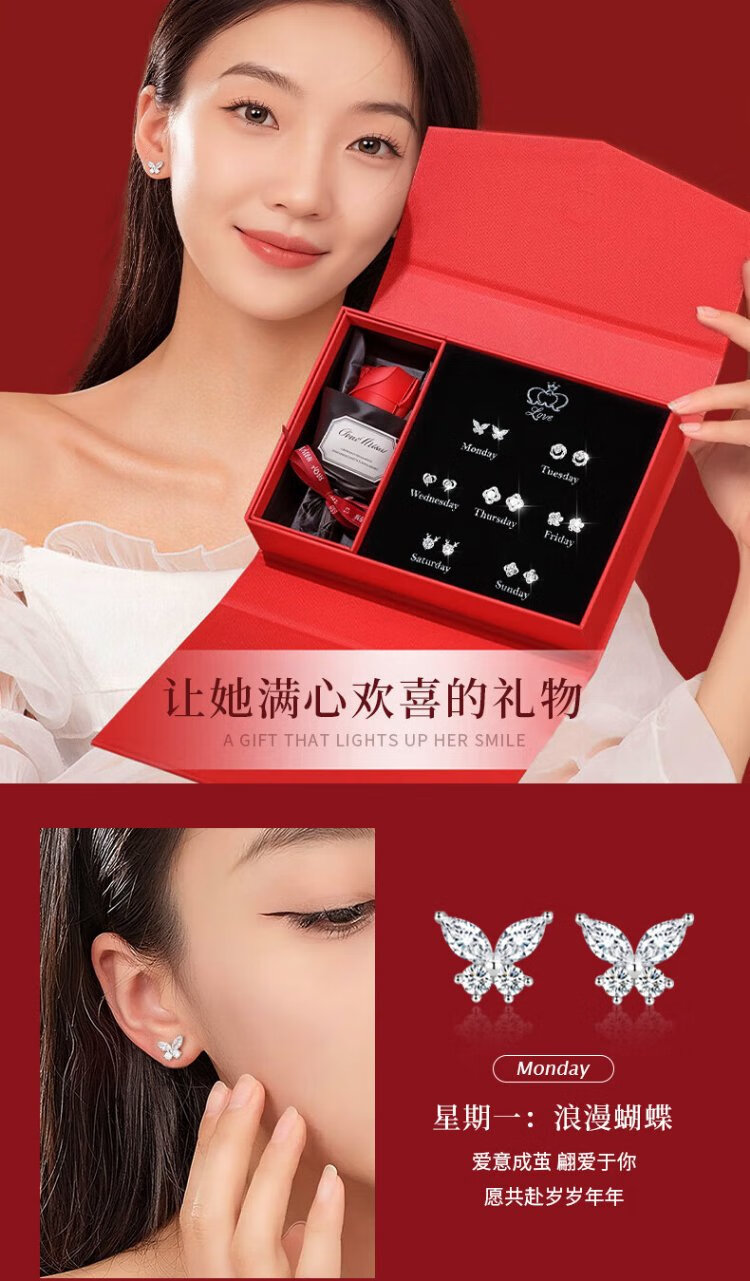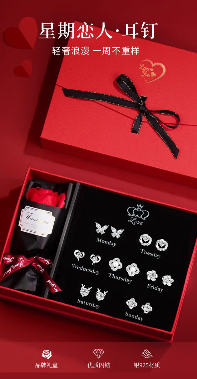 GLTEN Weekly Earrings Gift Box Women's Silver Needle Weekly Earrings Ring High-end Birthday Memorial Gift for Girlfriend and Wife High-end