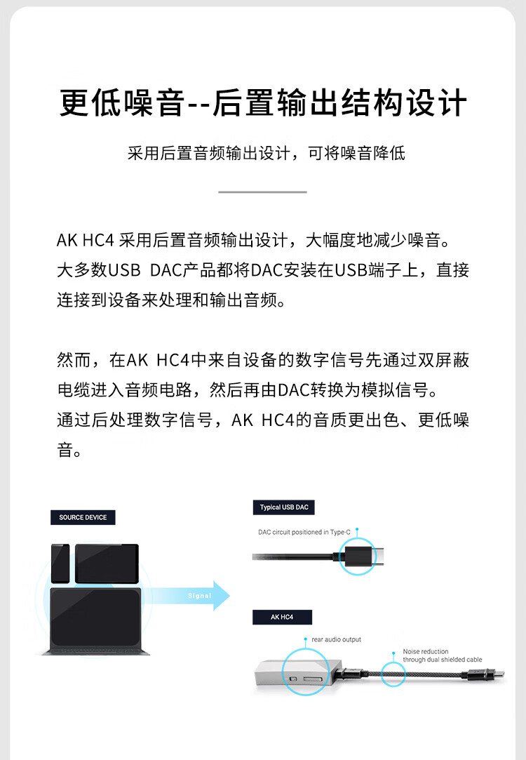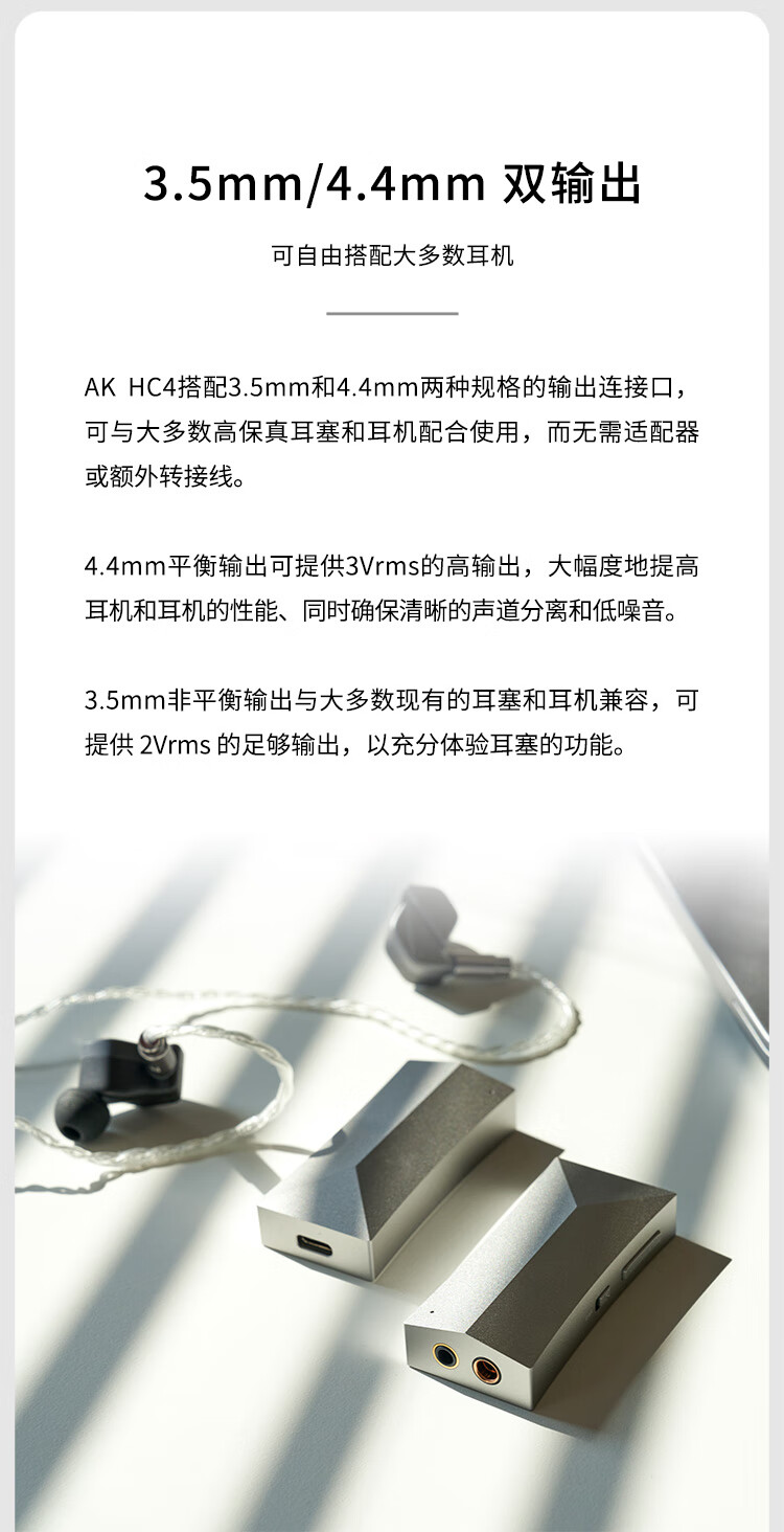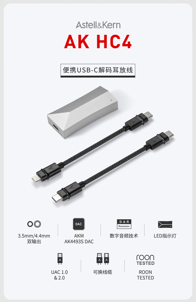 Iriver Astell&Kern AK HC4 decoder amp cable 3.5mm 4.4mm iOS Android mobile phone computer HiFi portable small tail Moon Silver