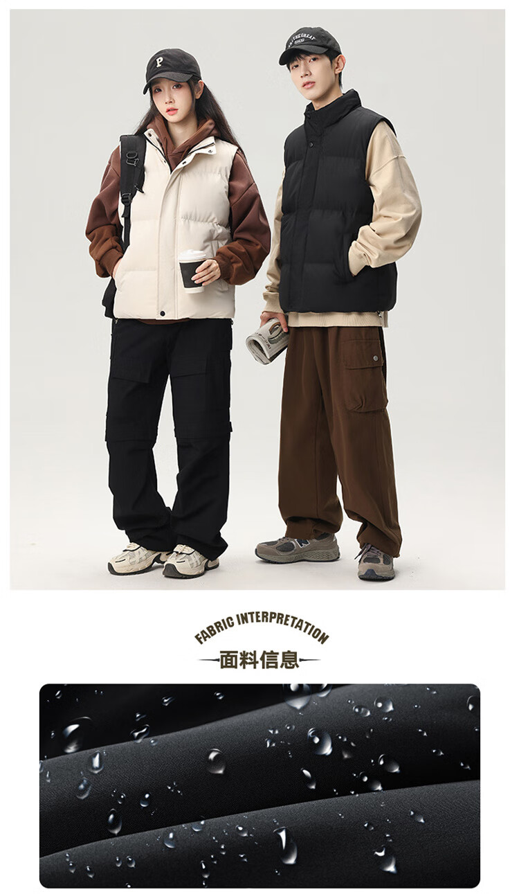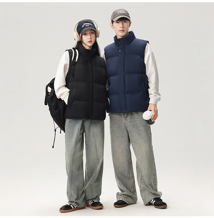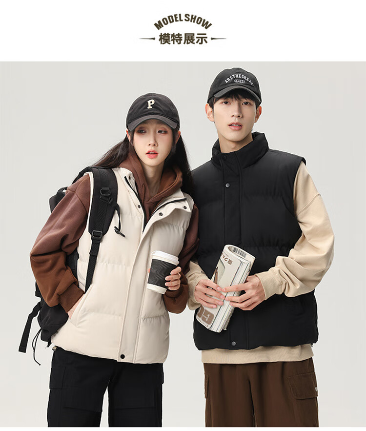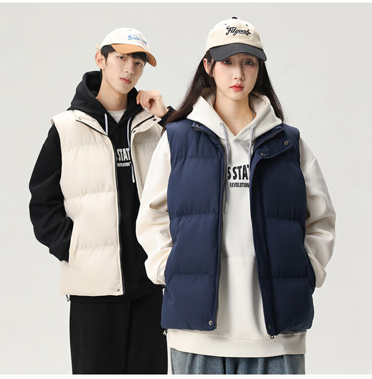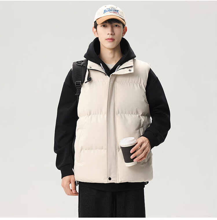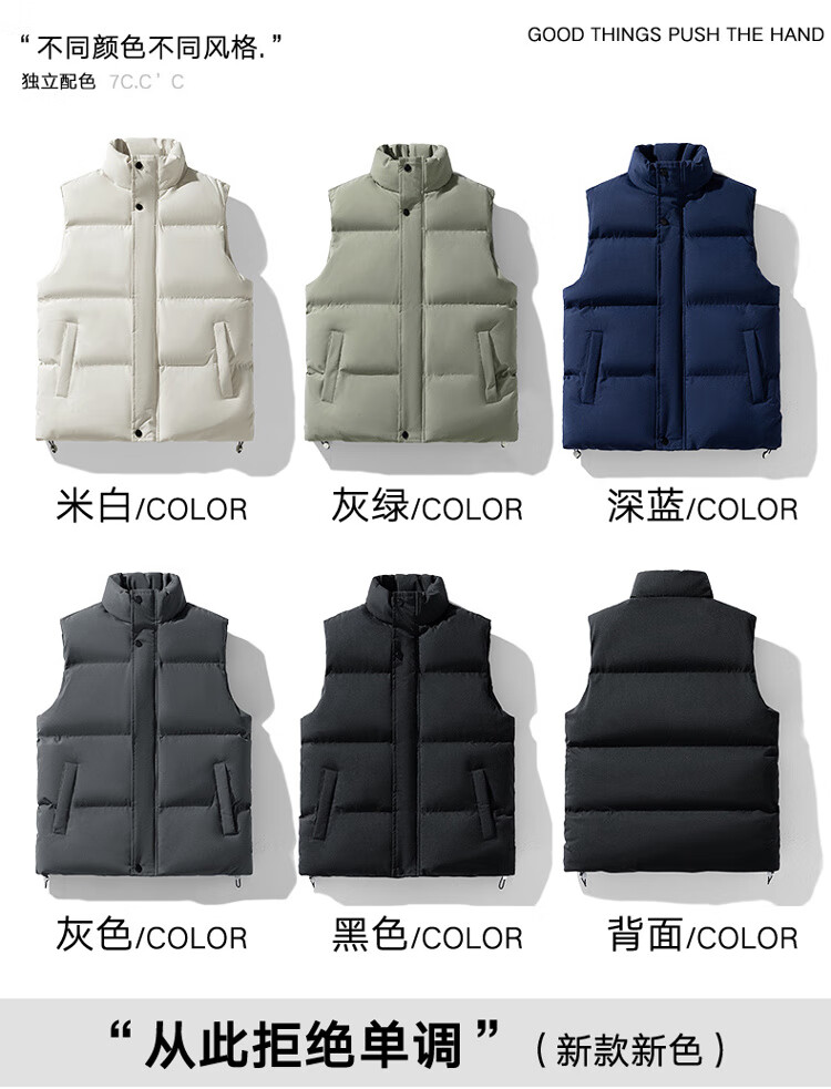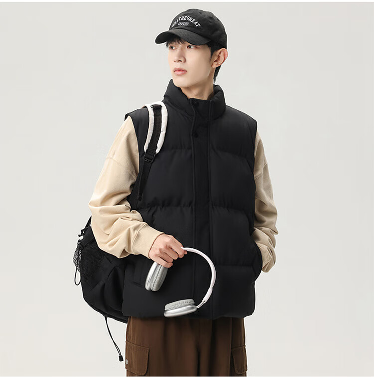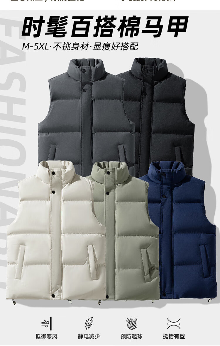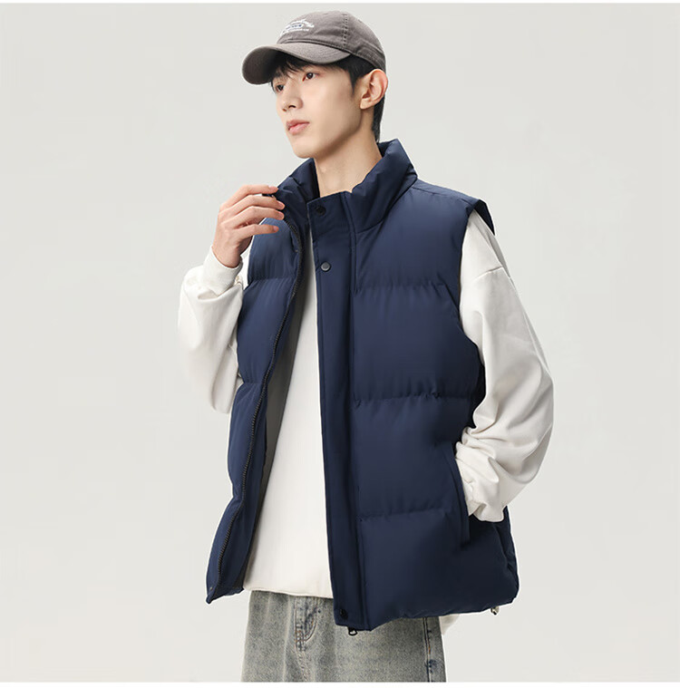 GENIOLAMODE brand vest men's autumn and winter coat men's solid color stand-up collar waistcoat warm vest casual cotton jacket