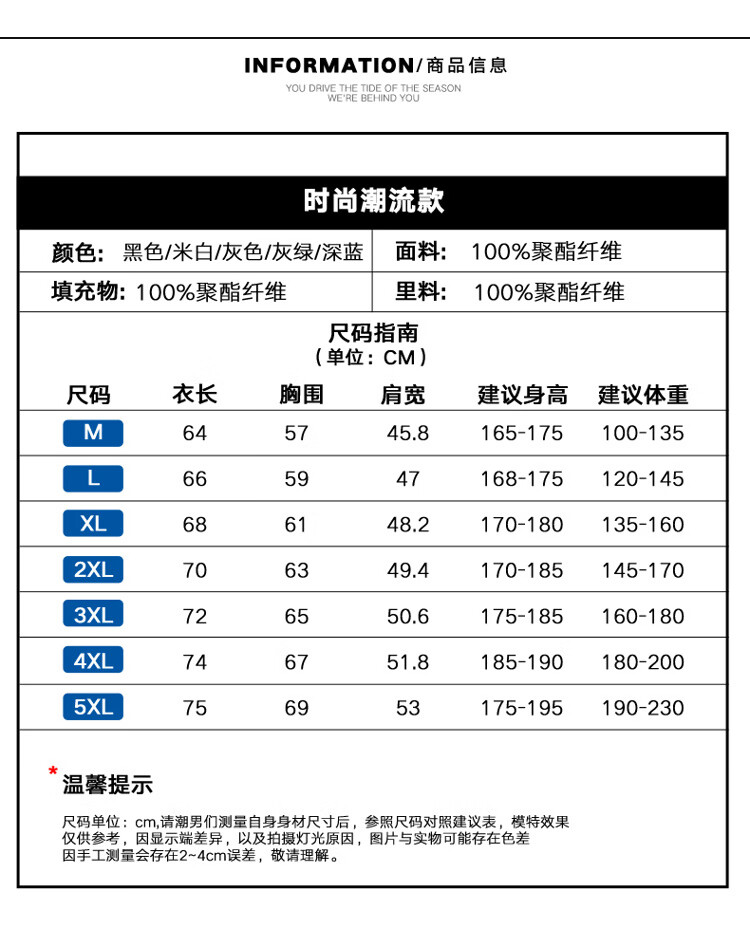 China (cm) 165 / 88-90 170 / 96-98 175 / 108-110 180 / 118-122 185 / 126-130