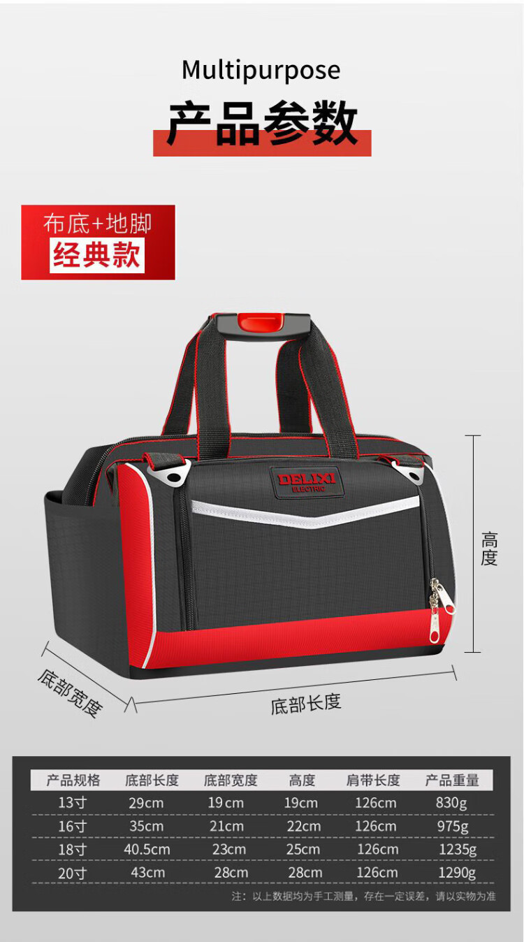 Delixi upgrade tool bag, durable, multi-functional repair canvas electrician special storage bag, men's thickened tool bag