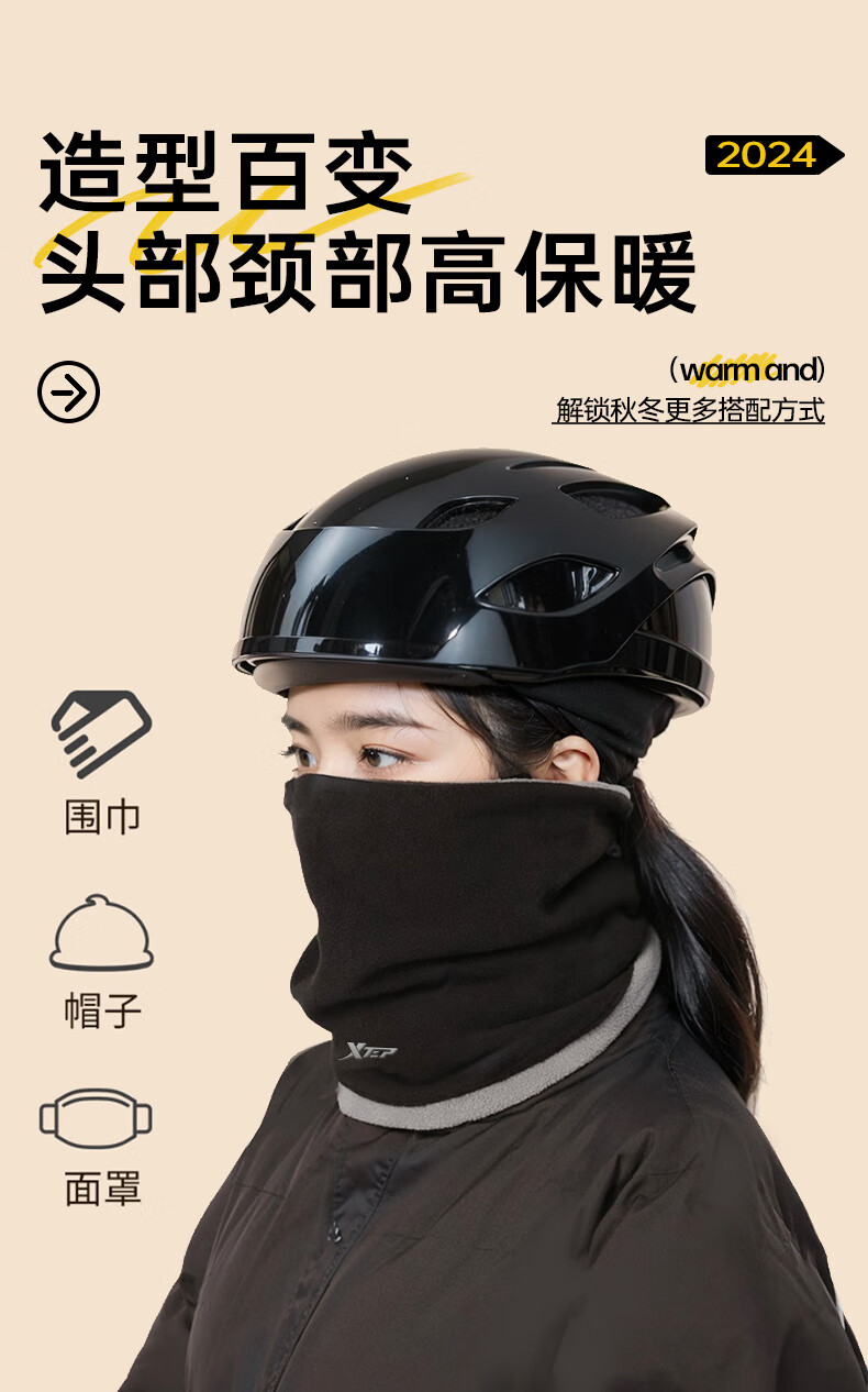 XTEP neck scarf cycling mask to keep warm and protect against wind and dust winter outdoor motorcycle hood face protection scarf hat for men and women