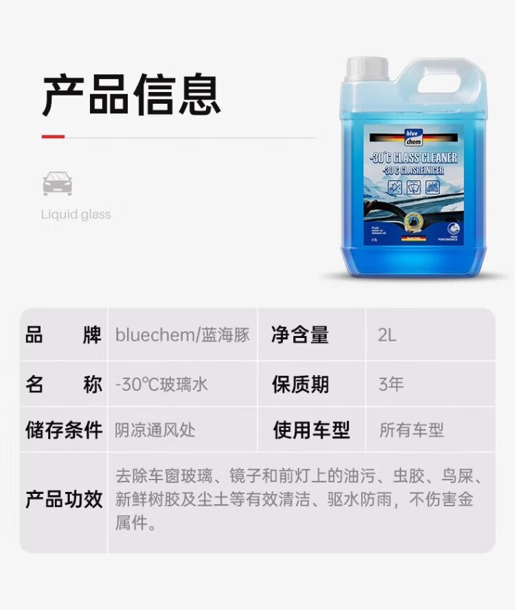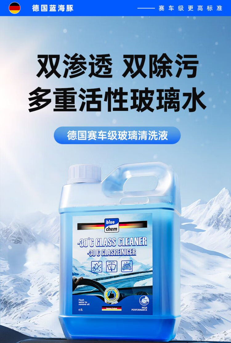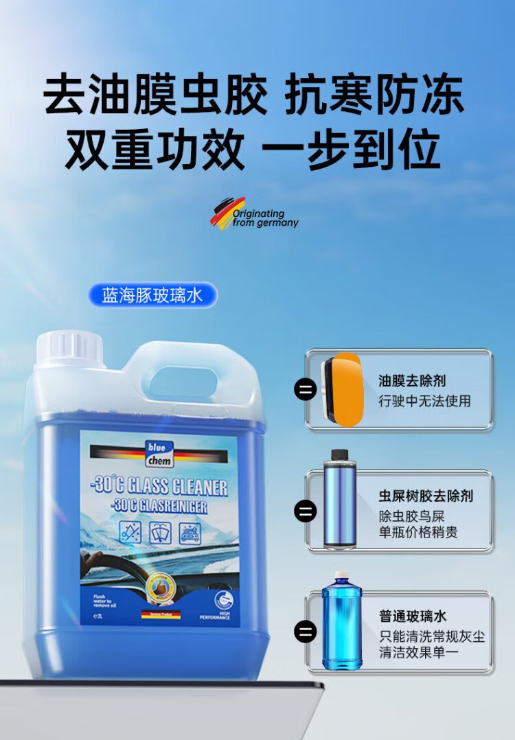Blue Dolphin antifreeze glass water 2L*2 bottles minus 25-40 degrees to remove oil film car winter ethanol wiper water for all seasons