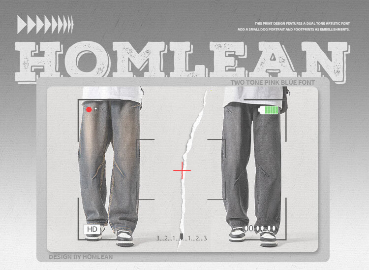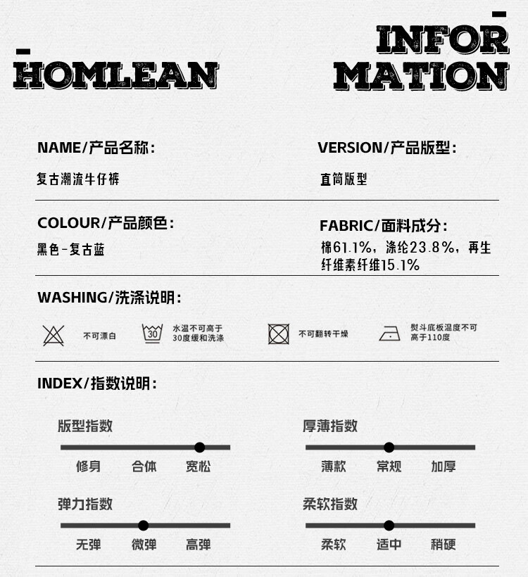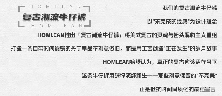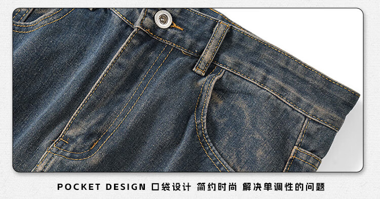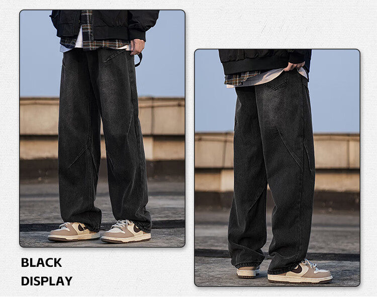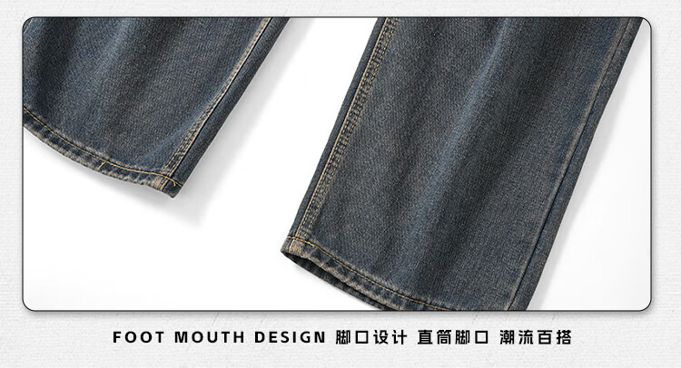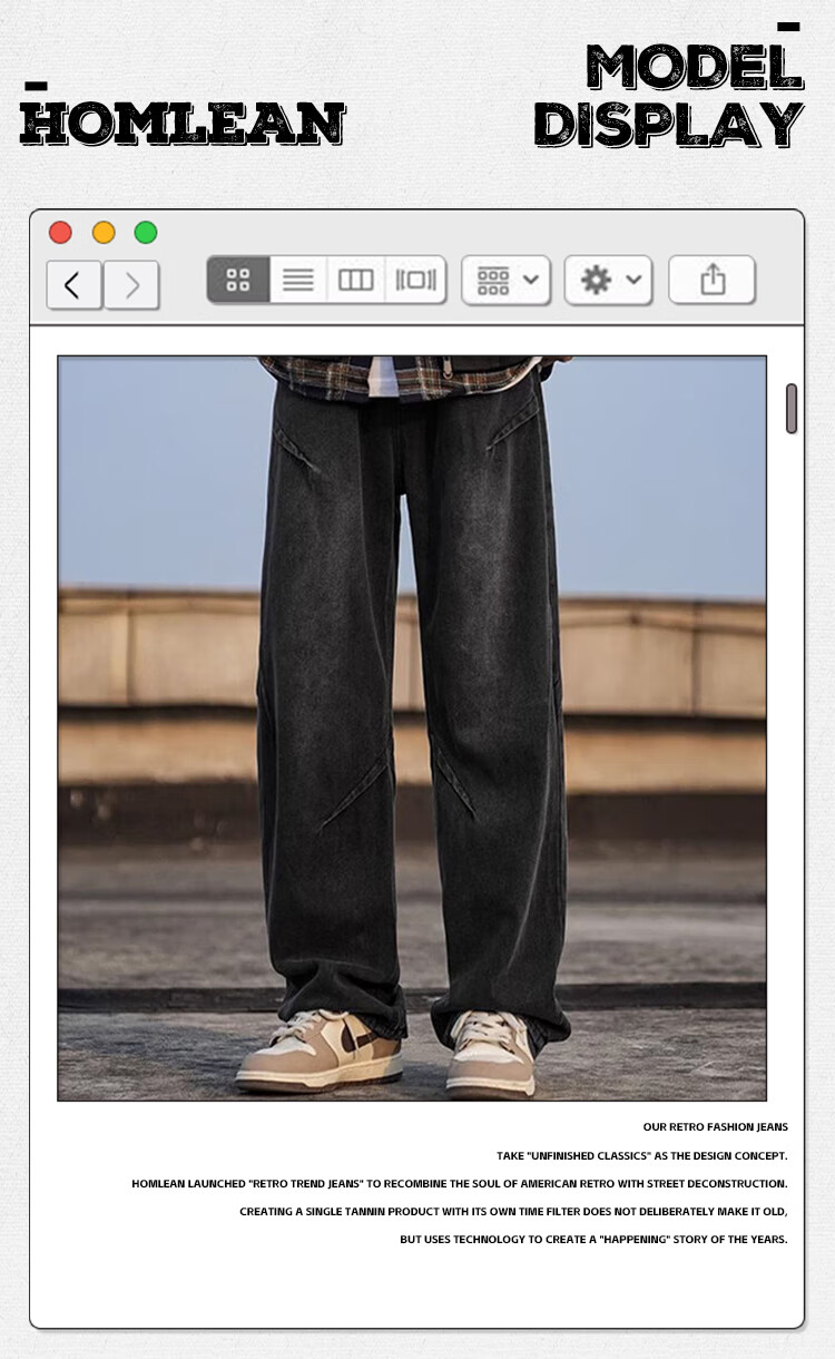 Homlean washed retro jeans men's spring and summer American loose pleated design straight long pants HS04 retro blue XL