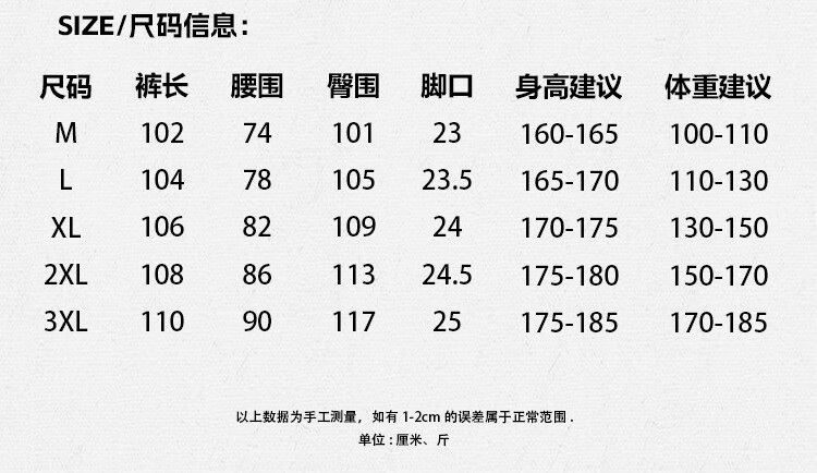 Outseam (cm) 99 cm 101.5 cm 104 cm 106.5 cm 109 cm