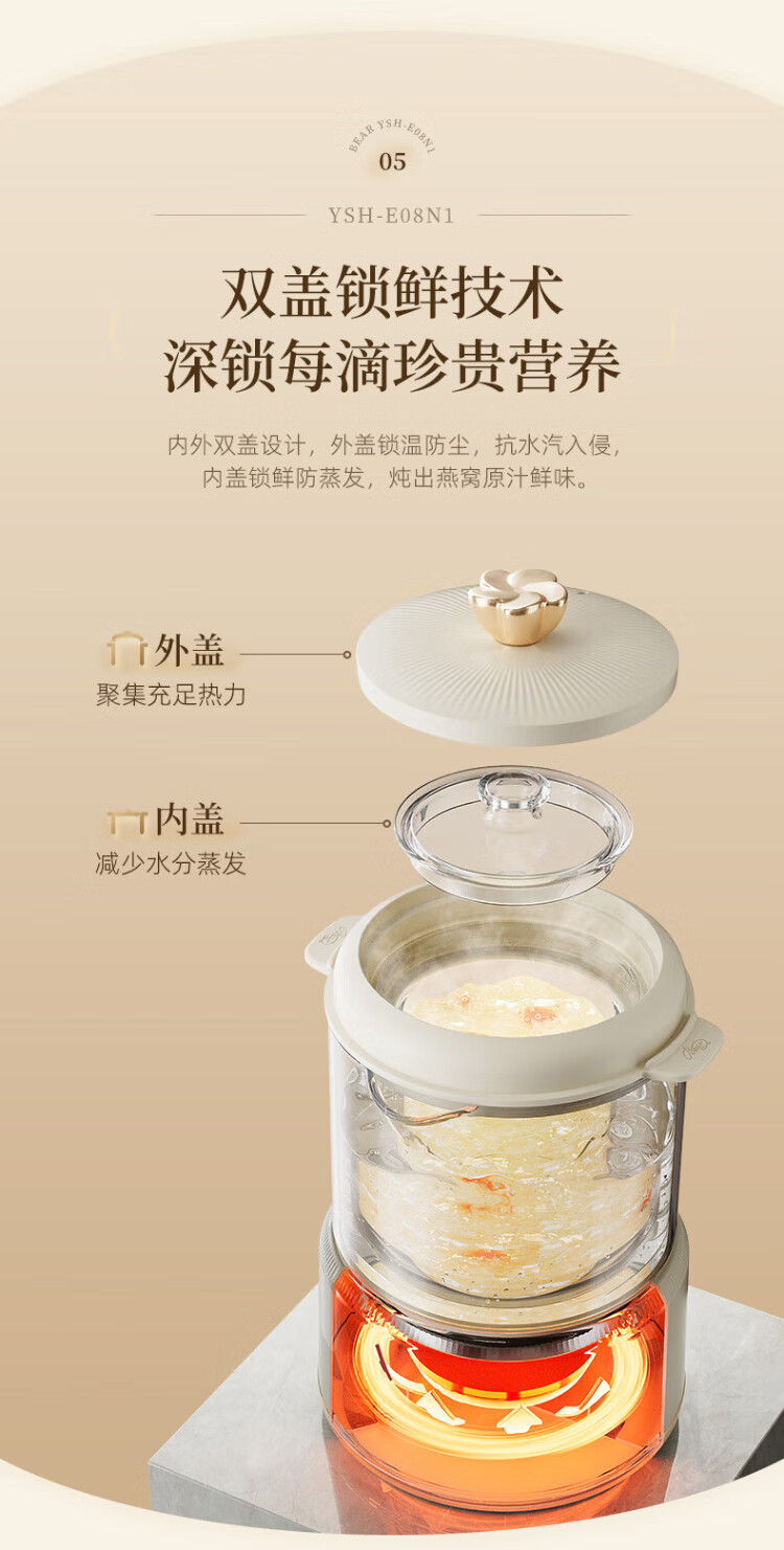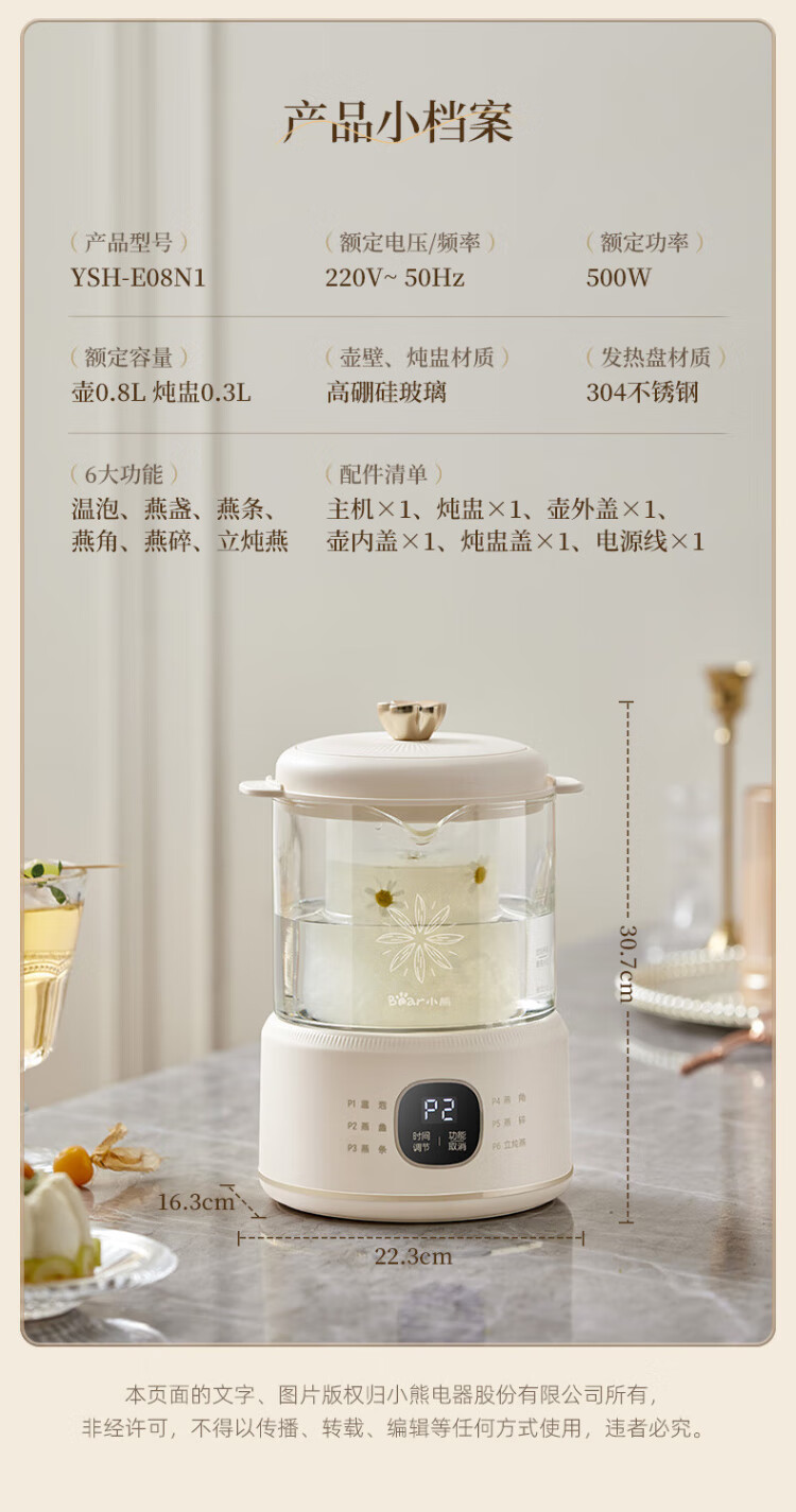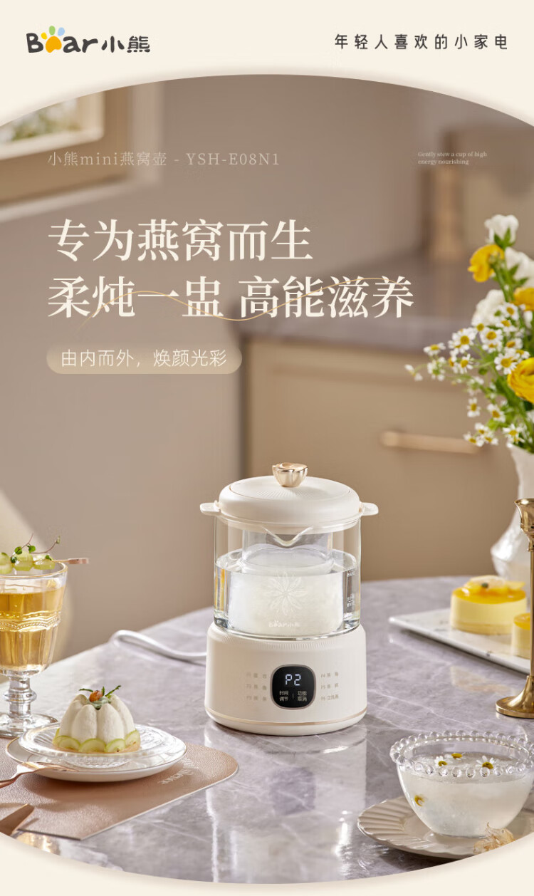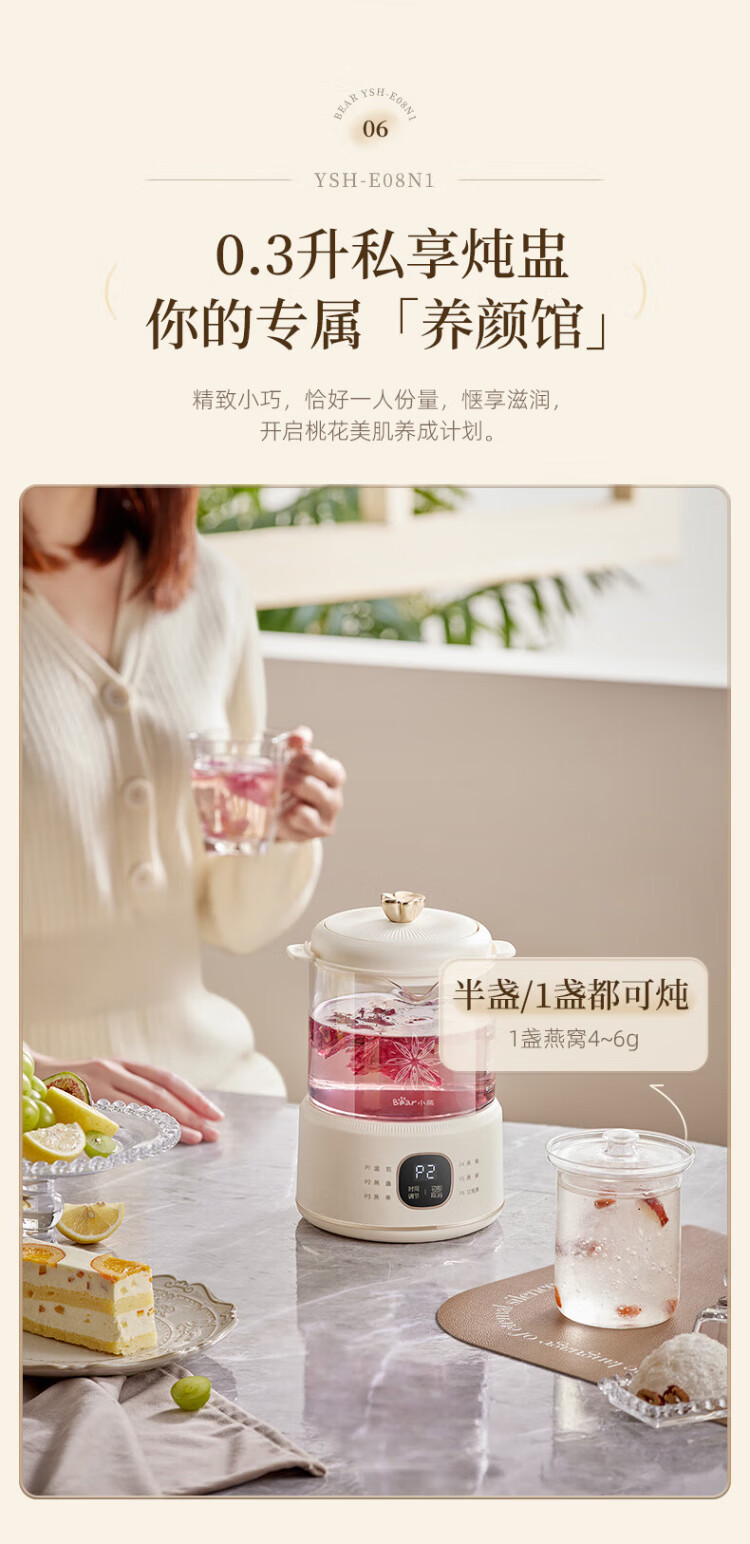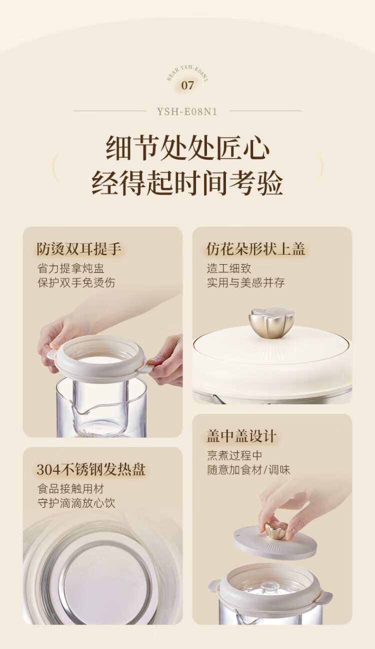 Bear electric stew pot, electric stew pot, water-proof stew pot, mini health pot, health cup, electric stew cup, electric heating cup, office cup, 0.8L exclusive bird's nest pot YSH-E08N1