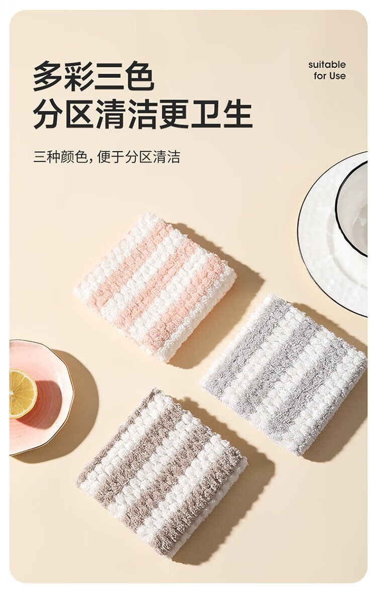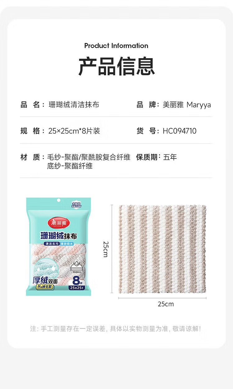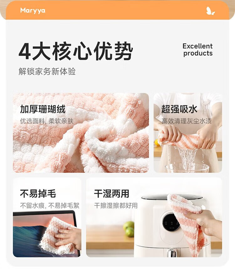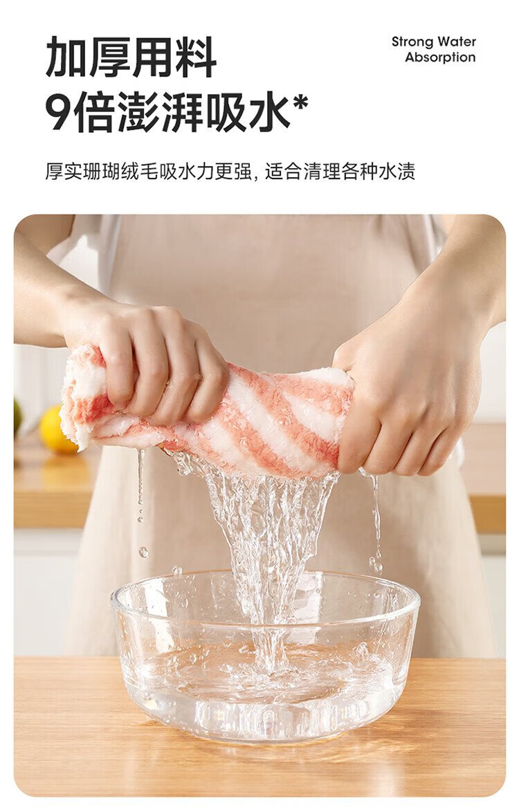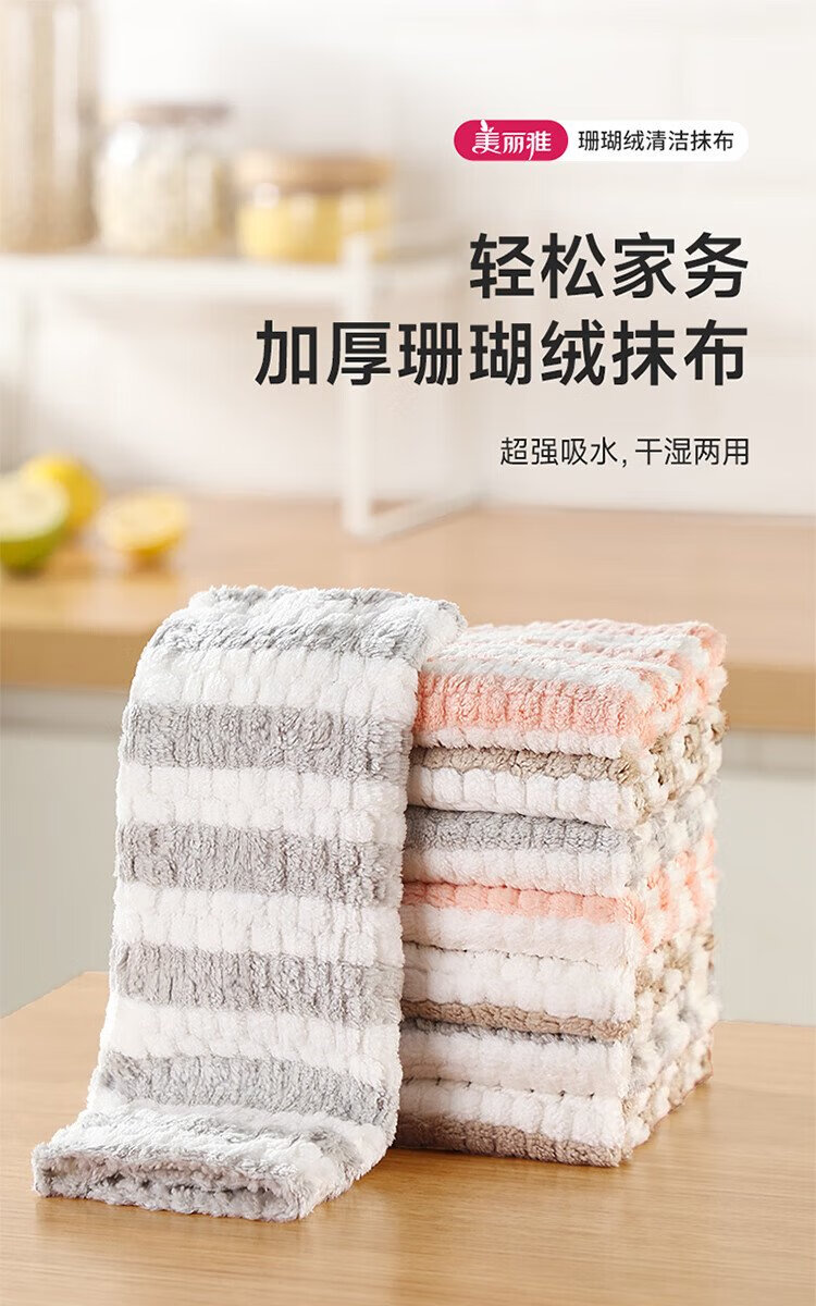 Meliya coral velvet rags 25*25cm 8 pieces kitchen dishwashing cleaning table wiping absorbent water decontamination not easy to leave marks and lint