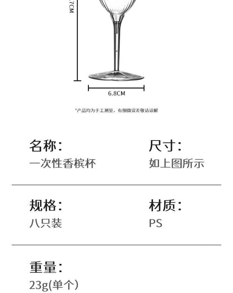 Badger disposable champagne glasses 210ml 8 pieces red wine glass plastic cocktail grape tall transparent wine glass