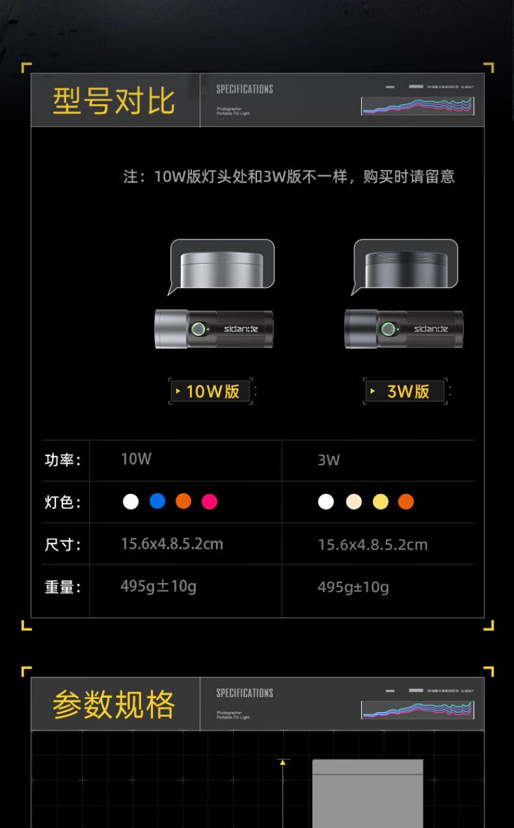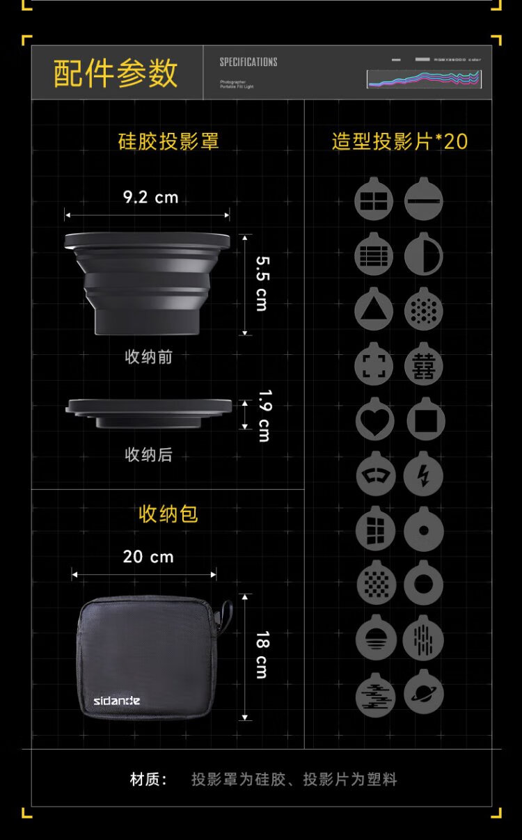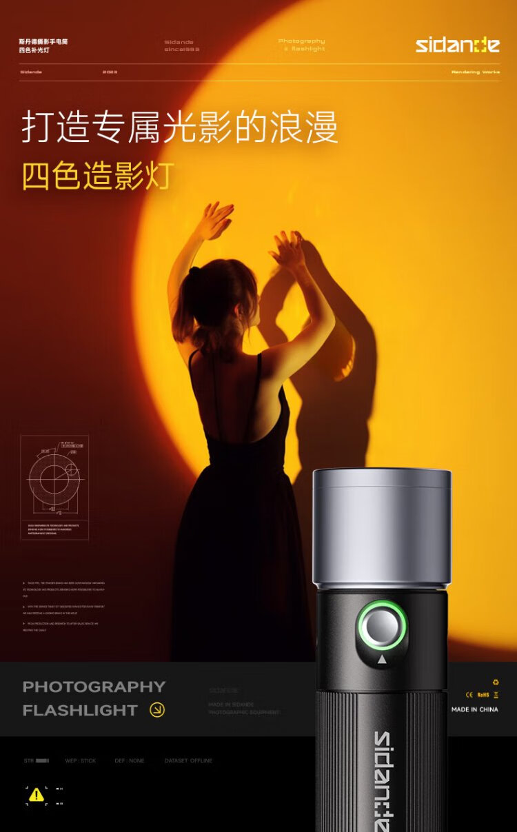 Sidande Z10 photography flashlight fill light contrast lamp 10W four-color projection camera handheld portable light and shadow spotlight hair background portrait professional wedding live broadcast shooting outdoor