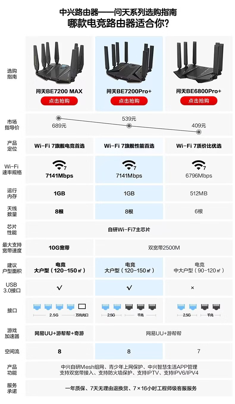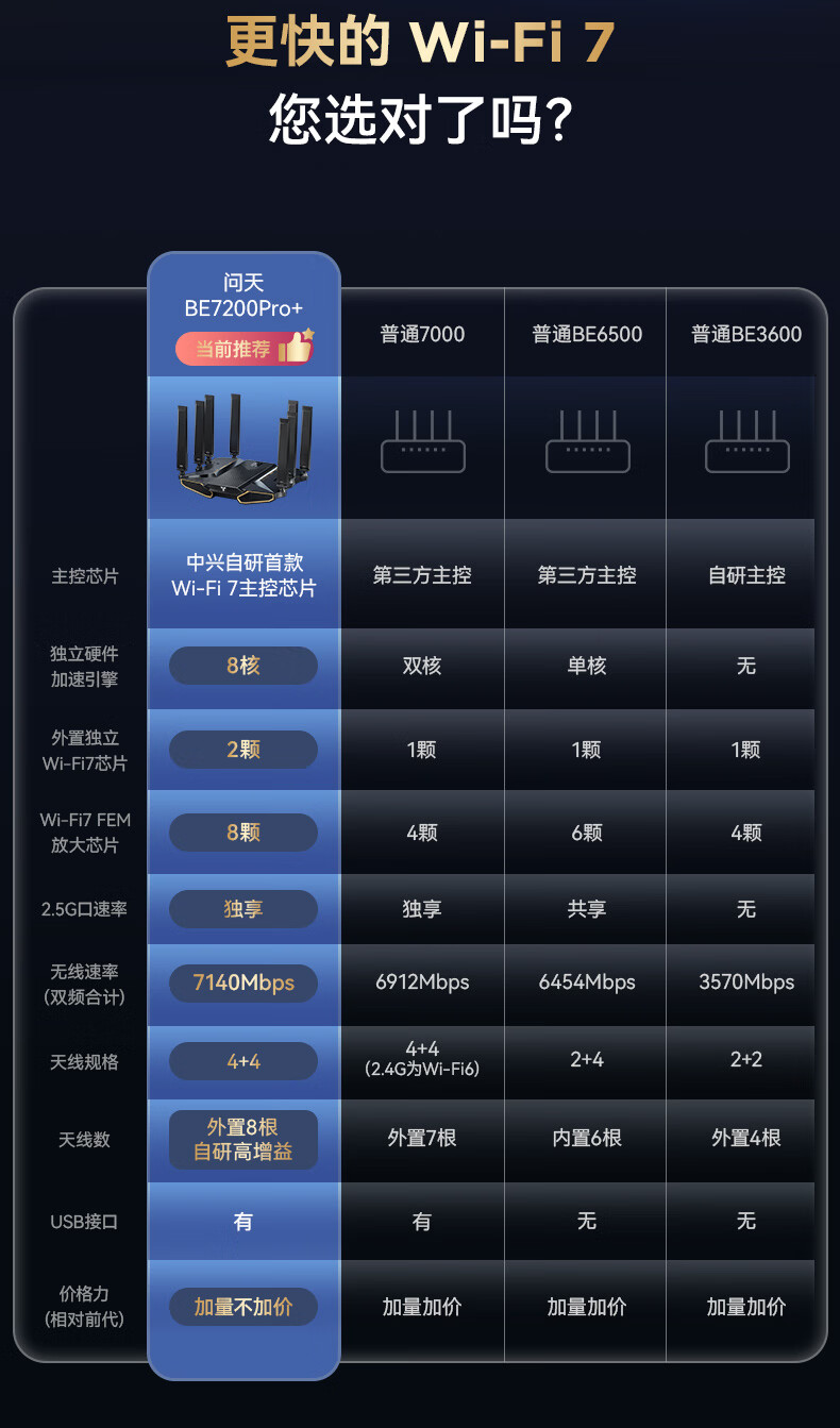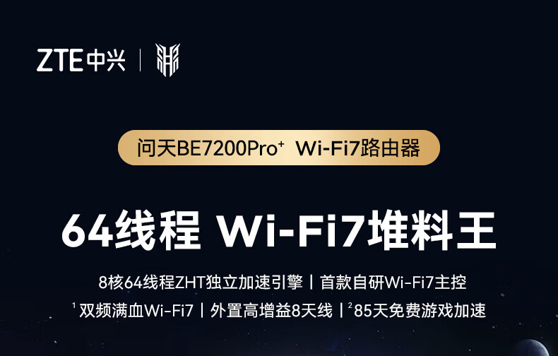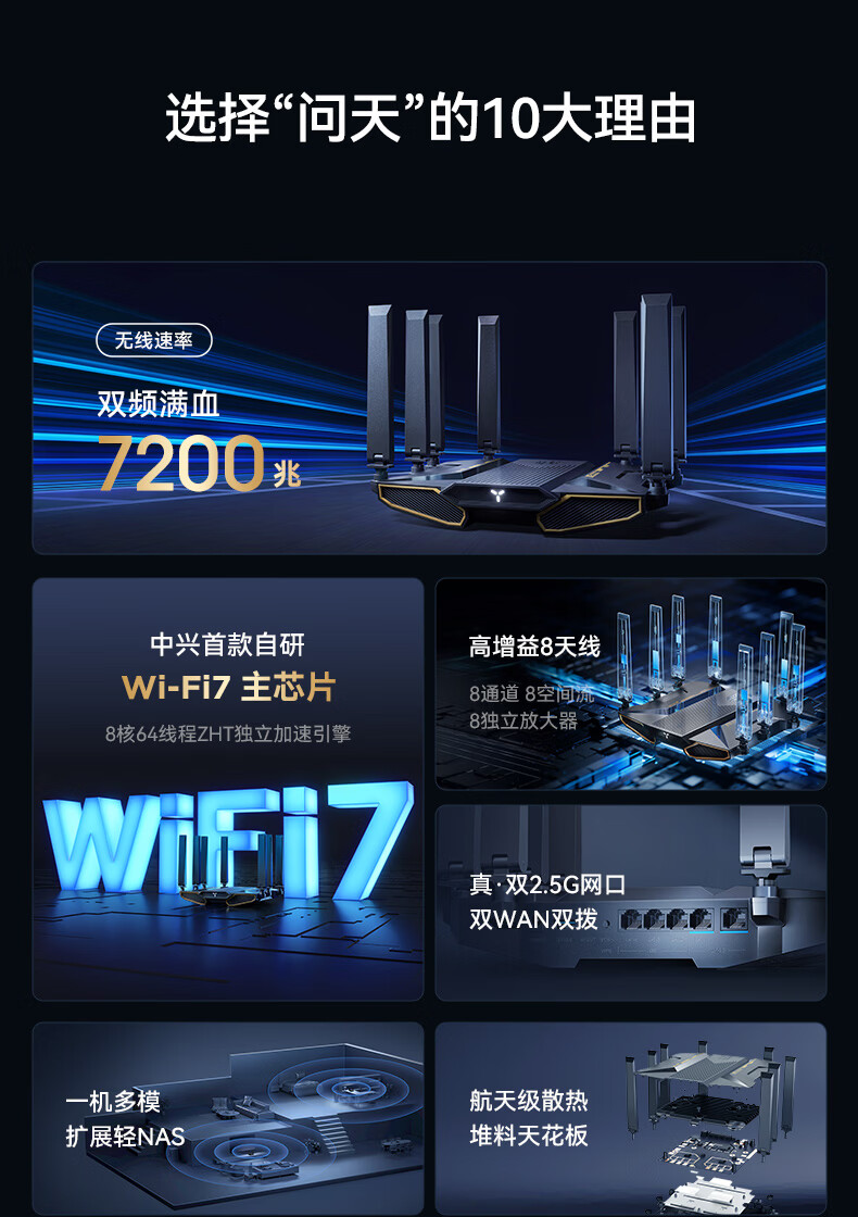 ZTE Wentian BE7200Pro+ WiFi7 home wireless router dual-band aggregation game acceleration 8 independent amplifiers full blood 2.5G network port wall penetration king