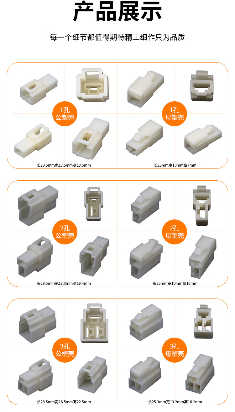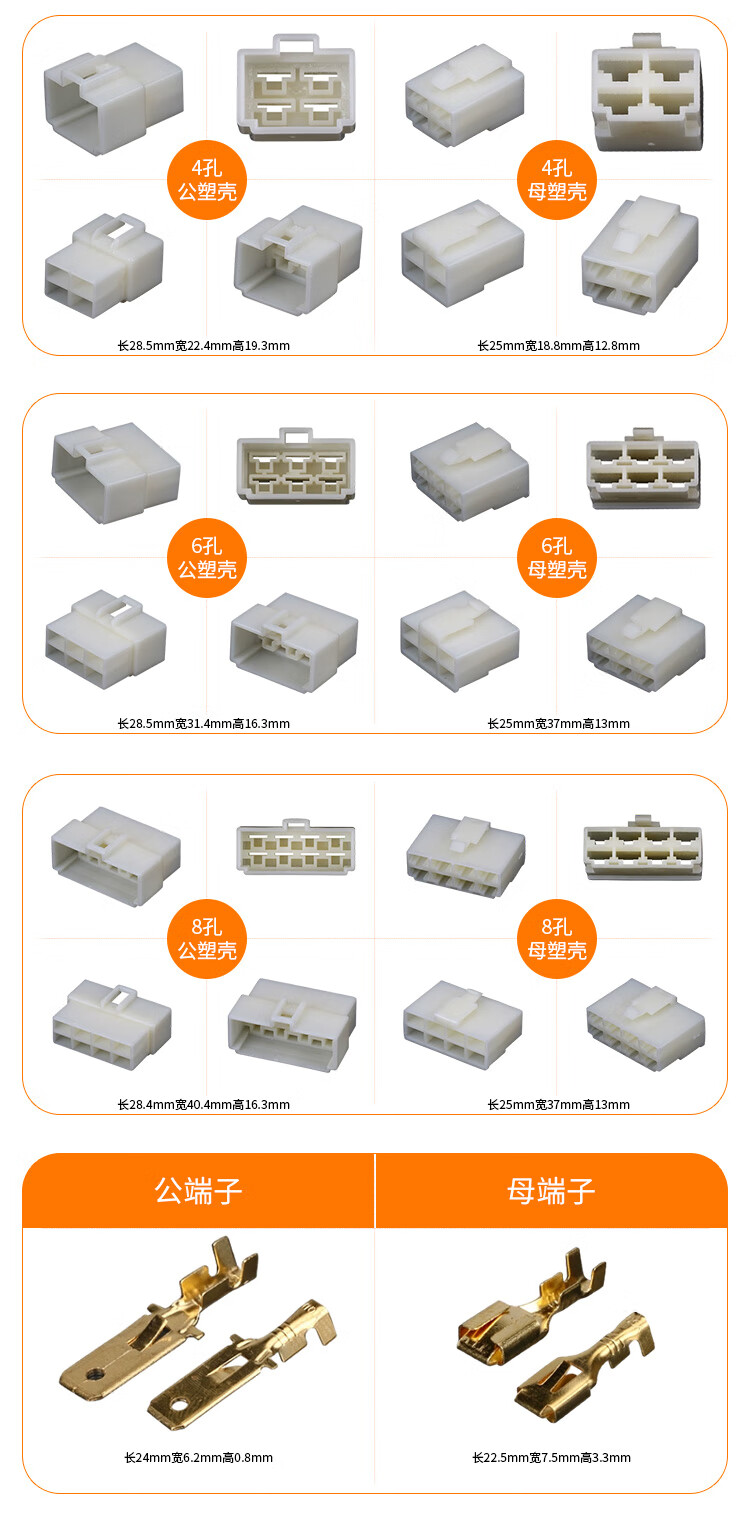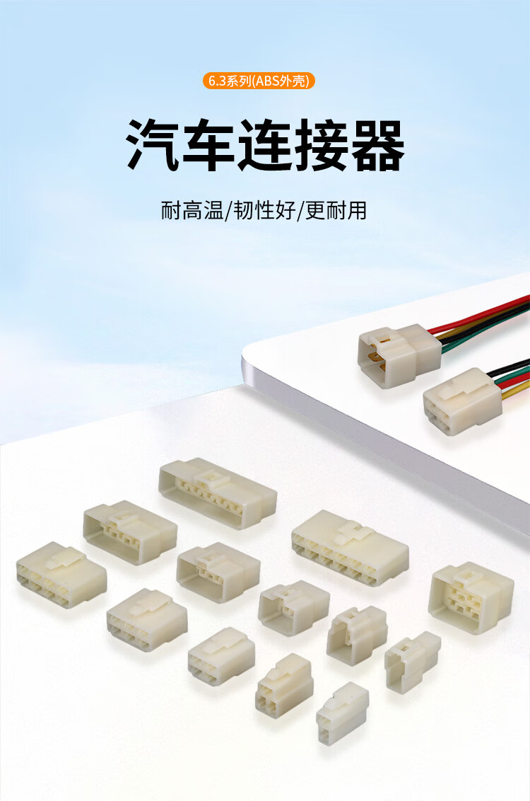 Baye Automotive Connector 6.3 Series 2-hole ABS plug and socket butt connector male and female connector complete set BY-DJ7021-6.3-11/21