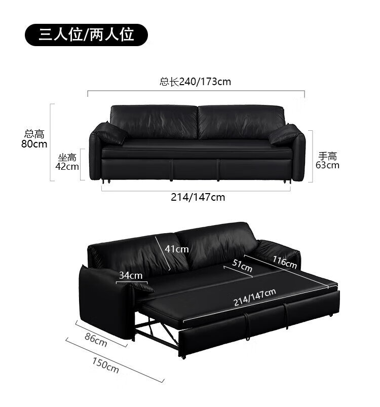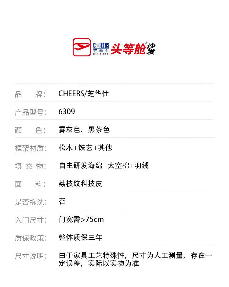 CHEERS fabric sofa bed all-in-one dual-purpose small apartment living room 2025 new style Chivas 6309 gray junior