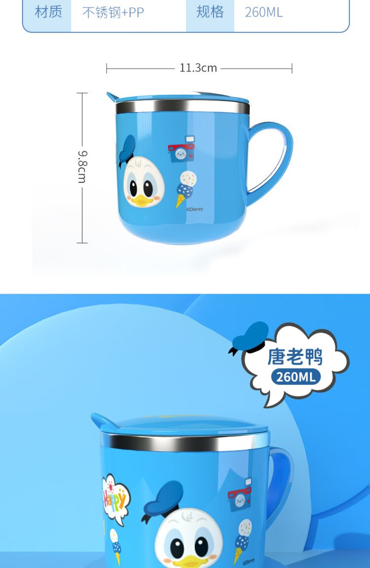 Disney (Disney) children's milk cup, learning drinking cup, stainless steel breakfast cup with scale, baby drinking cup, kindergarten school cup
