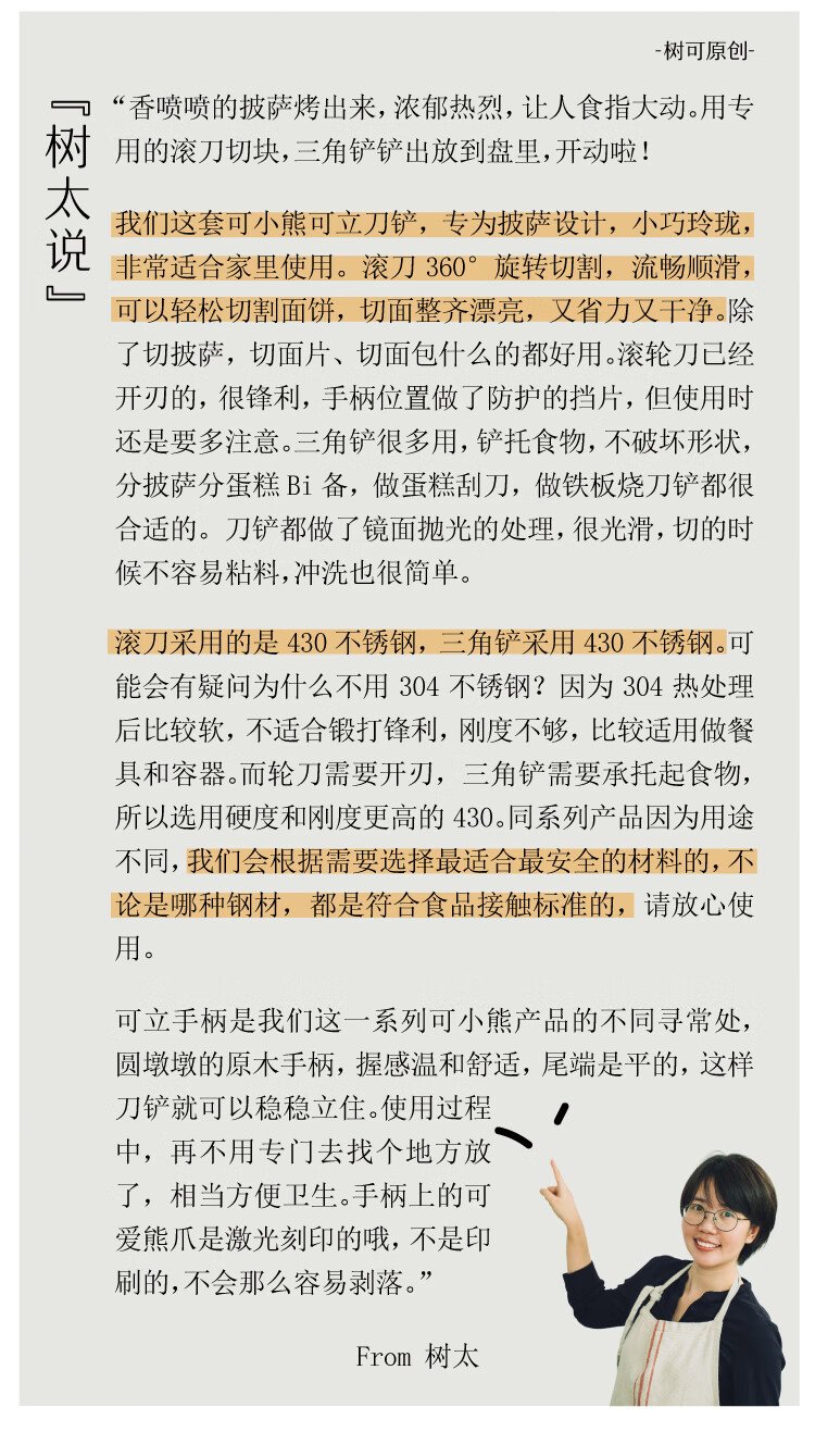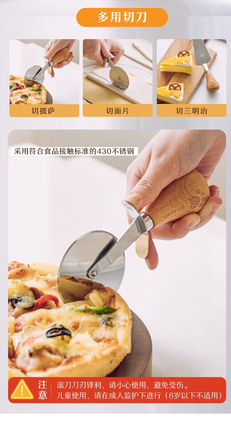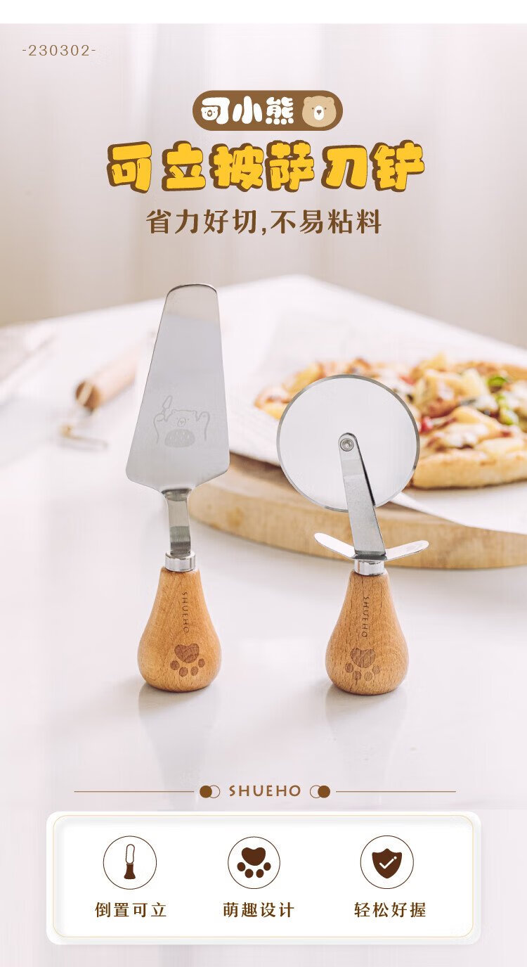 Tree Coco Bear Standing Pizza Knife Stainless Steel Hob Household Pizza Shovel Roller Knife Baking Tool