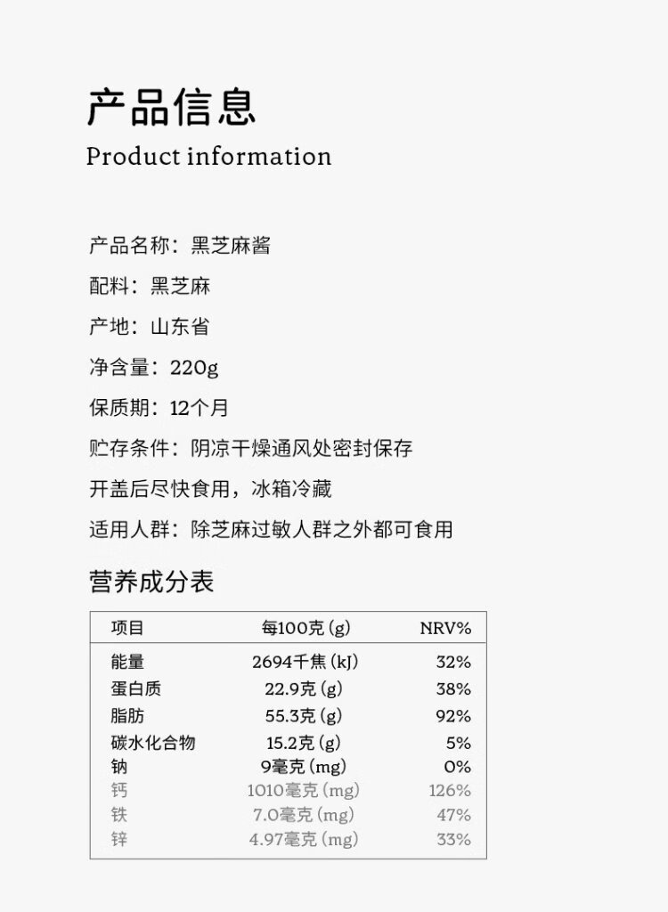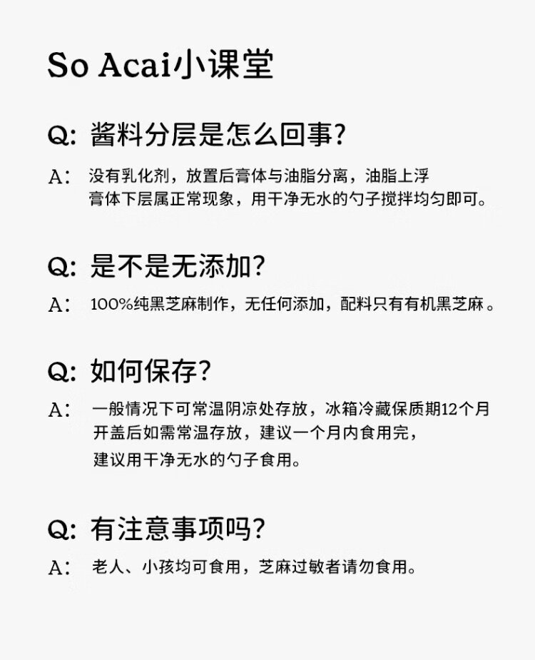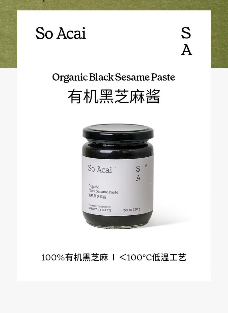 SO ACAI organic pure black sesame paste 220g household additive-free baking sauce baby food supplement toast bread spread