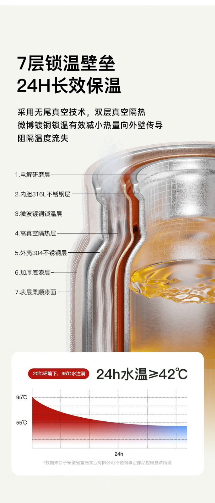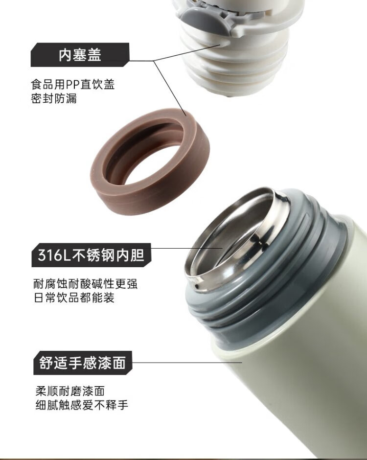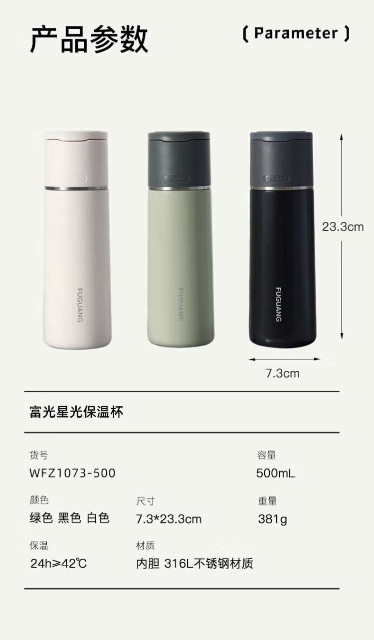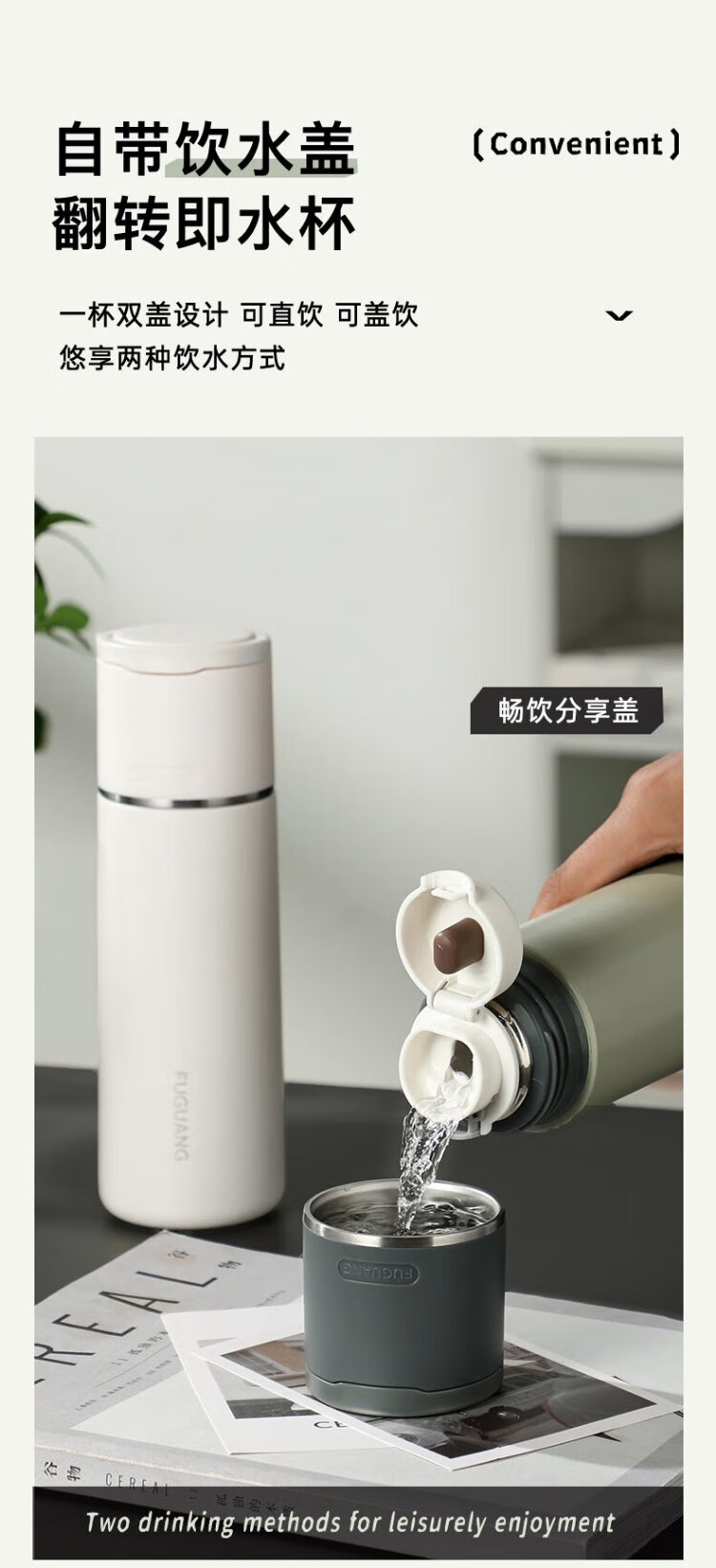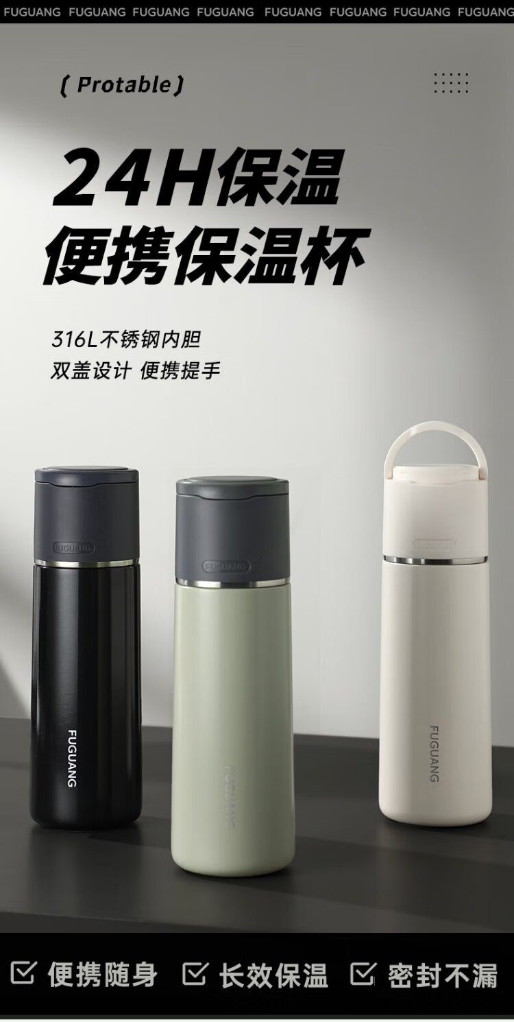 Fuguang thermos cup 316 stainless steel large-capacity water cup student cold cup for men and women outdoor portable double drinking cup