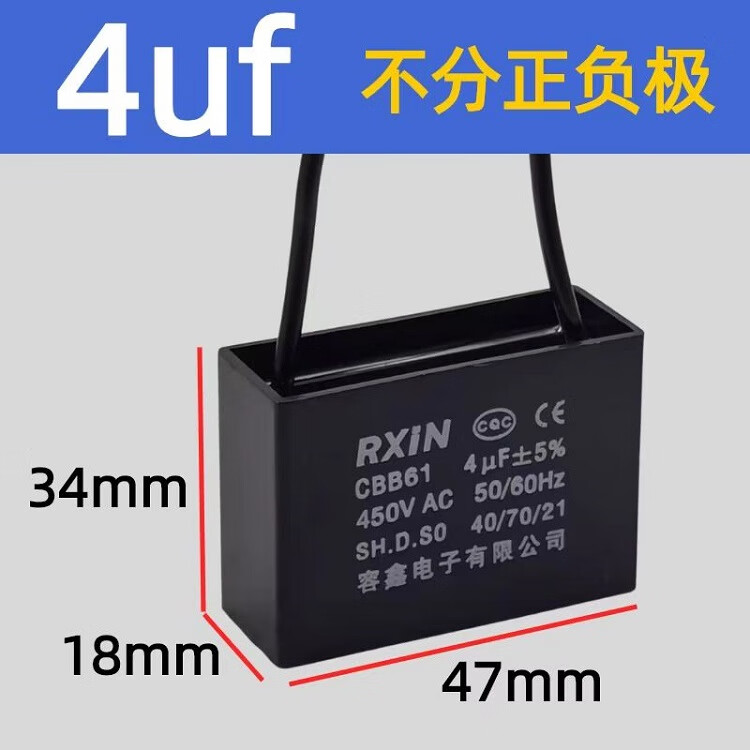 RXiN Rongxin starting capacitor CBB61 450V 4uF line-connected fan starting stepless capacitor motor starting capacitor 1 piece