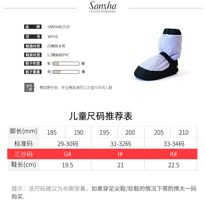 Sansha dance warm boots children's ballet classical dance practice shoes autumn and winter velvet dance shoes light purple size 31-32