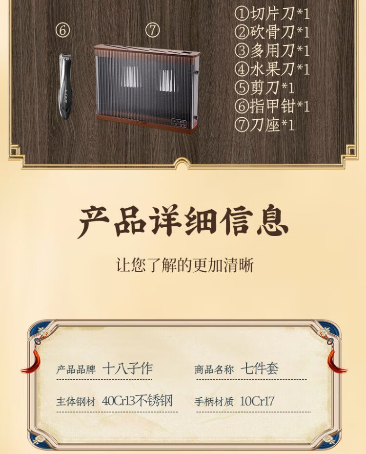 Shibazizuo Knife Set Kitchen Knife Set Fuchuan Chaiyue Xingcha Gift Seven-piece Knife Set SL2368 Exquisite Gift Box