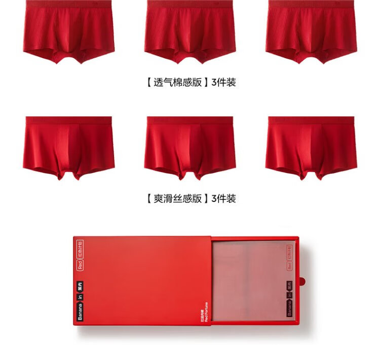 Jiao Nei Red Plan 3 series men's underwear 10A antibacterial modal boxer natal year of the horse wedding lucky gift box 3 pieces