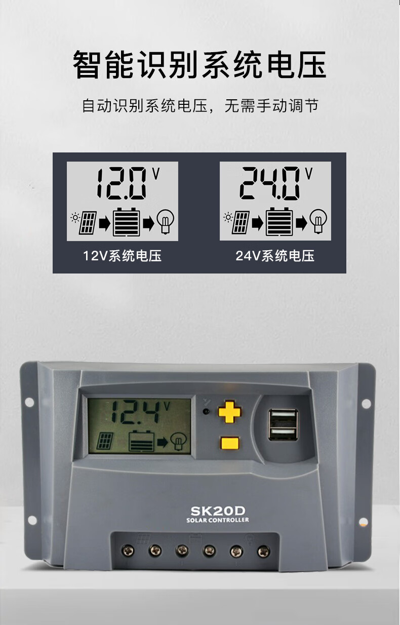 Jingbiao smart solar photovoltaic power generation panel battery charging PWM controller discharge controller fully automatic universal 12V24V30A