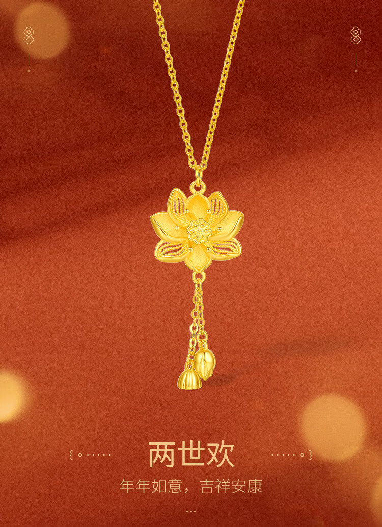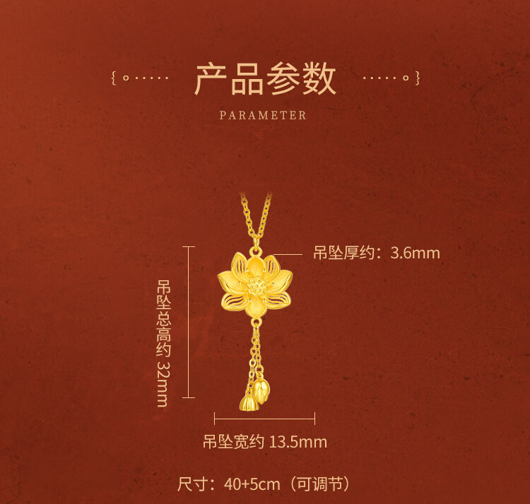 Saturday Fu 5G craftsmanship gold necklace women's lotus pure gold pendant set chain price A0612688 about 4.78g 40+5cm