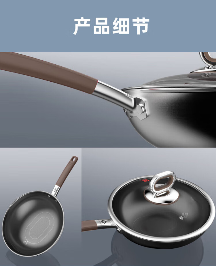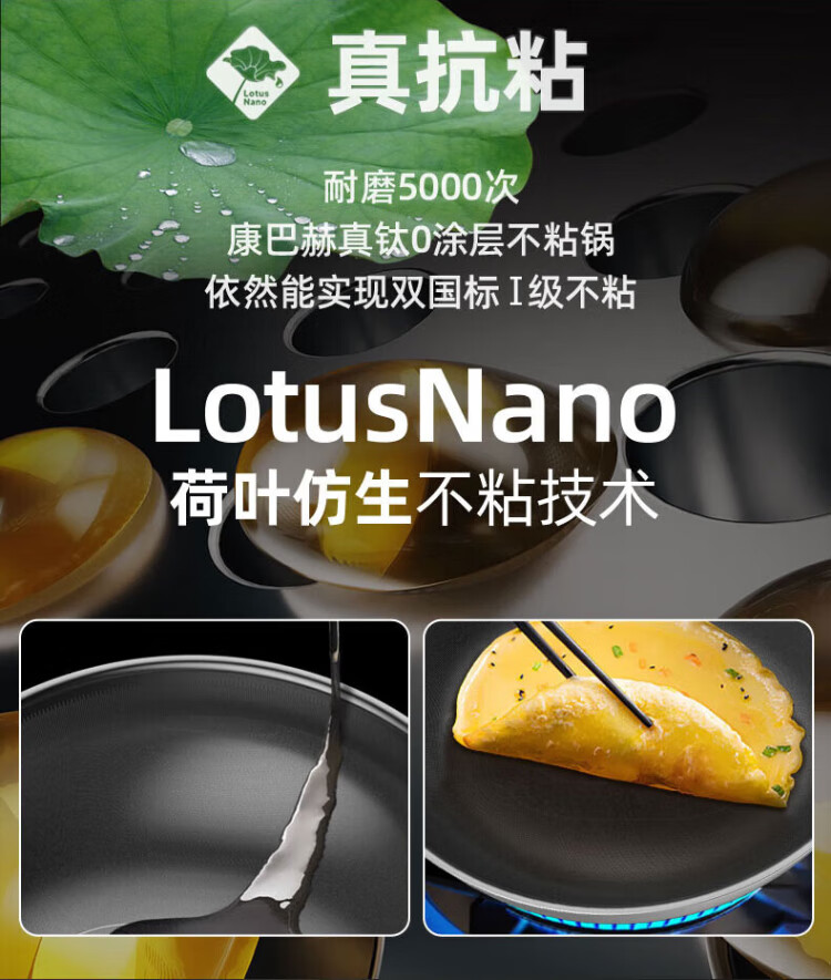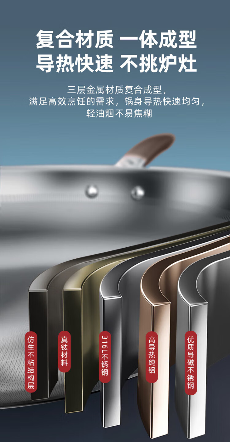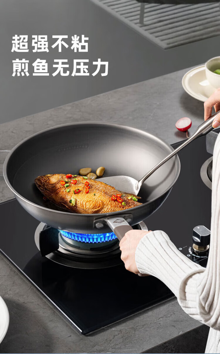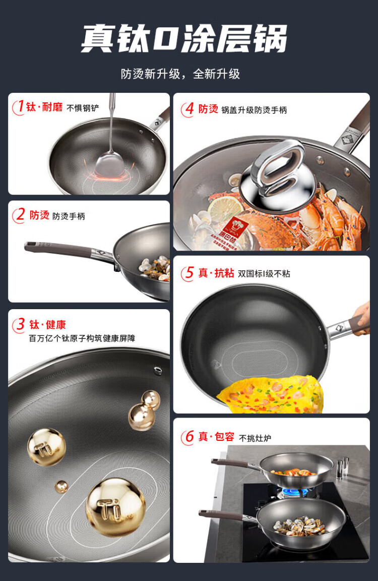 Konbach wok real titanium non-stick pan uncoated antibacterial wok 0 coating 316L stainless steel induction cooker gas universal