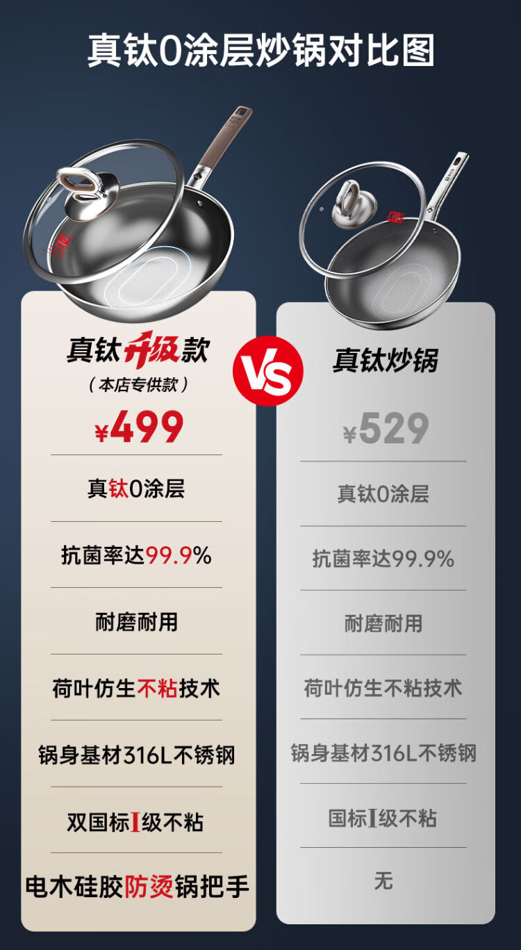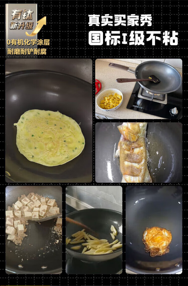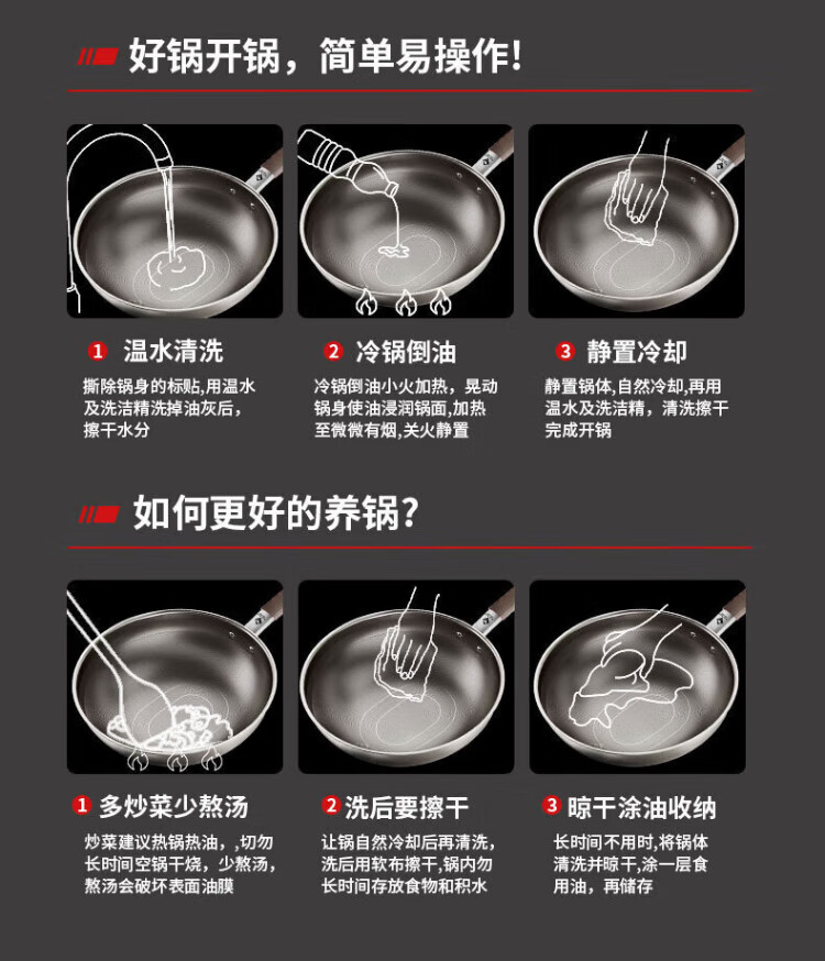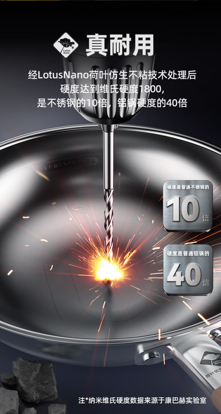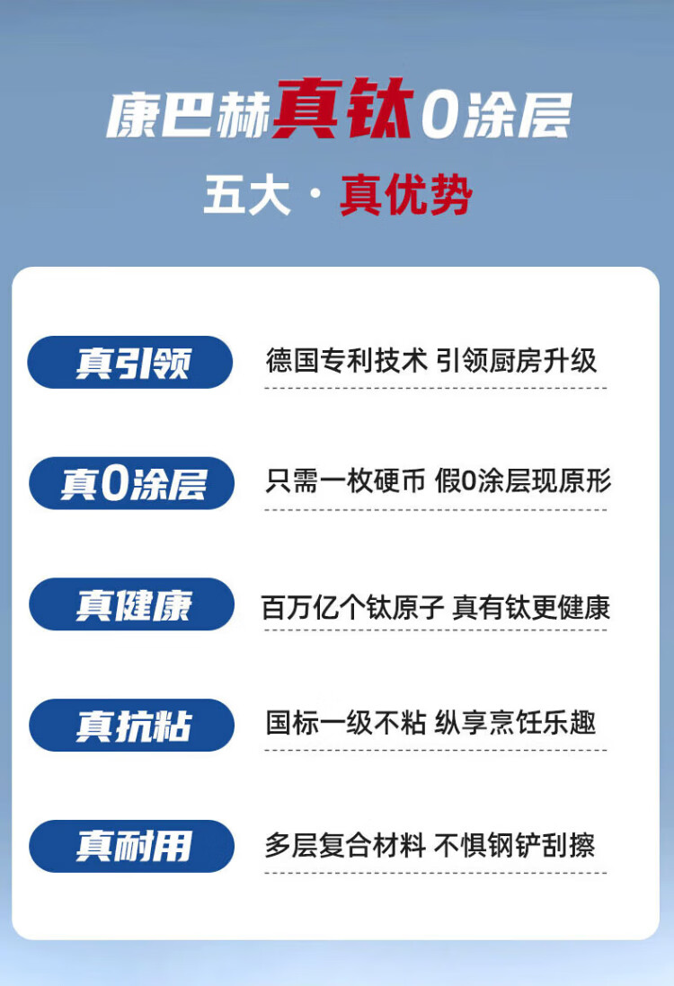 Konbach wok real titanium non-stick pan uncoated antibacterial wok 0 coating 316L stainless steel induction cooker gas universal
