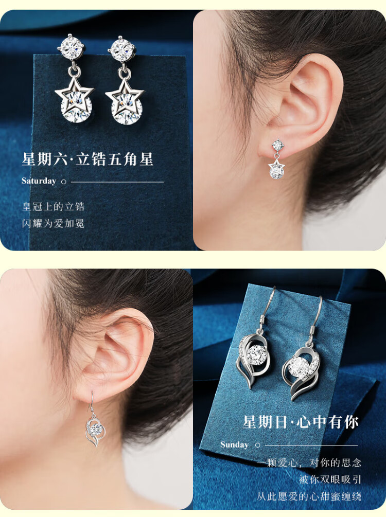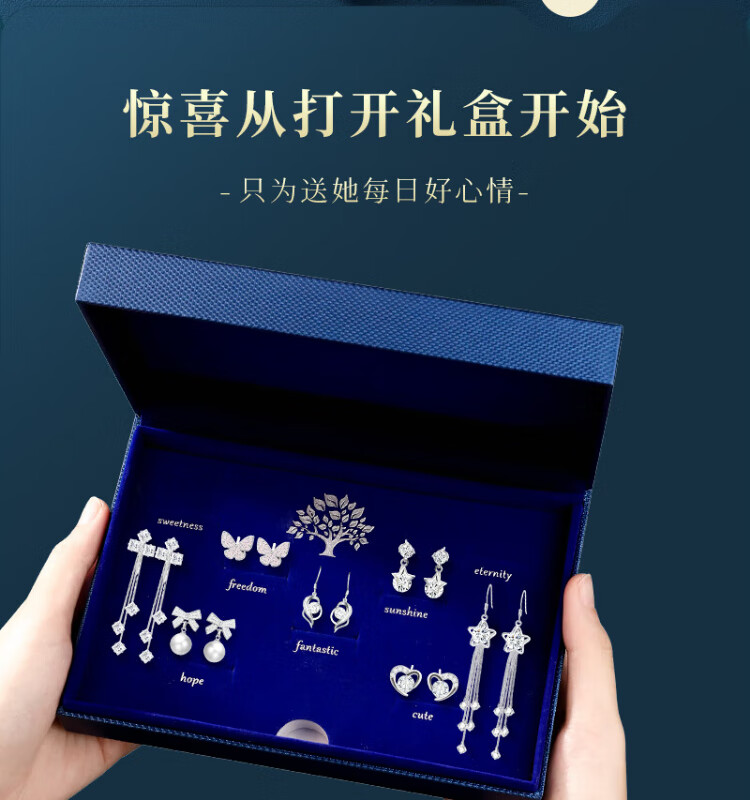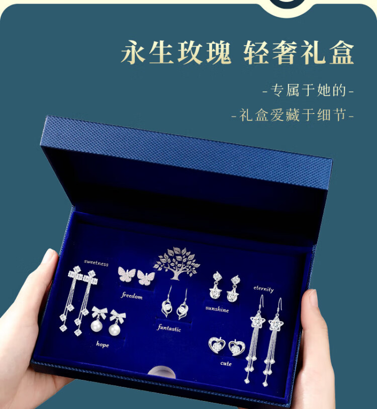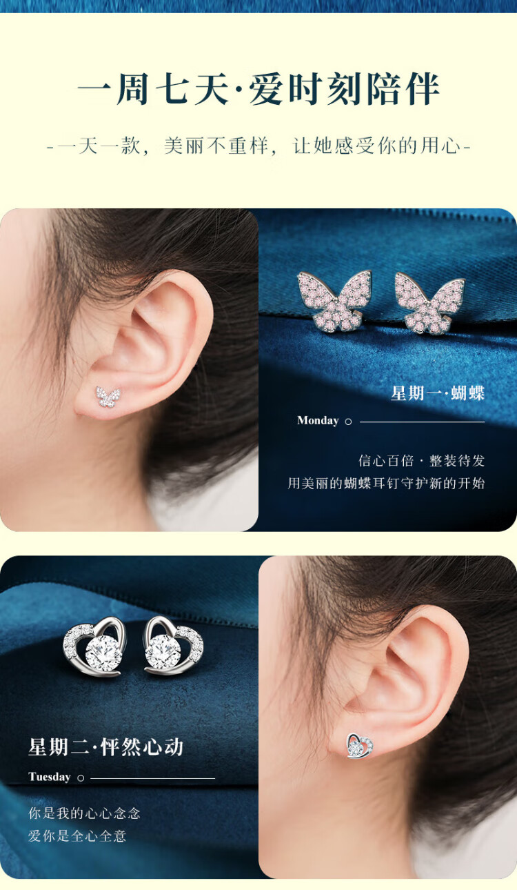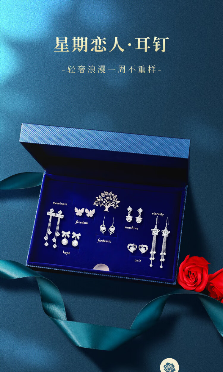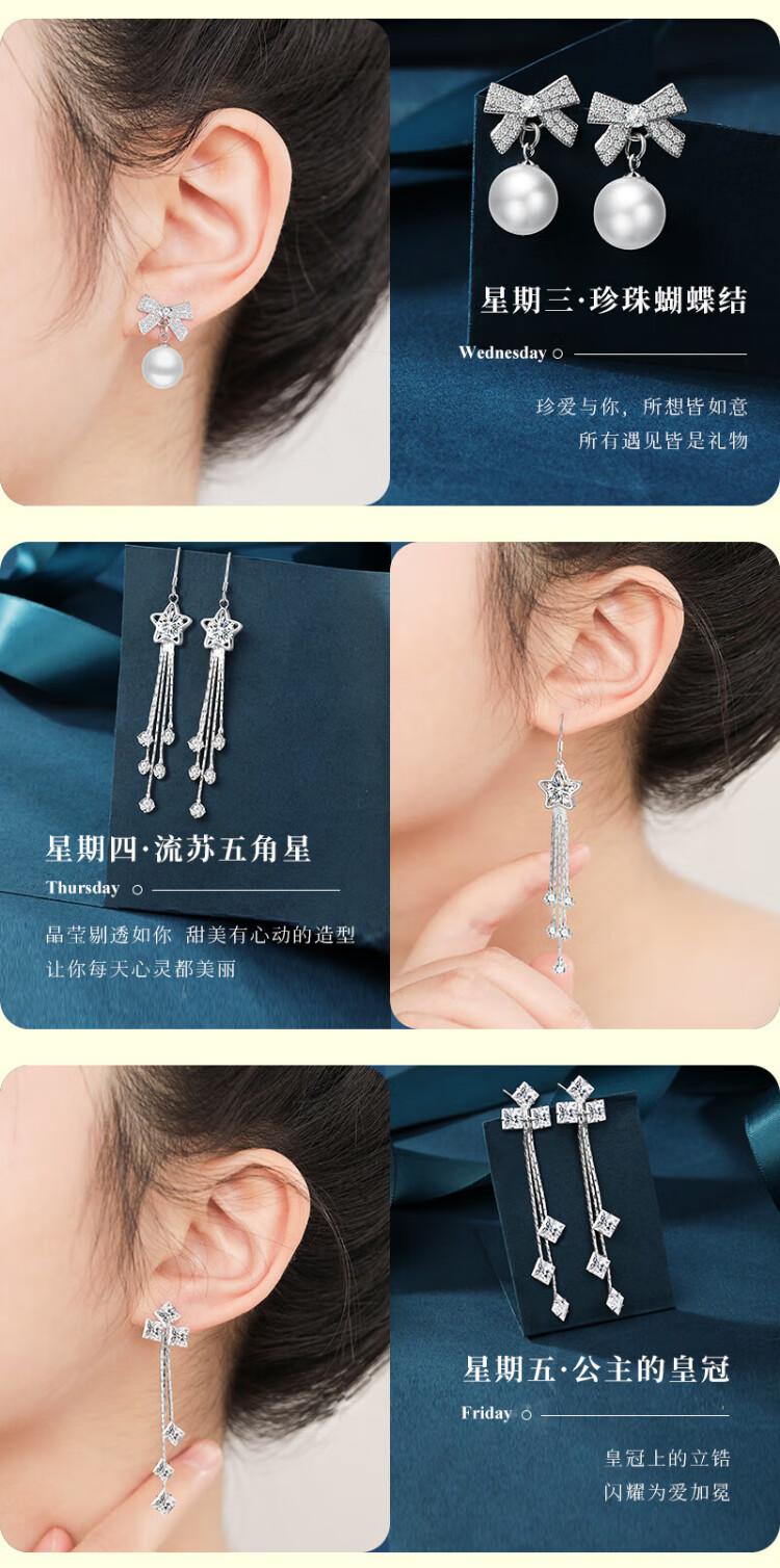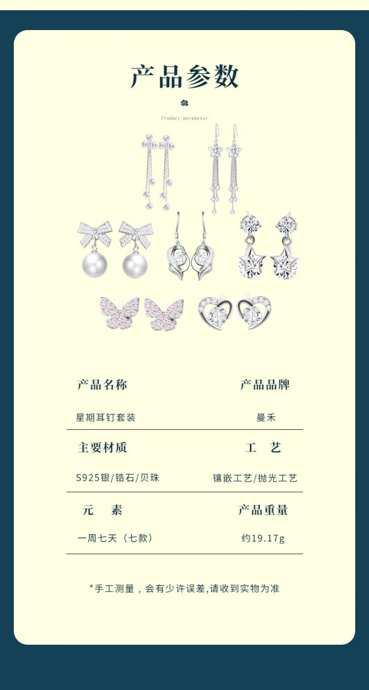 MANHE S925 Silver One Week Earrings Gift Box Women's Earrings Women's 2025 New Earrings Birthday Gift for Girl Friends