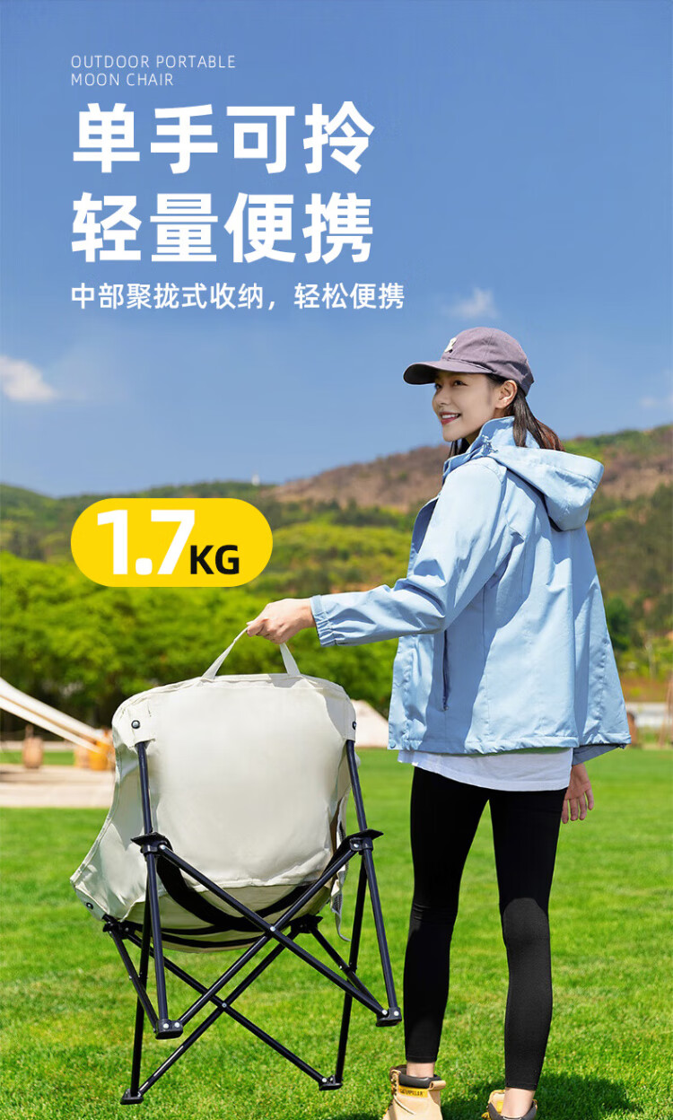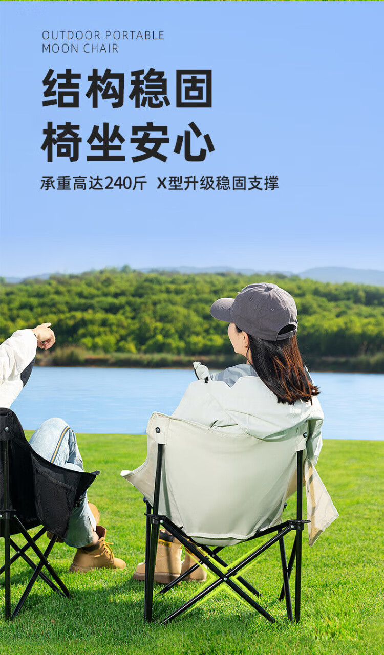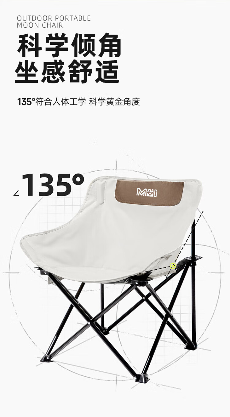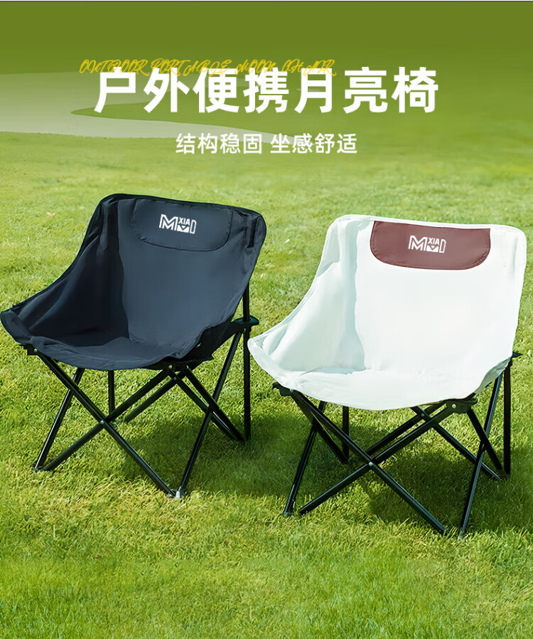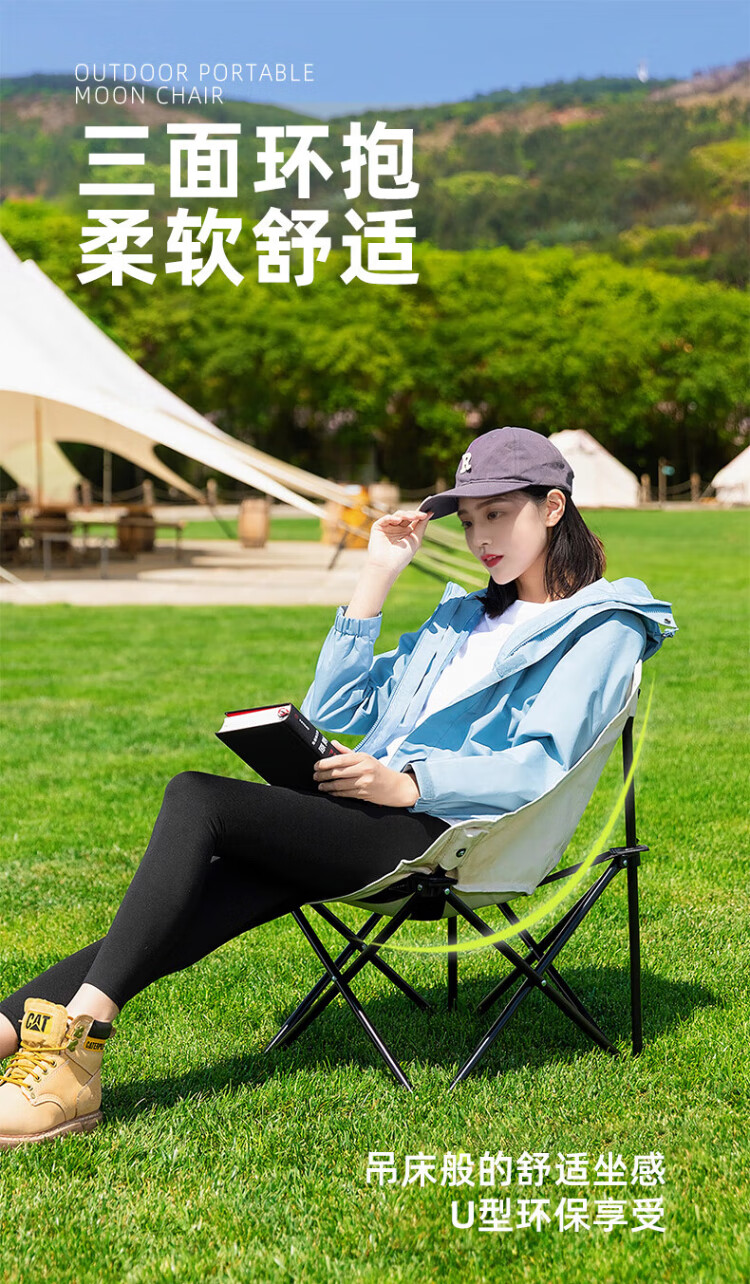 Xiaomo Outdoor Folding Chair Ultra-Light Moon Chair Camping Chair Portable Recliner Back Chair Fishing Stool Picnic Table and Chair Black