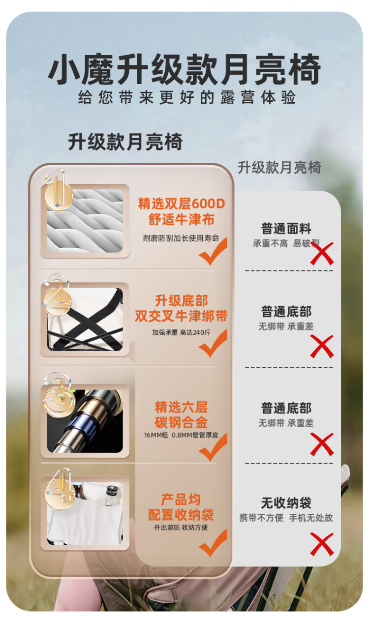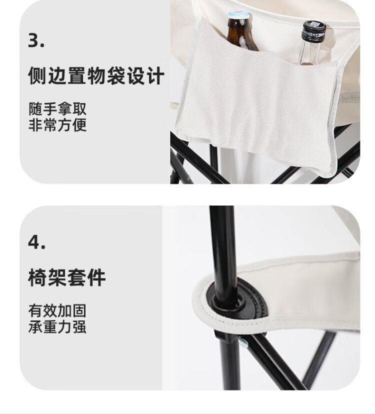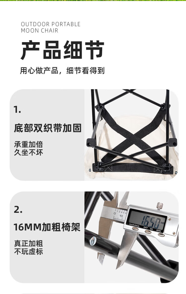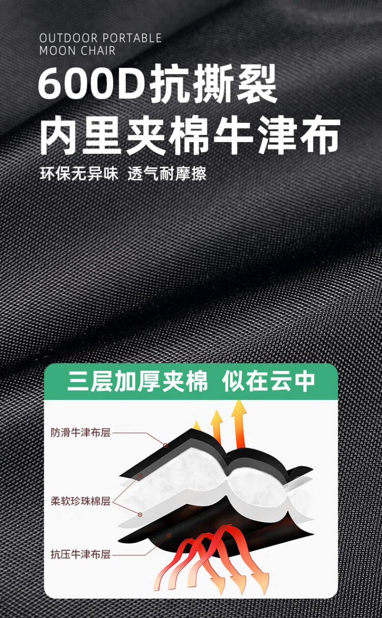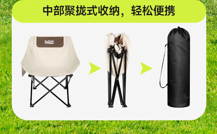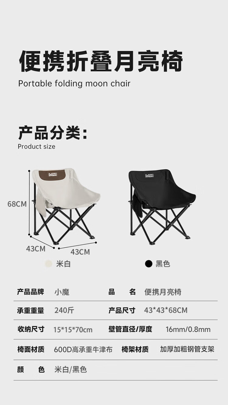 Xiaomo Outdoor Folding Chair Ultra-Light Moon Chair Camping Chair Portable Recliner Back Chair Fishing Stool Picnic Table and Chair Black