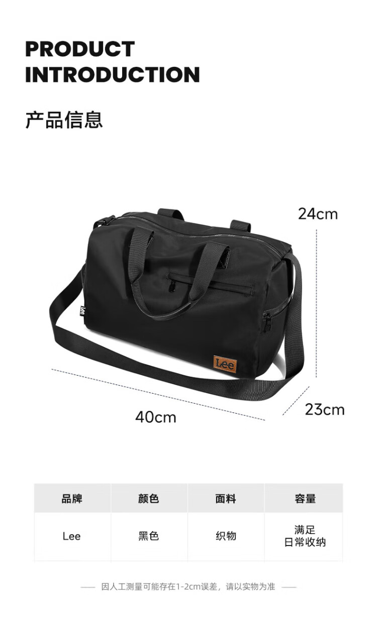 Lee shoulder bag men's large-capacity fitness bag dry and wet separation travel bag simple shoulder bag business trip luggage storage