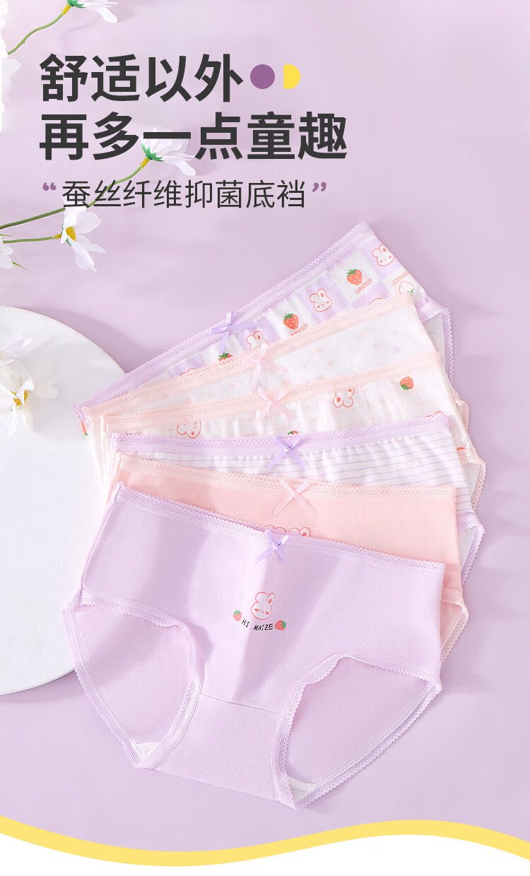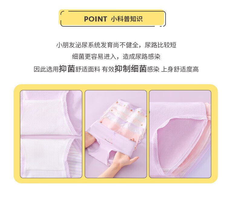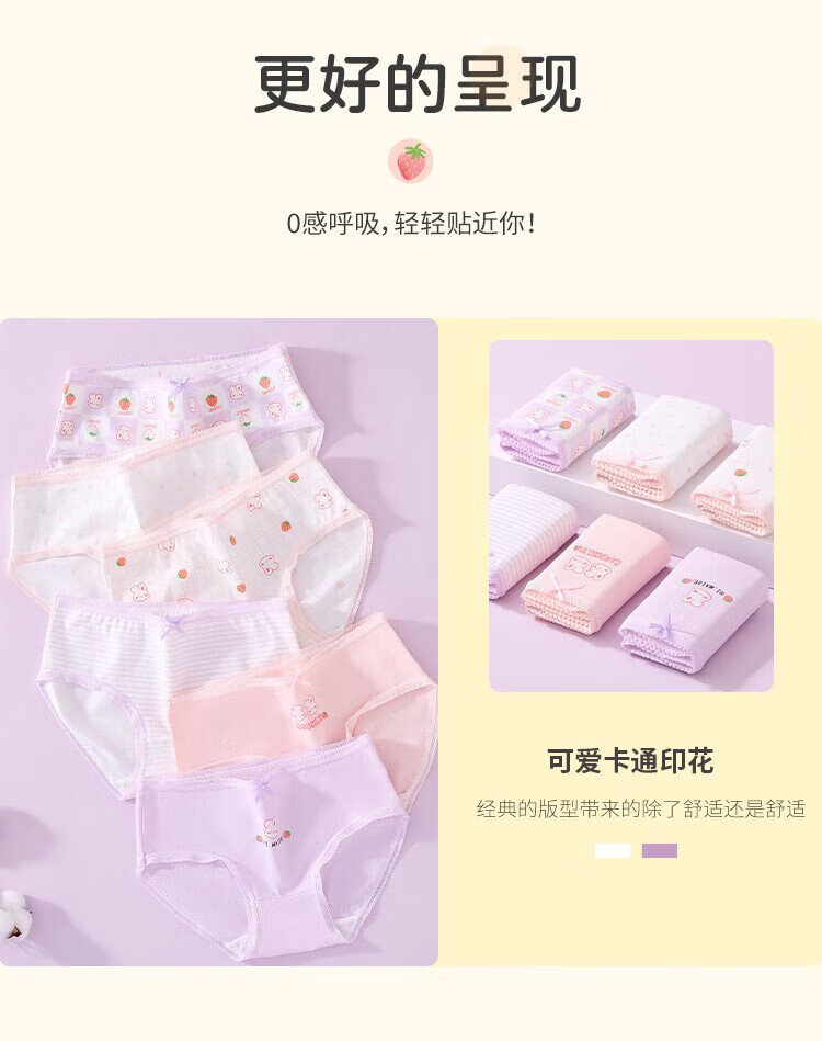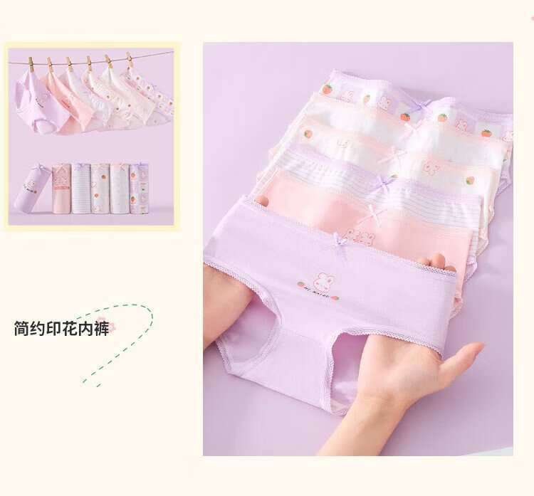 Langsha children's underwear for girls, six-pack of developmental briefs for middle-aged and older children, purple bunny 160