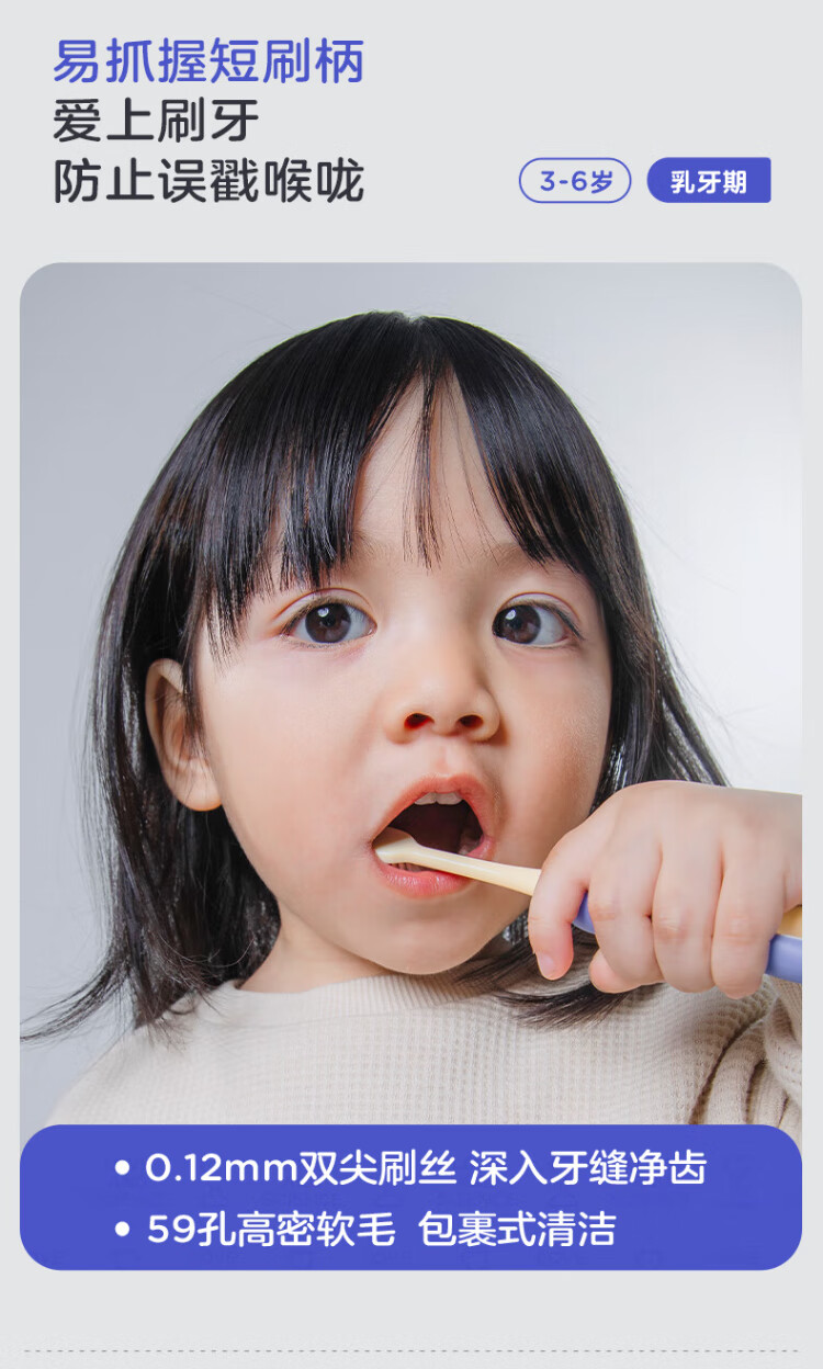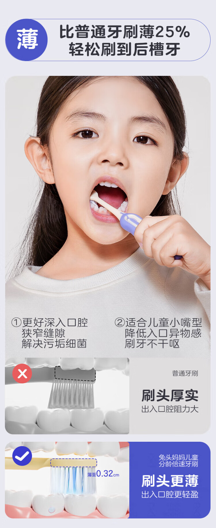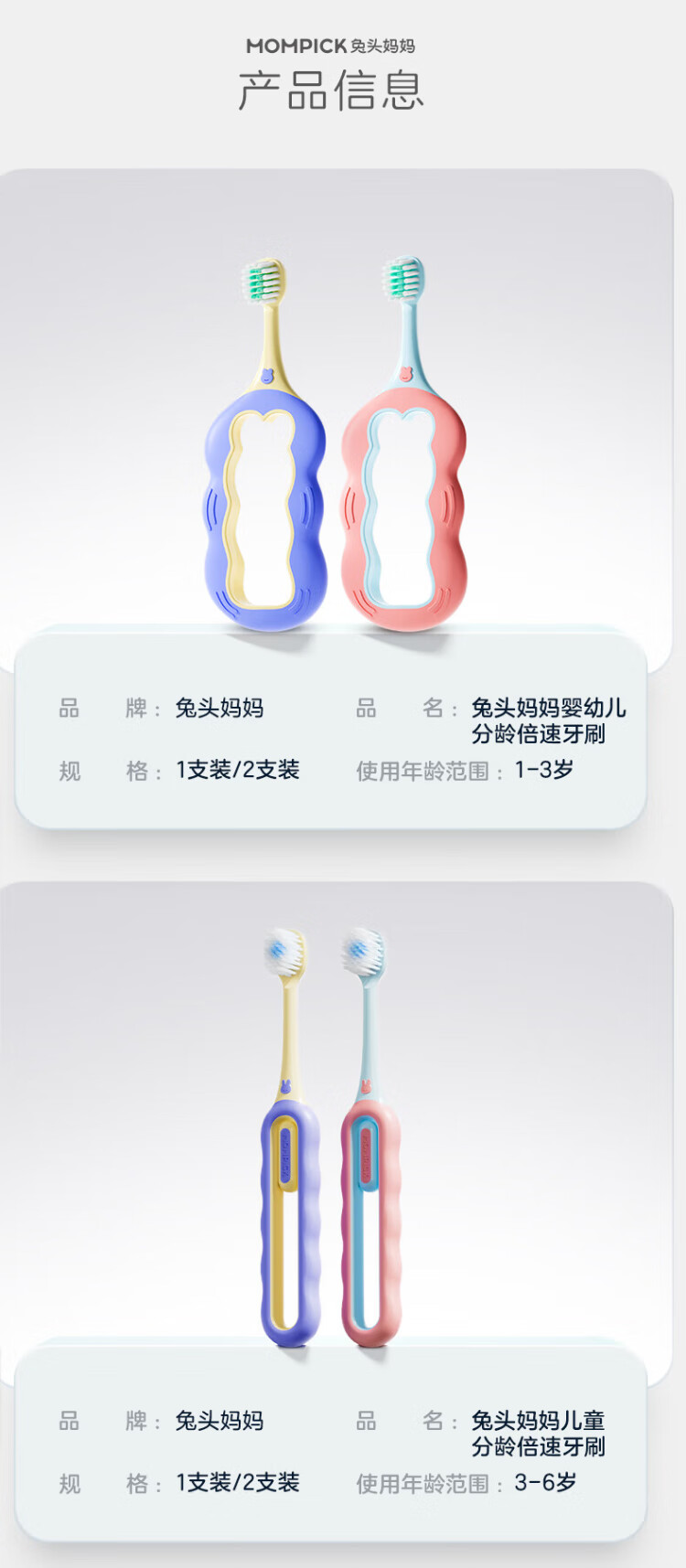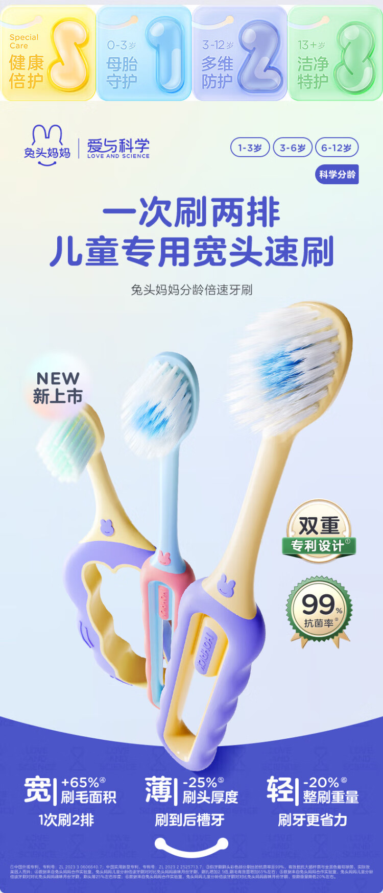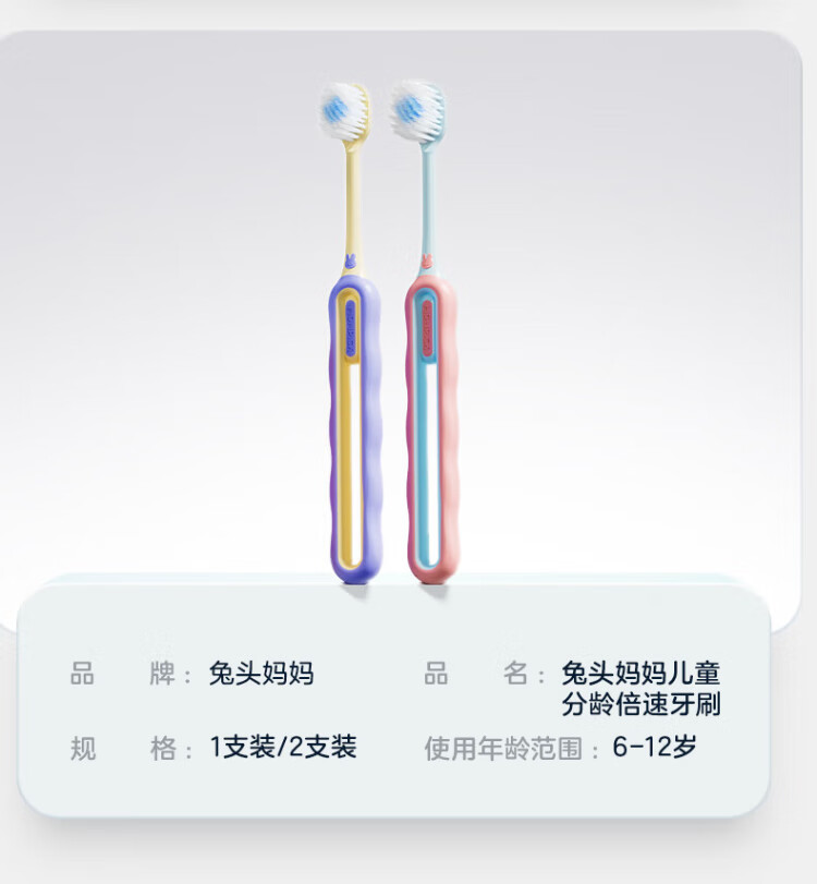 Rabbit Head Mom Children's Double Speed Toothbrush 6-12 years old, lightweight and portable, wider and thinner, 4 pieces in total, blue and pink Nezha set